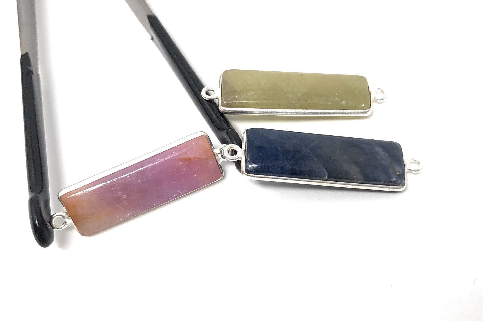 These Beautiful 925 Sterling Silver Natural Genuine Smooth AAA Grade Sapphire Bar Connectors are bezel set in 925 Sterling Silver. These are perfect for making endless Jewelry Designs.