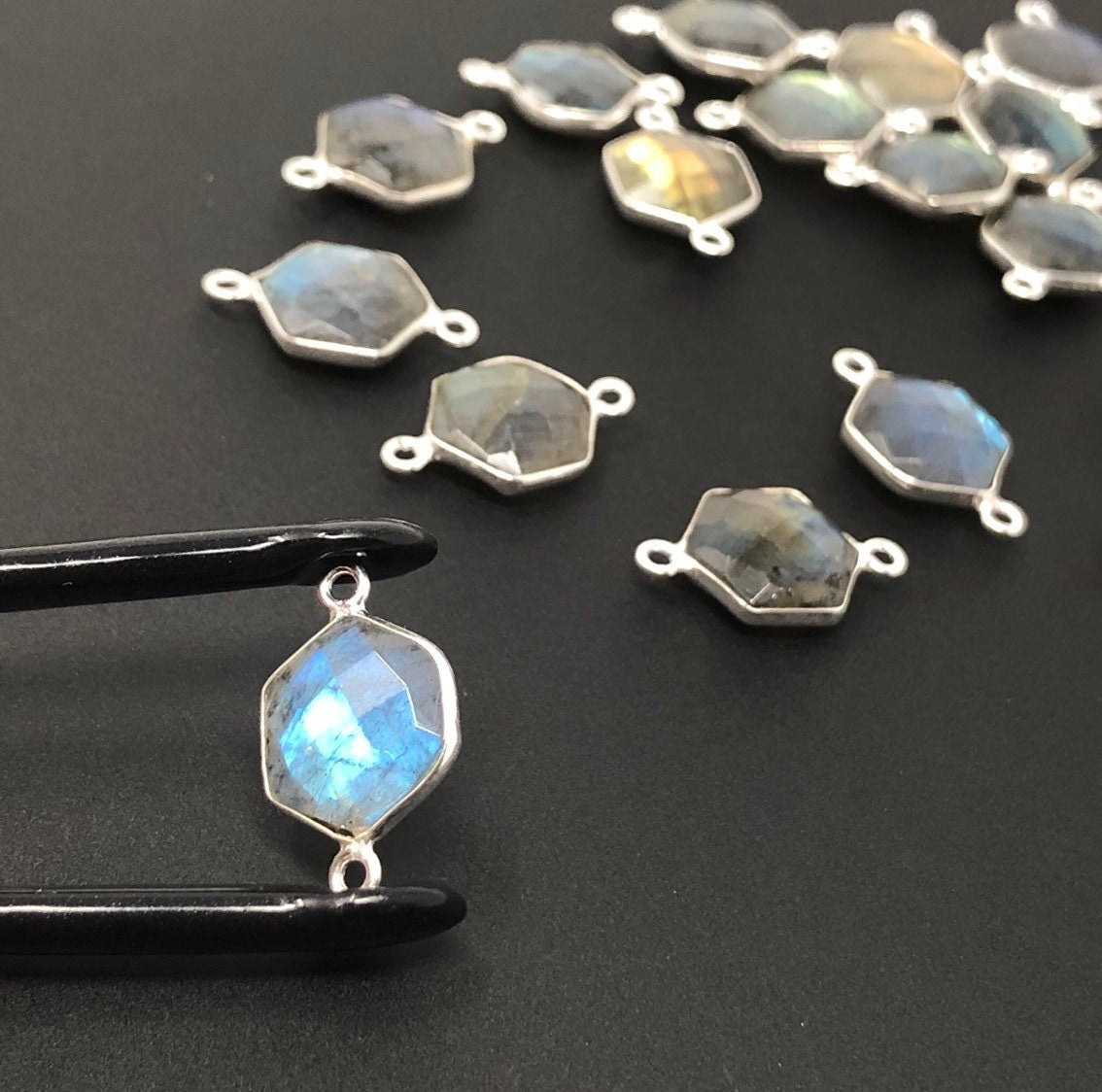 13 Pieces Sterling Silver Labradorite Gemstone Connectors Hexagon Shape Jewelry Findings for Jewelry Making at Wholesale Price.
