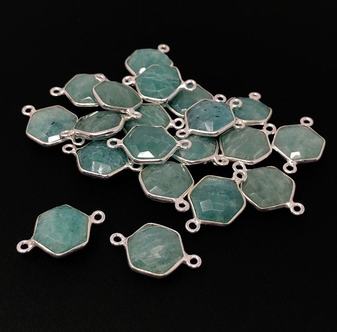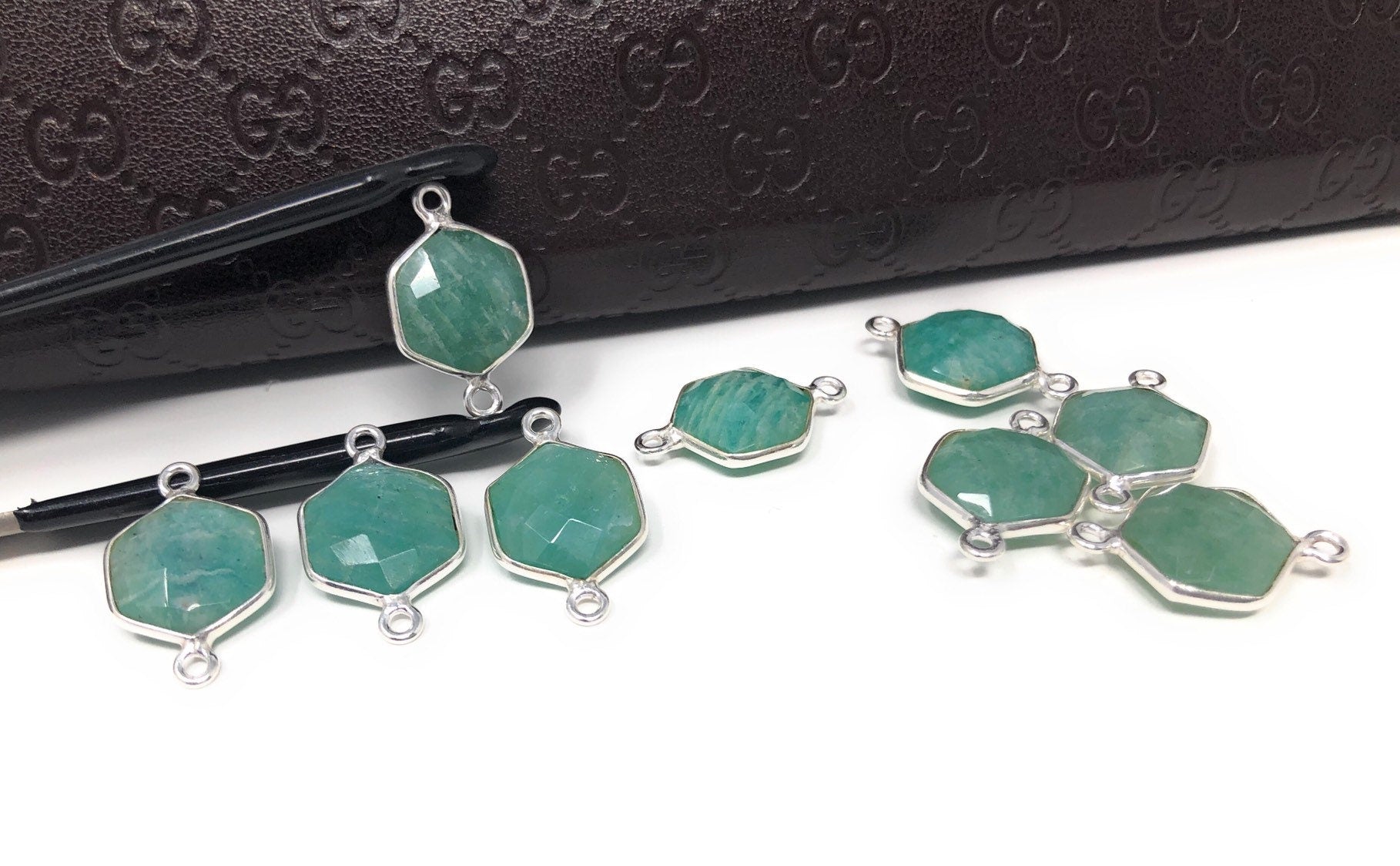 Sterling Silver Natural Gemstone Amazonite Bezel Set Double Sided Briolette Connector Jewelry Findings for Jewelry Making at Wholesale Price.