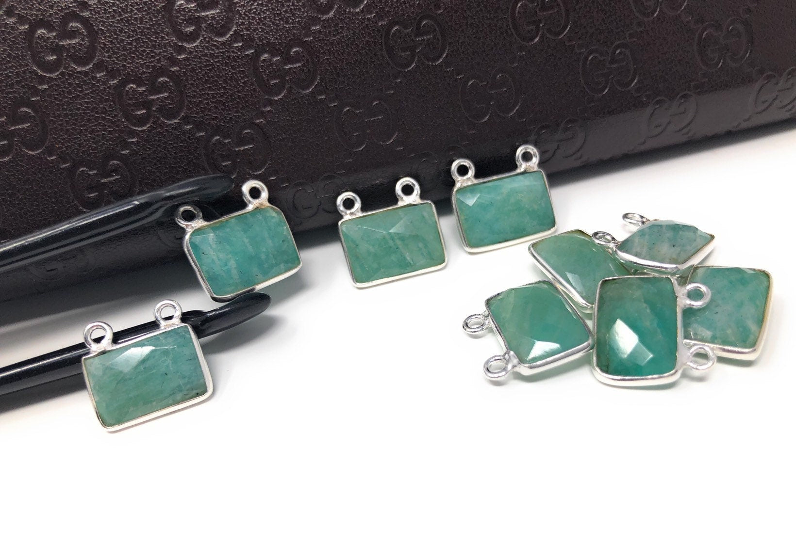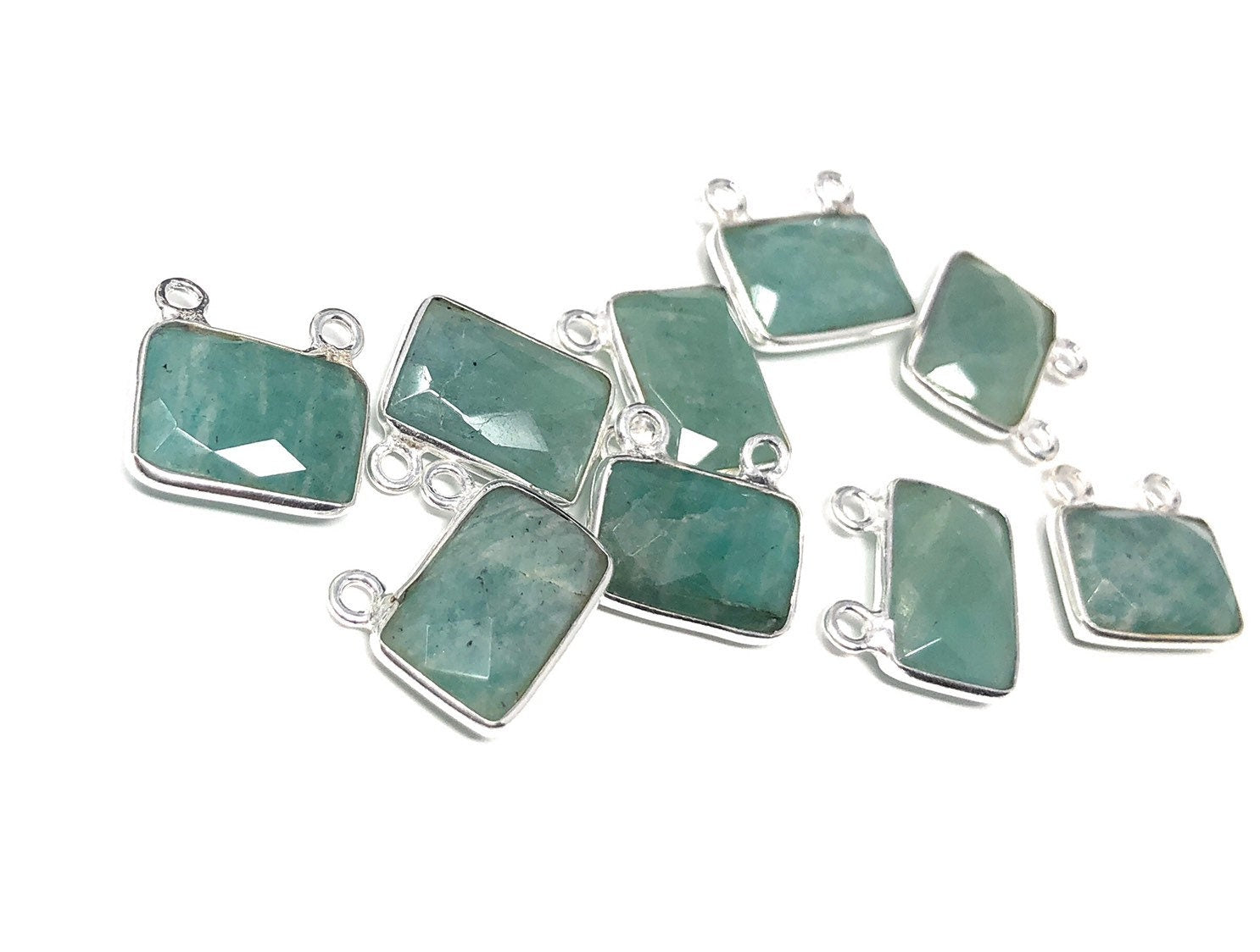Sterling Silver Natural Gemstone Amazonite Bezel Set Double Sided Briolette Connector Jewelry Findings for Jewelry Making at Wholesale Price.