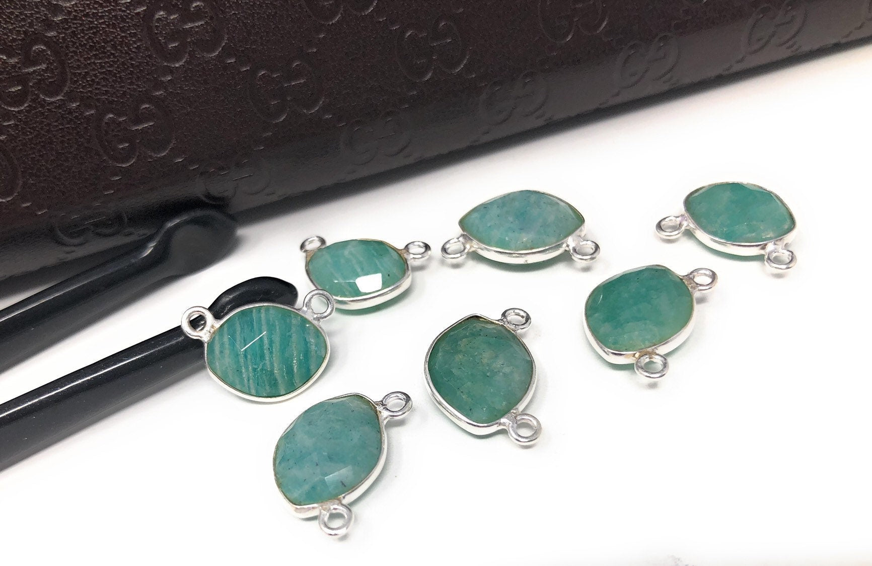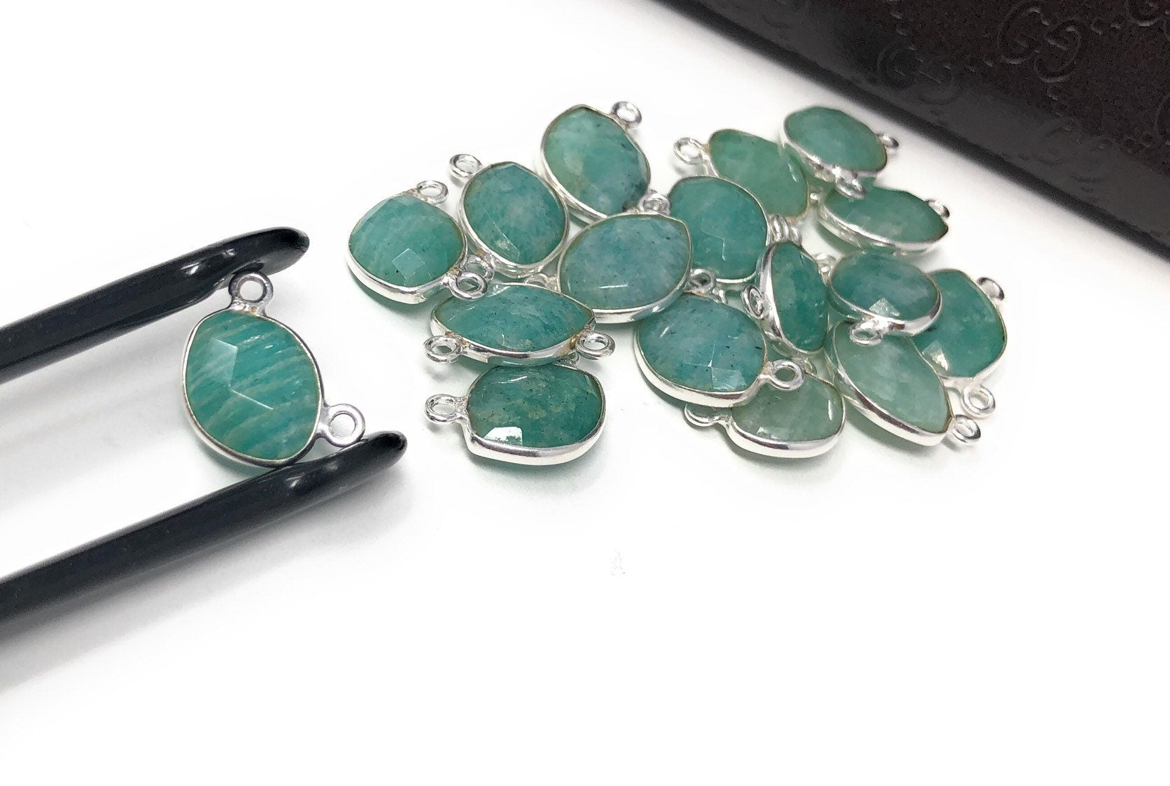 Sterling Silver Natural Gemstone Amazonite Bezel Set Double Sided Briolette Connector Jewelry Findings for Jewelry Making at Wholesale Price.