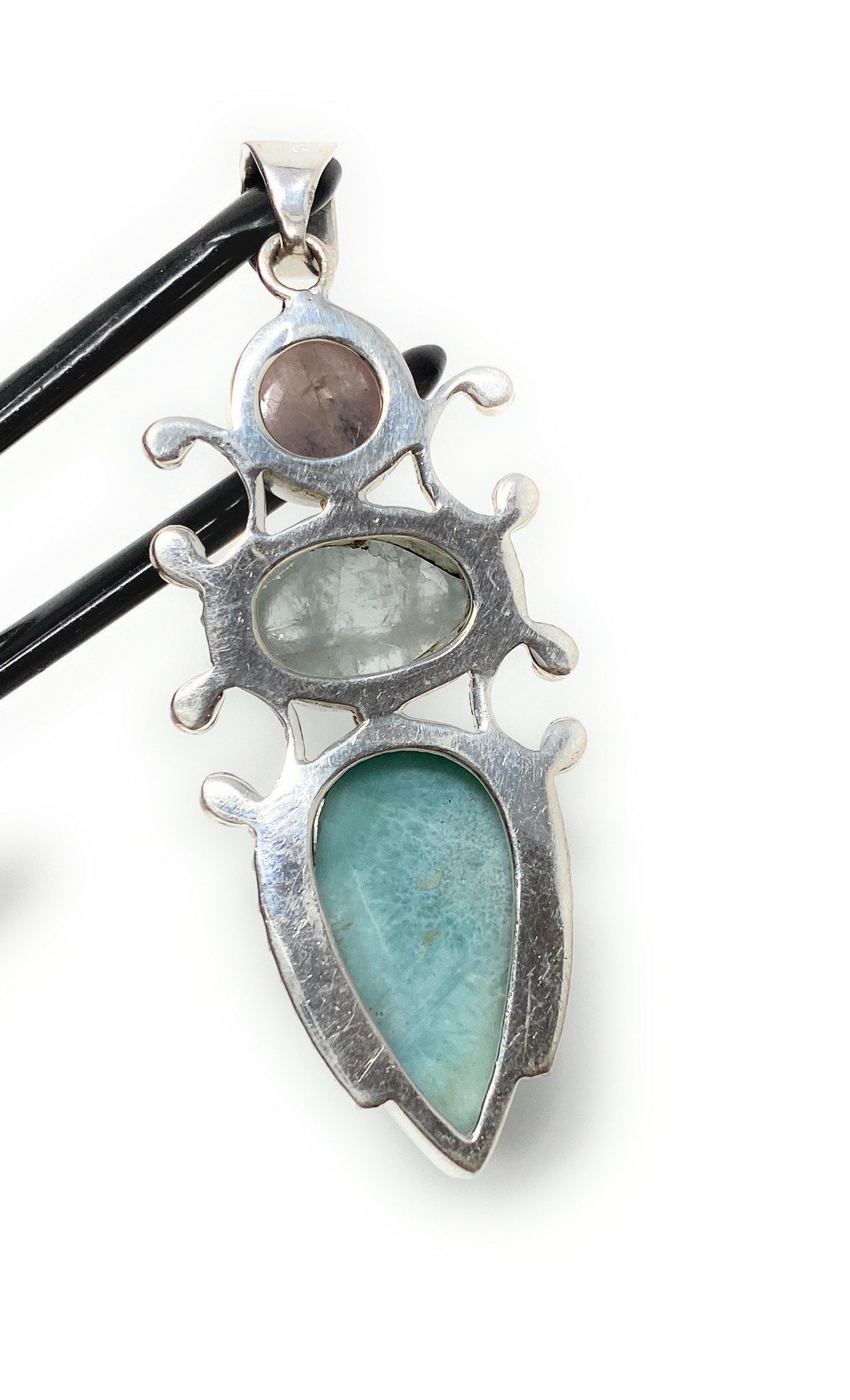 Exclusive Larimar, Aquamarine and Morganite Gemstone Sterling Silver Pendant