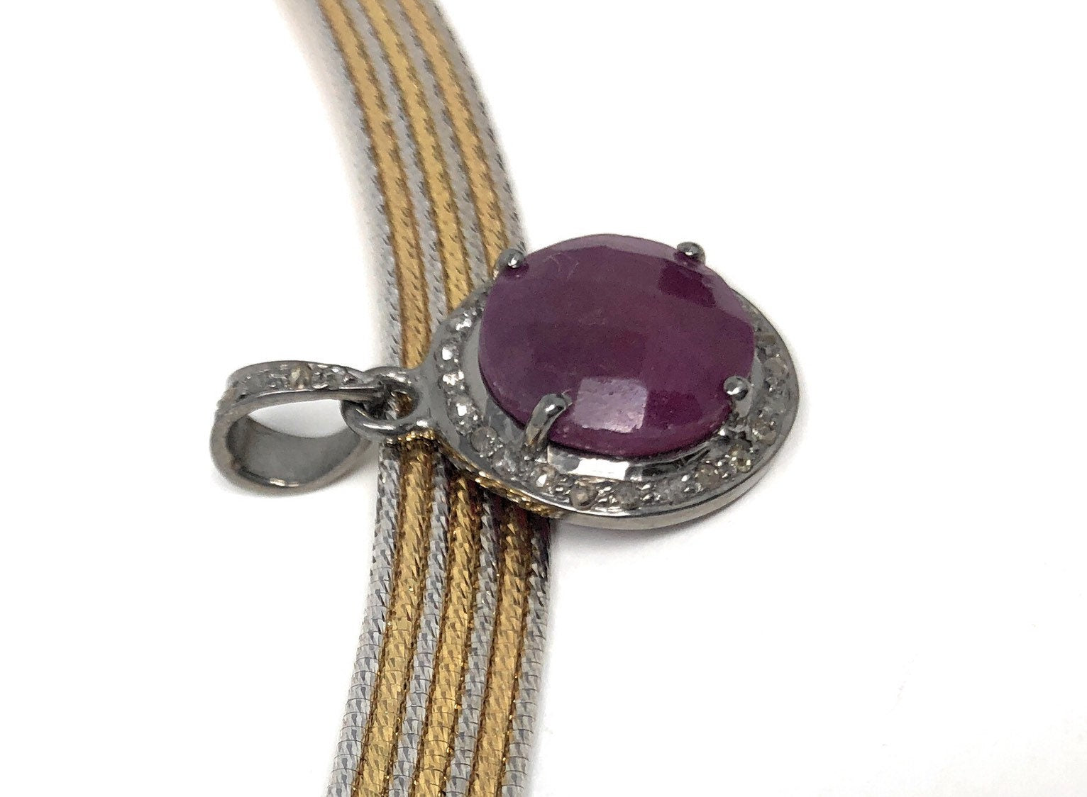 Sterling Silver Natural Gemstone Pink Sapphire Pave Diamond Pendant at Wholesale Price
