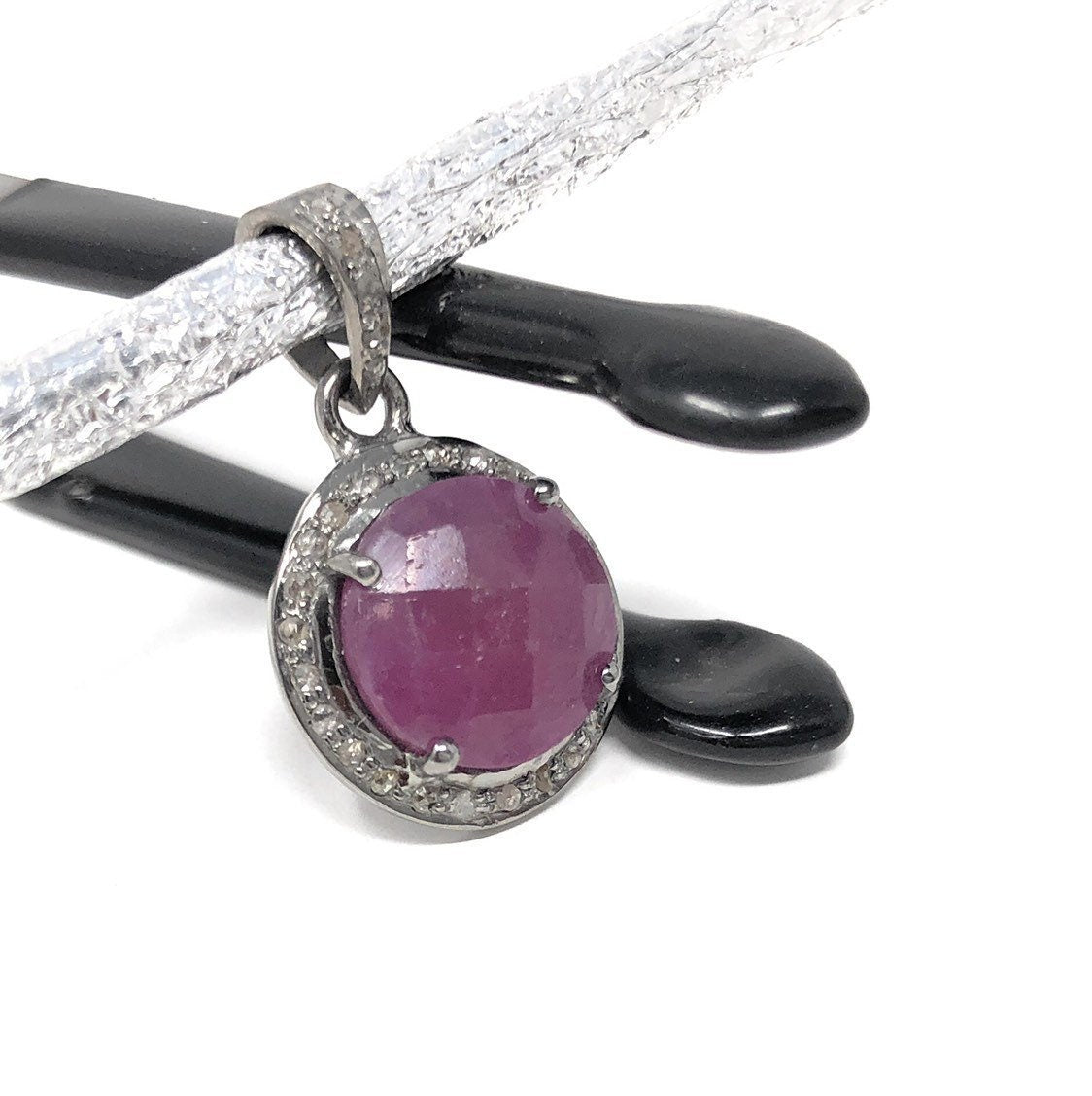 This beautiful Handmade AAA Grade Natural Pink Sapphire Gemstone Round Shape Oxidized 925 Sterling Silver Pave Diamond Pendant is an excellent choice for any occasion and makes a great gift for the loved ones.