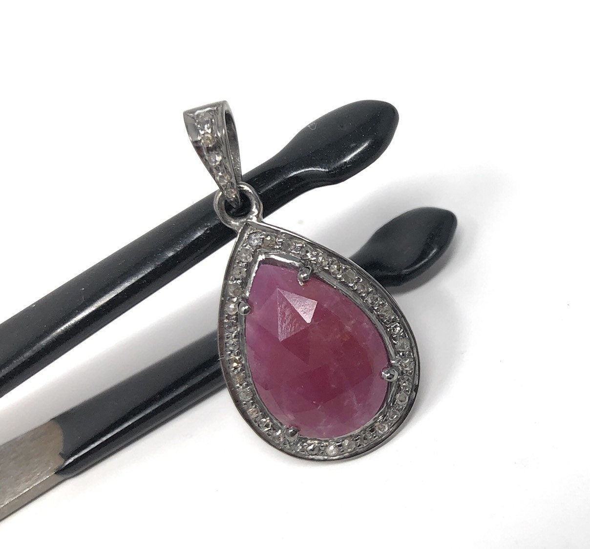 This beautiful Handmade AAA Grade Natural Pink Sapphire Gemstone Drop Shape Oxidized 925 Sterling Silver Pave Diamond Pendant is an excellent choice for any occasion and makes a great gift for the loved ones.