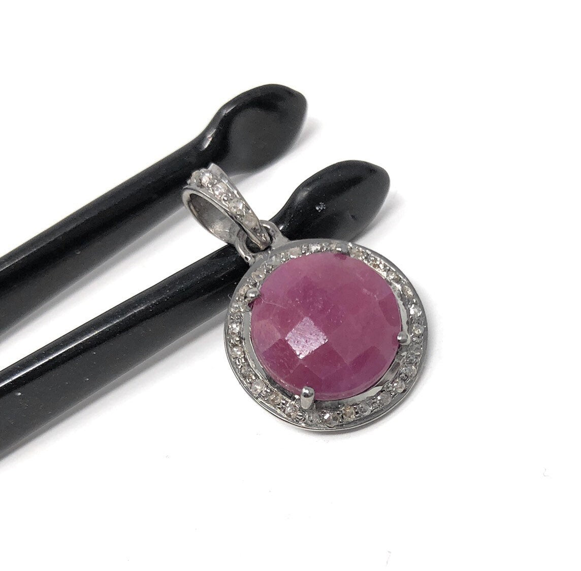 Sterling Silver Pink Sapphire Diamond Pendant, Gemstone Pendant, Pave Diamond Pendant, Natural Sapphire Gemstone Jewelry, Gifts for Her