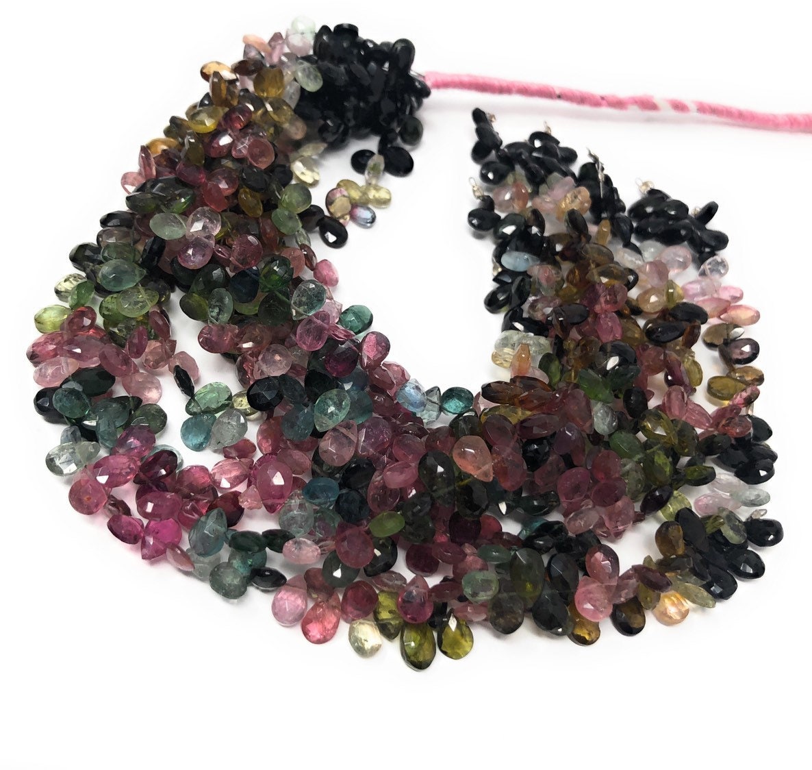 Tourmaline Beads, Gemstone Beads, Multi Tourmaline Faceted Drop Beads, Jewelry Supplies, Wholesale Bulk Beads, 6x5mm - 8x6mm, 8.5" Strand
