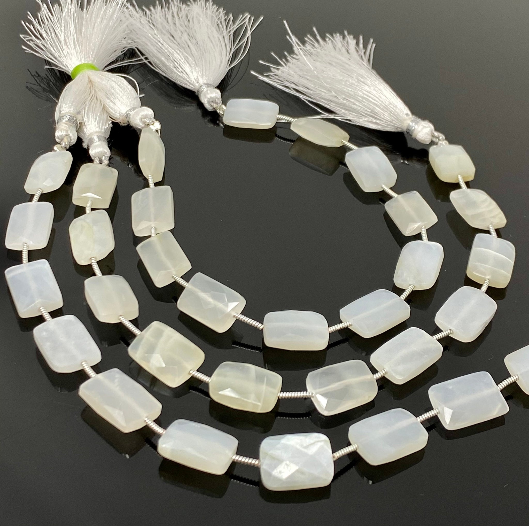 These Beautiful AAA Grade Faceted White Moonstone Beads are excellent for making Bracelets, Necklaces, earrings, Anklets or any other creative Jewelry Design.