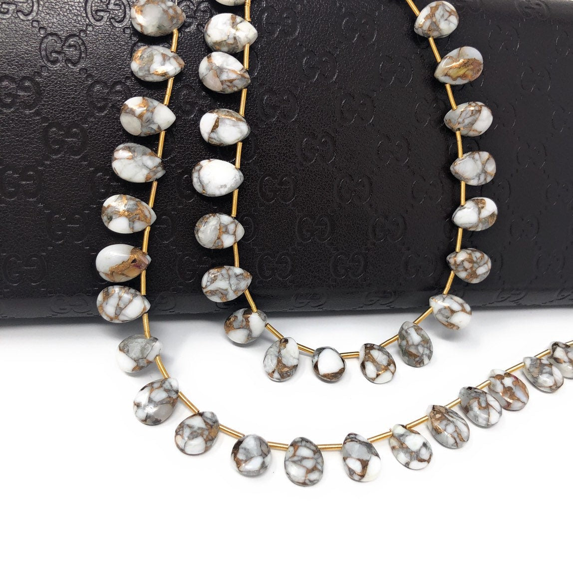White Oyster Copper Turquoise Beads, Gemstone Beads, Wholesale Beads for DIY Jewelry Making, Jewelry Supplies, 10X7.5mm , 22 Pcs
