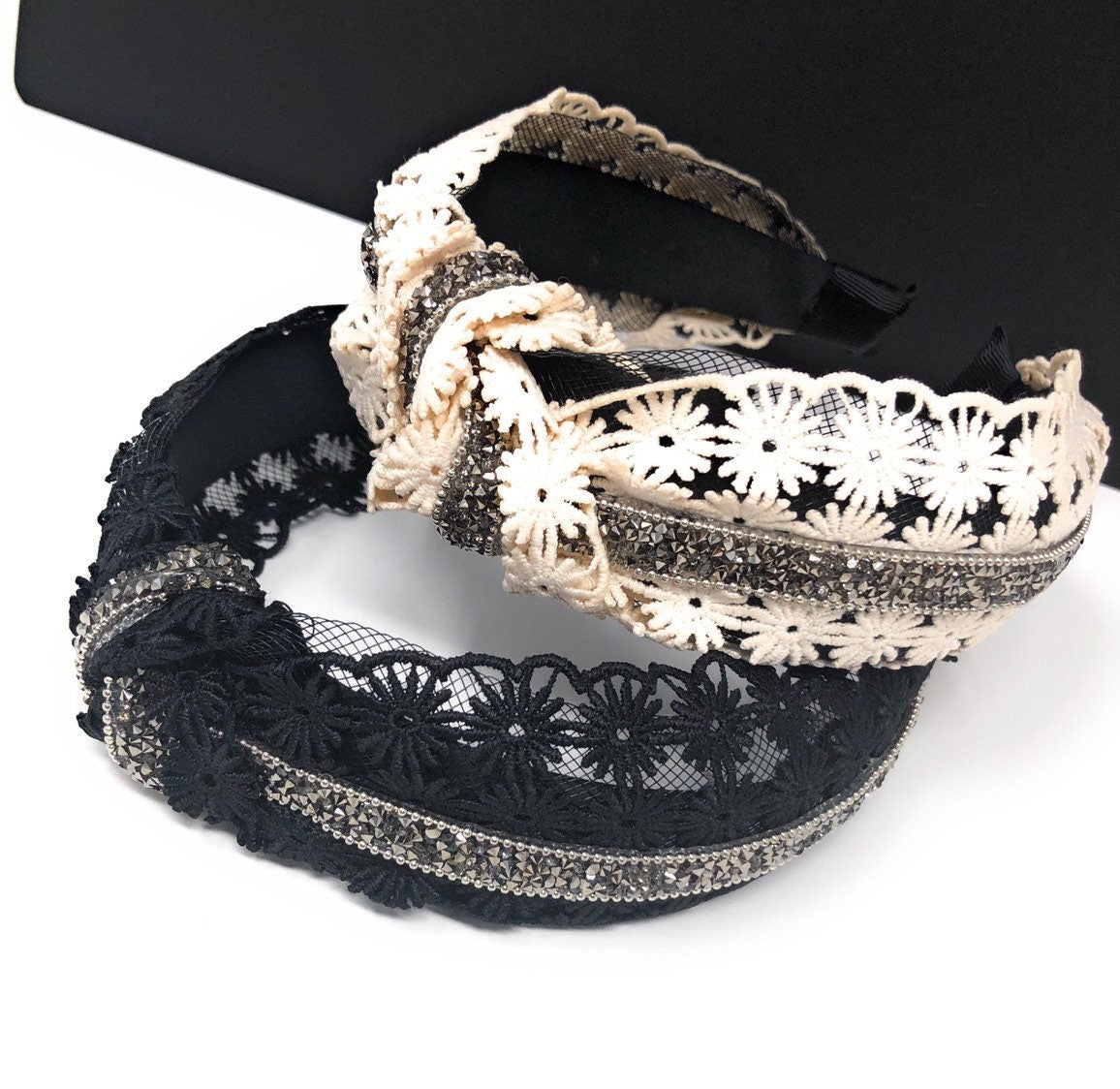 Wide Crystal Lace Twisted Knot Turban Wide Headband for Gilrs.