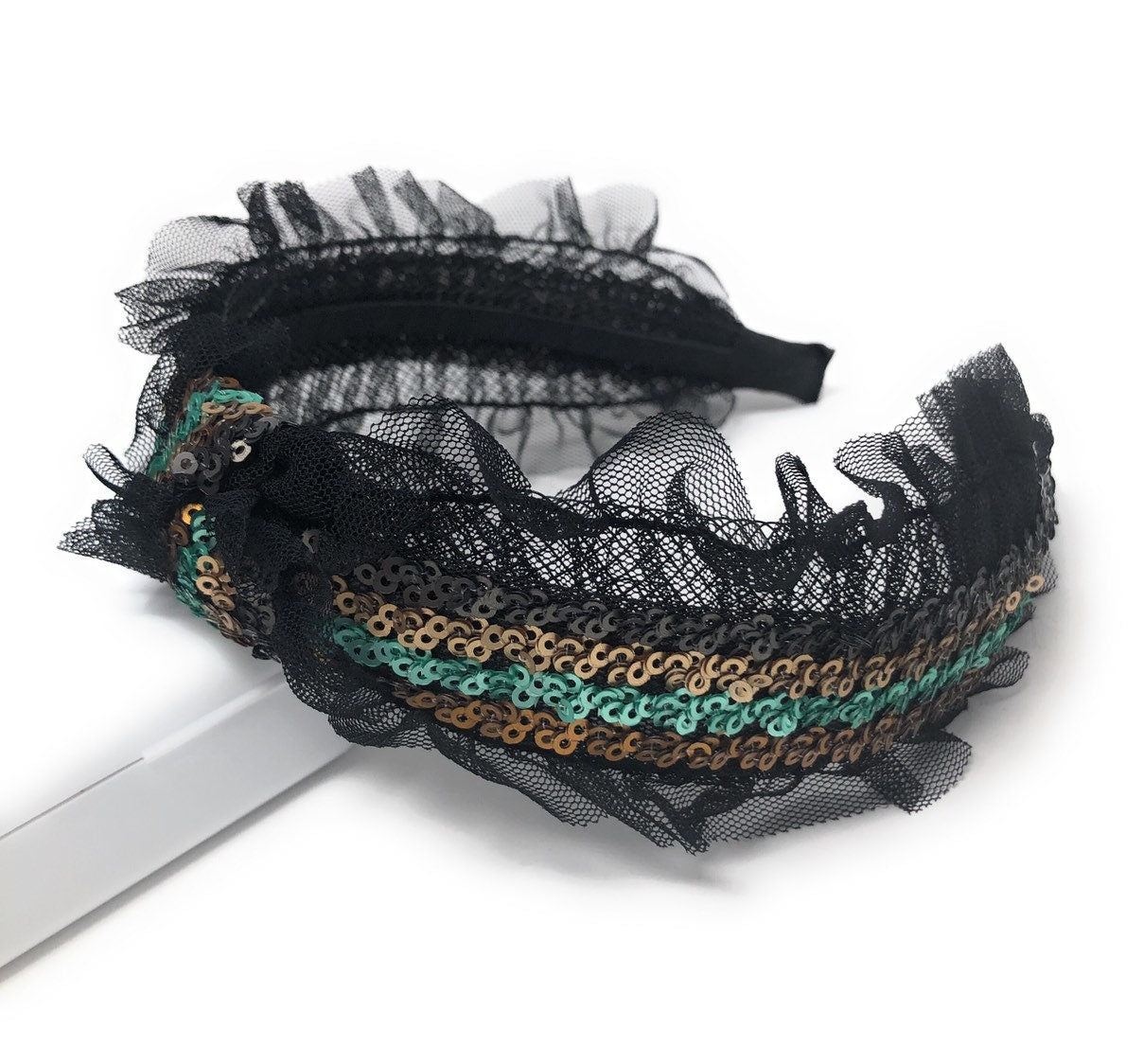 Wide Headband for Girls, Sequins Twisted Knot Headbands, Retro Hairbands, Lace Headbands, Bohemian Hairband, 1 Pc
