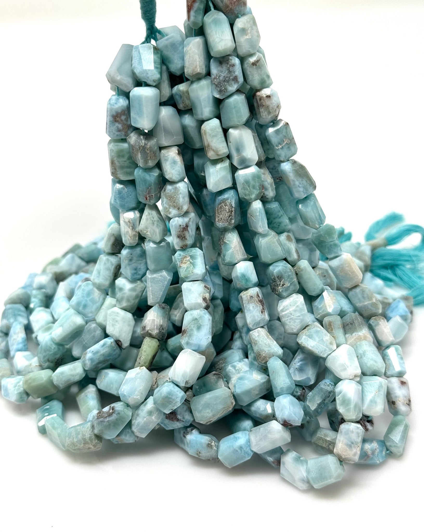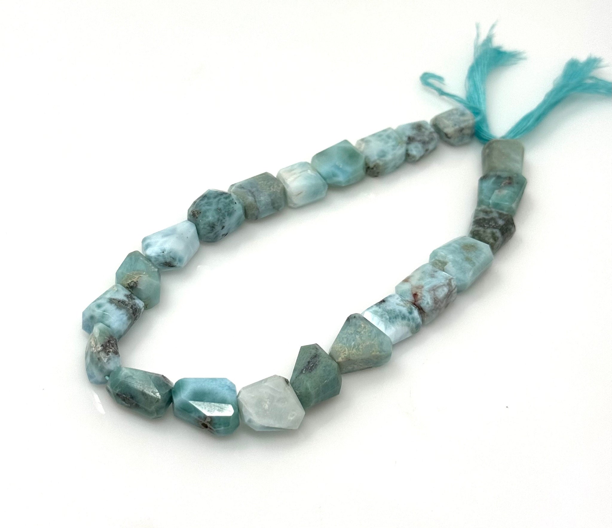 10” Natural Larimar Gemstone Beads, Faceted Larimar Nugget Beads, Bulk Wholesale Beads, 9mm - 14mm