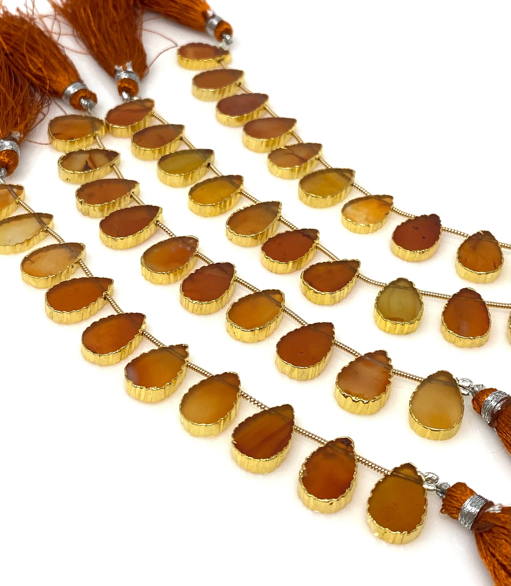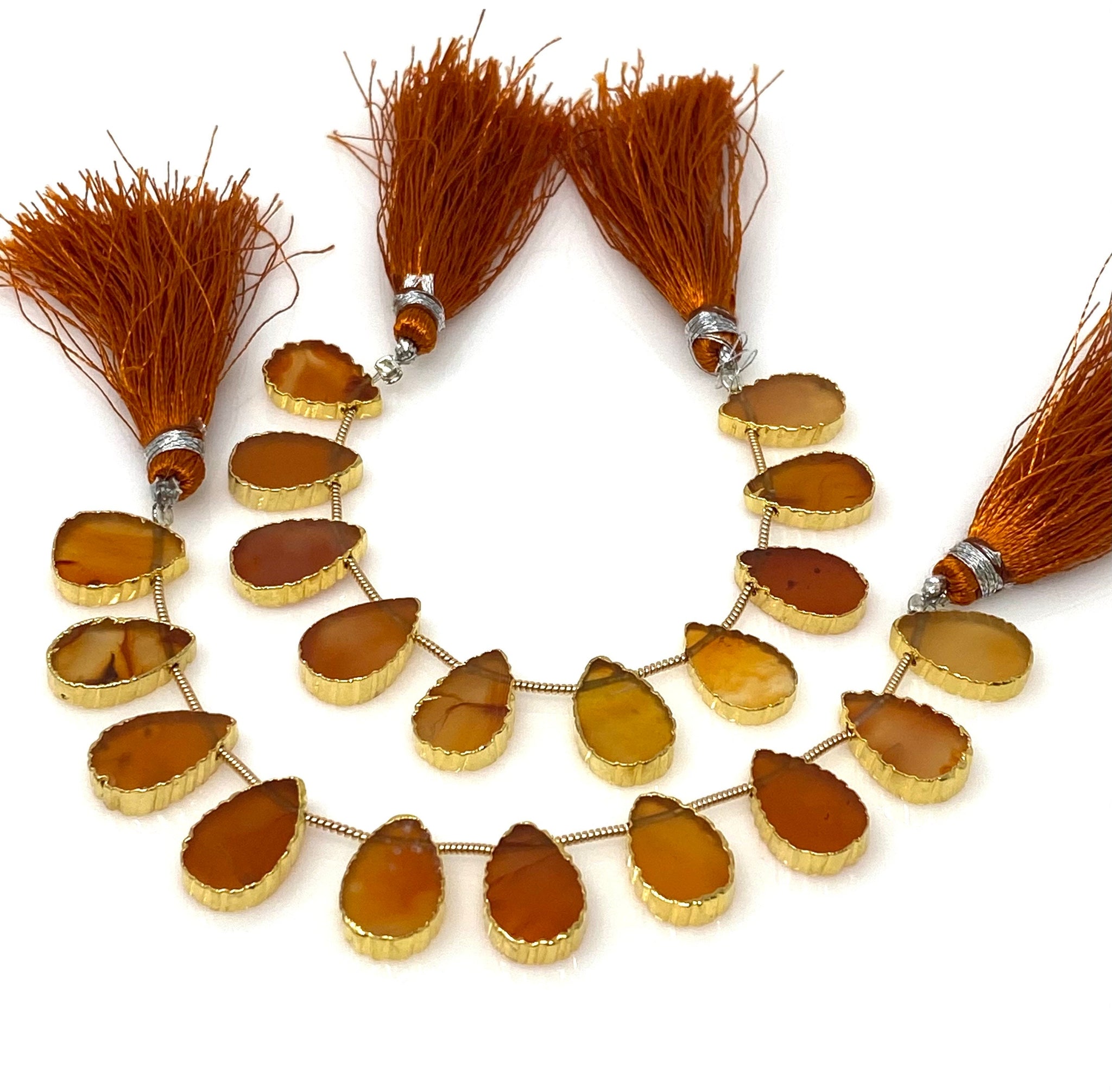 10 Pcs Carnelian Electroplated Slice Beads, Natural Carnelian Gemstone Wholesale Beads 14x9mm - 15x10mm