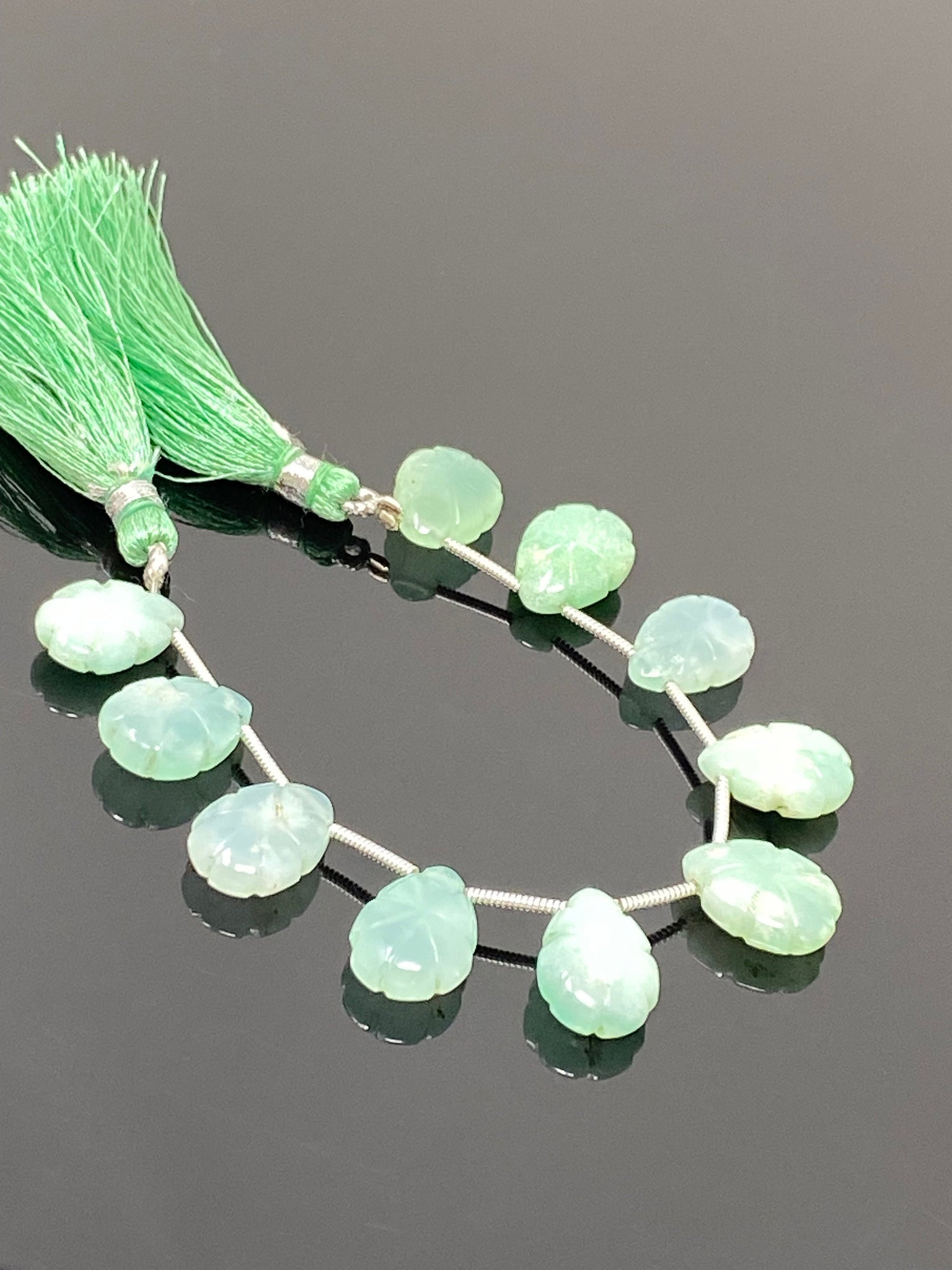 These Beautiful Untreated Chrysoprase Carved Beads are excellent choice for making exclusive pieces of jewelry.