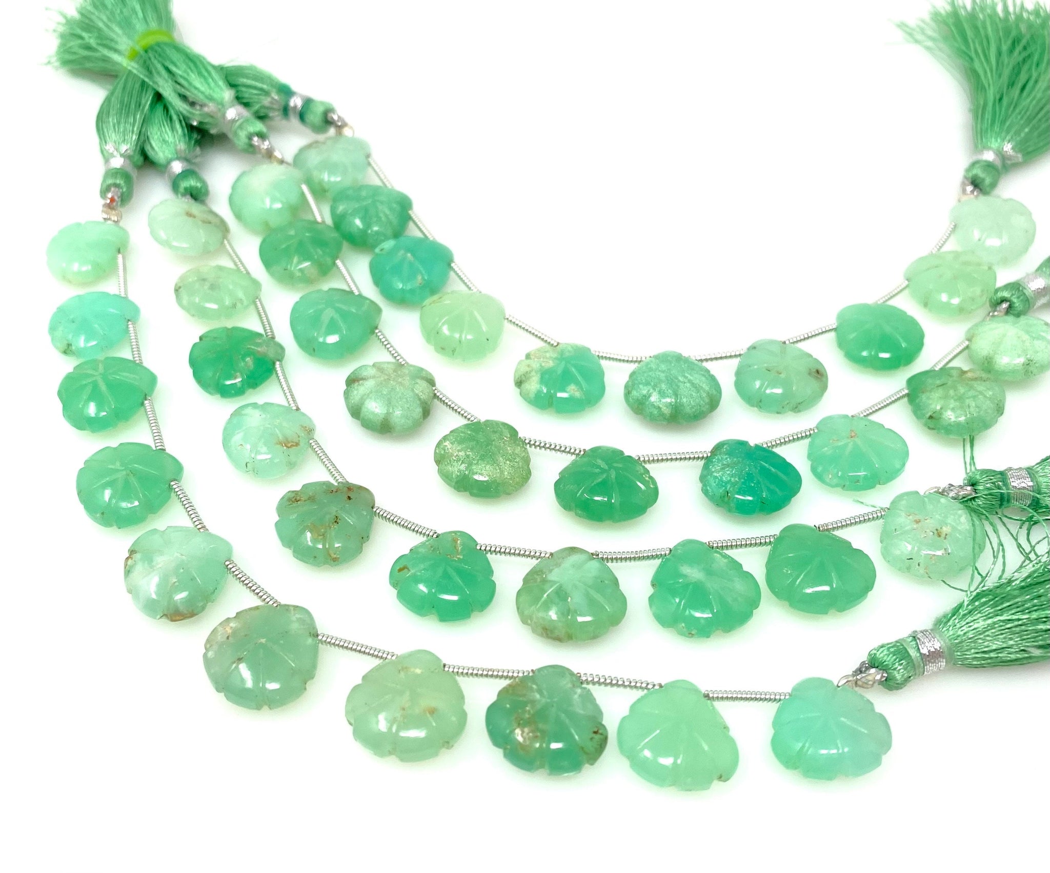 Natural Chrysoprase Carved Flower Gemstone Beads for DIY Jewelry Making at Wholesale Price.