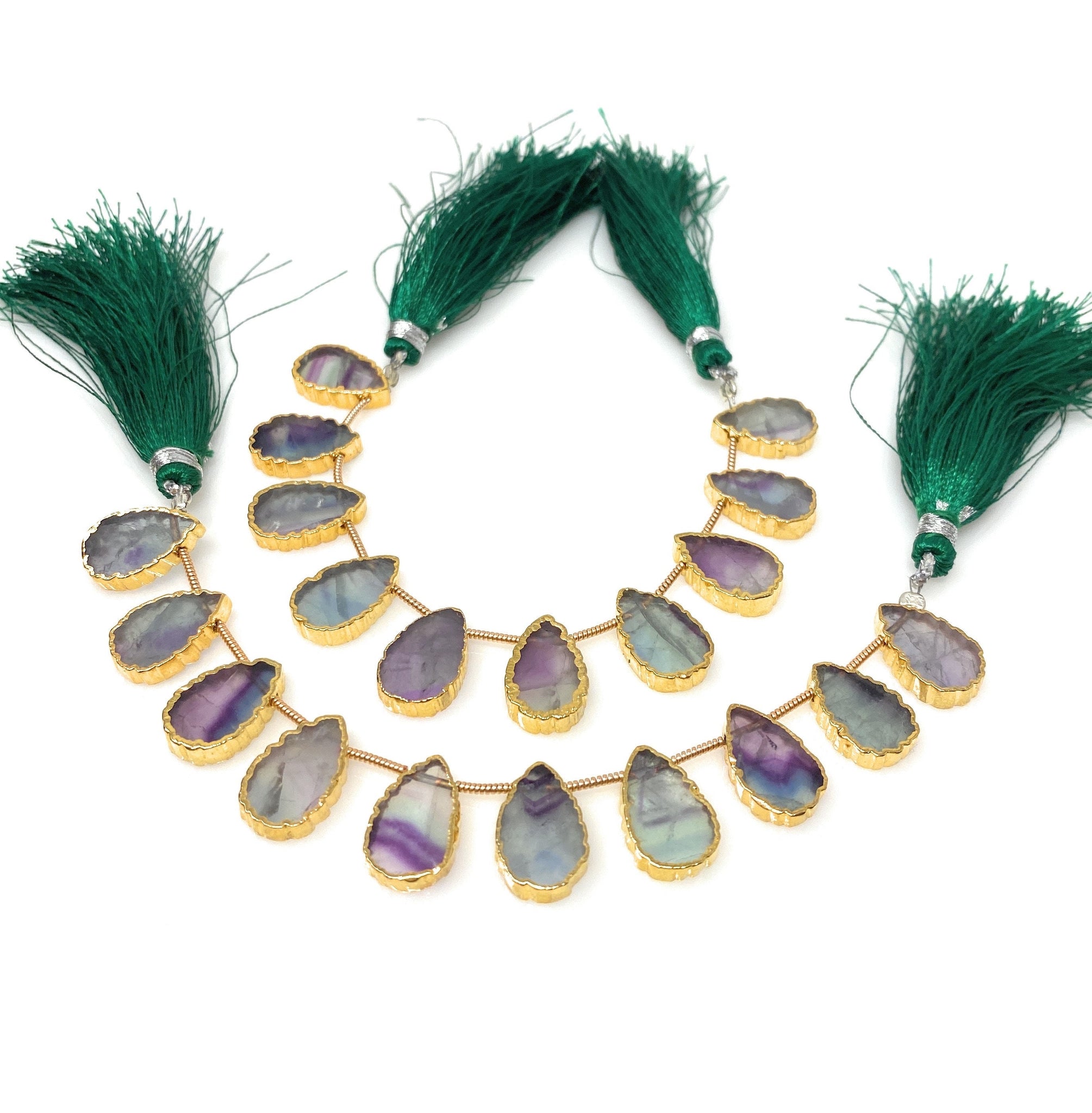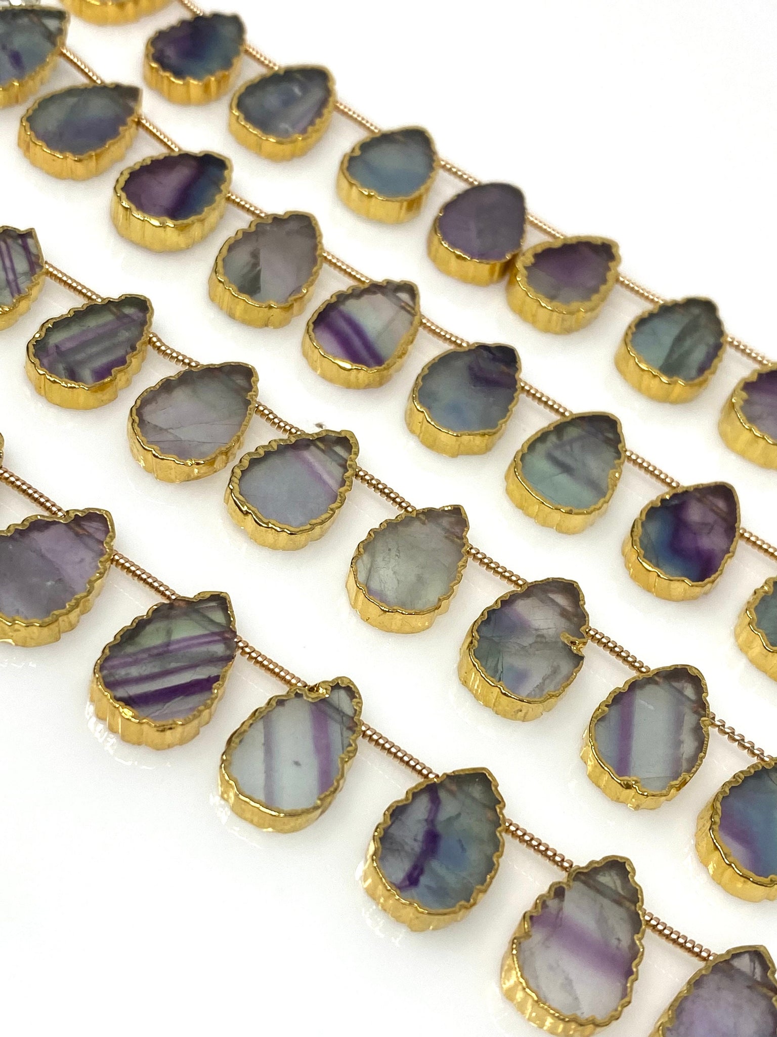 10 Pcs Fluorite Electroplated Slice Beads, Fluorite Gemstone Wholesale Beads 14x9mm - 15x10mm