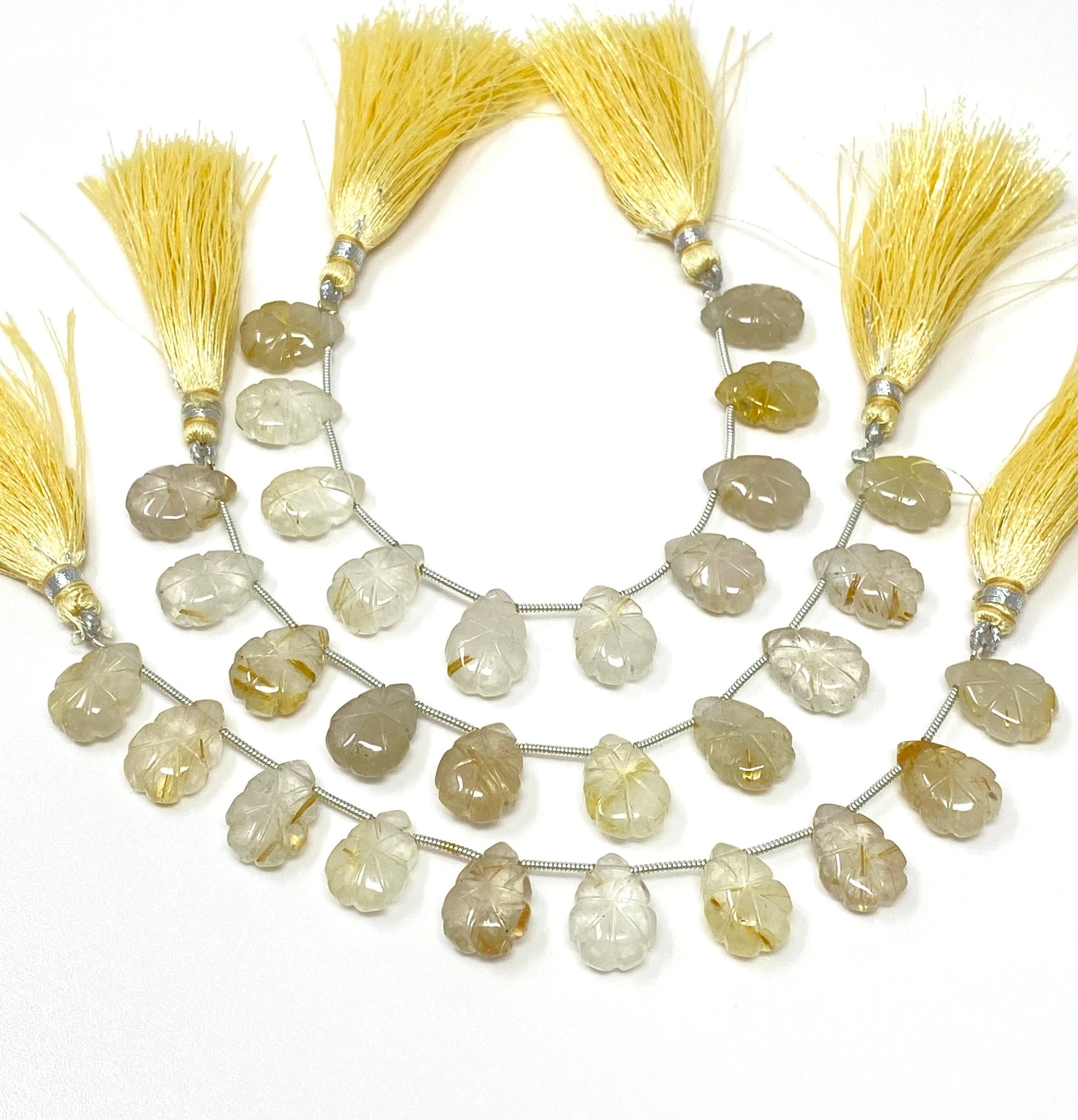 These Beautiful Untreated Golden Yellow Rutilated Quartz Carved Beads are excellent choice for making exclusive pieces of jewelry.