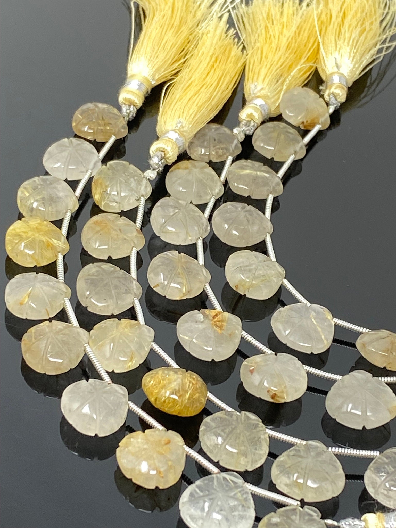 These Beautiful Untreated Golden Yellow Rutilated Quartz Carved Beads are excellent choice for making exclusive pieces of jewelry.