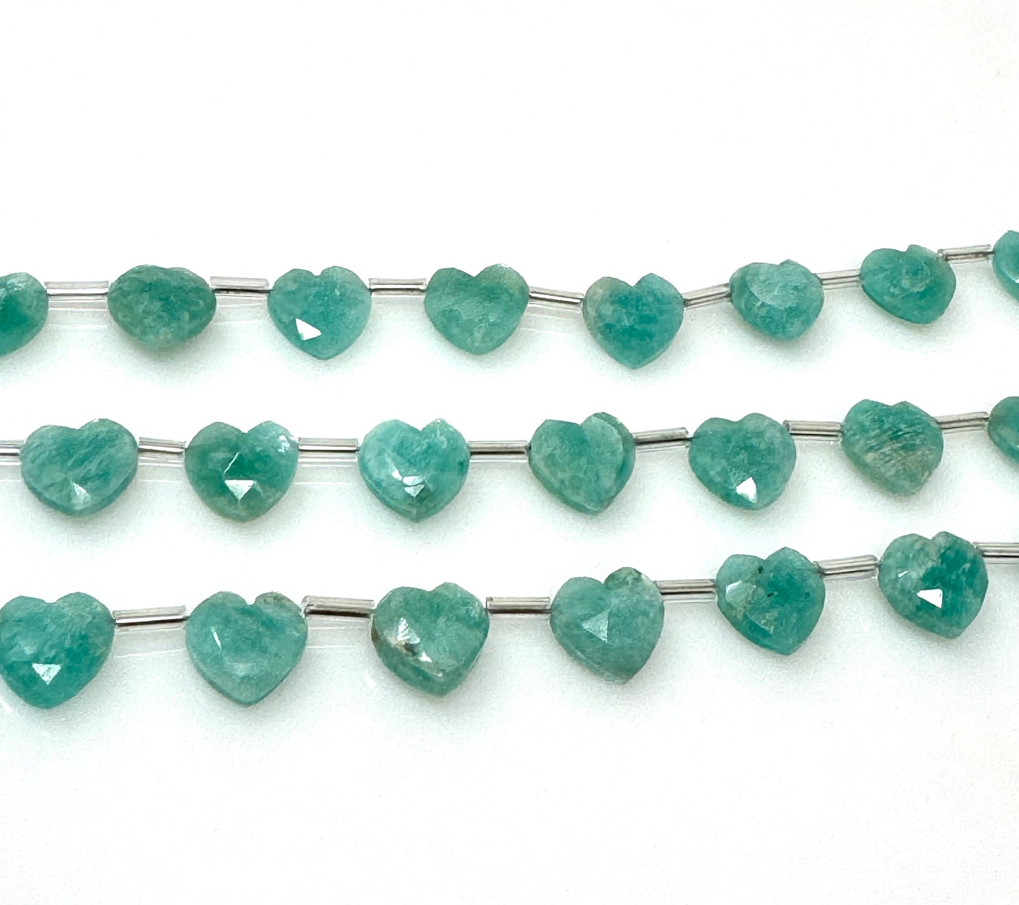 10 Pcs Natural Amazonite Gemstone Beads, Faceted Heart Shape Beads, Peruvian Amazonite Beads, Wholesale Bulk Beads, 9mm - 10mm