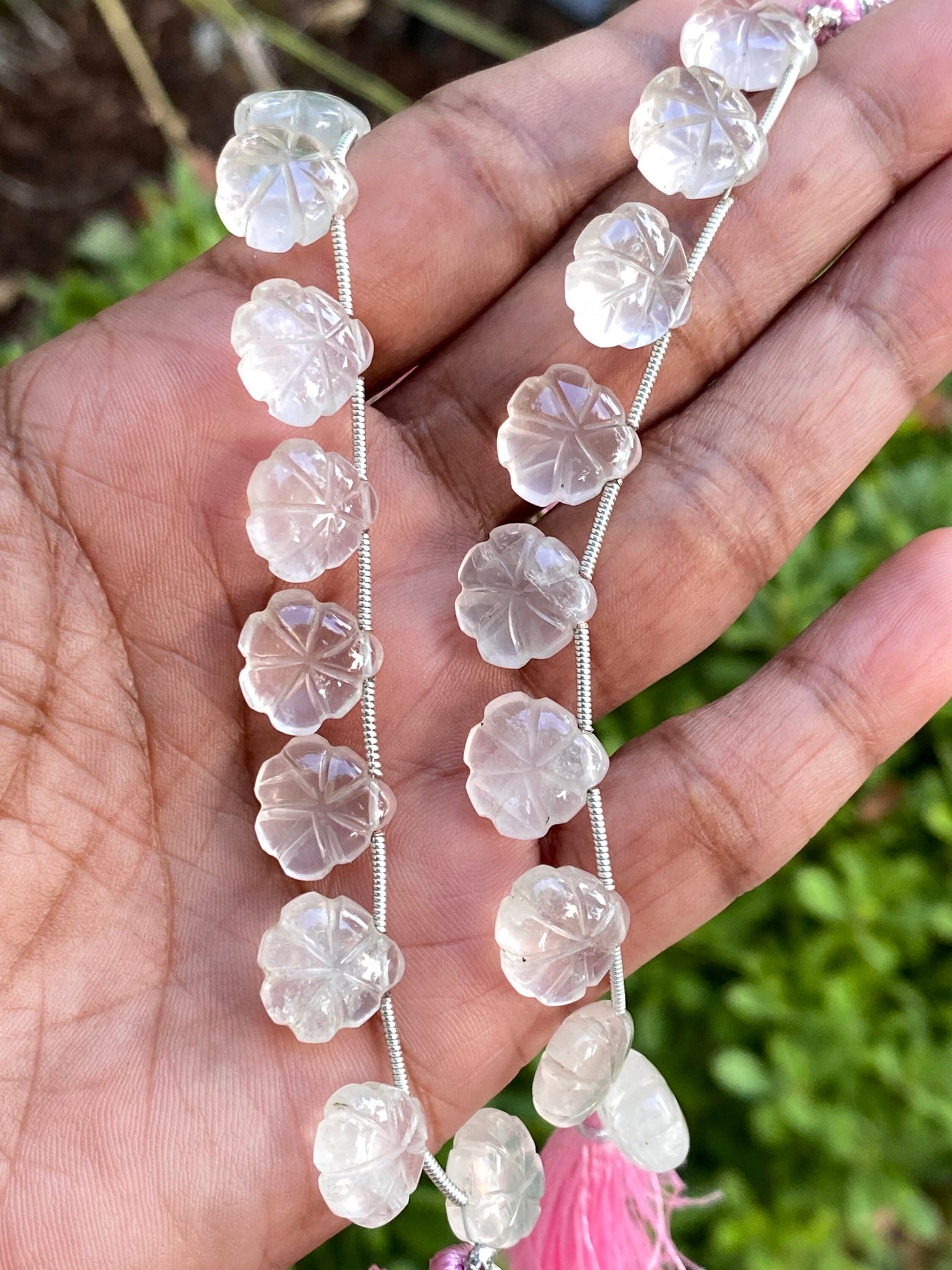 Natural Rose Quartz Carved Flower Gemstone Beads for DIY Jewelry Making at Wholesale Price.