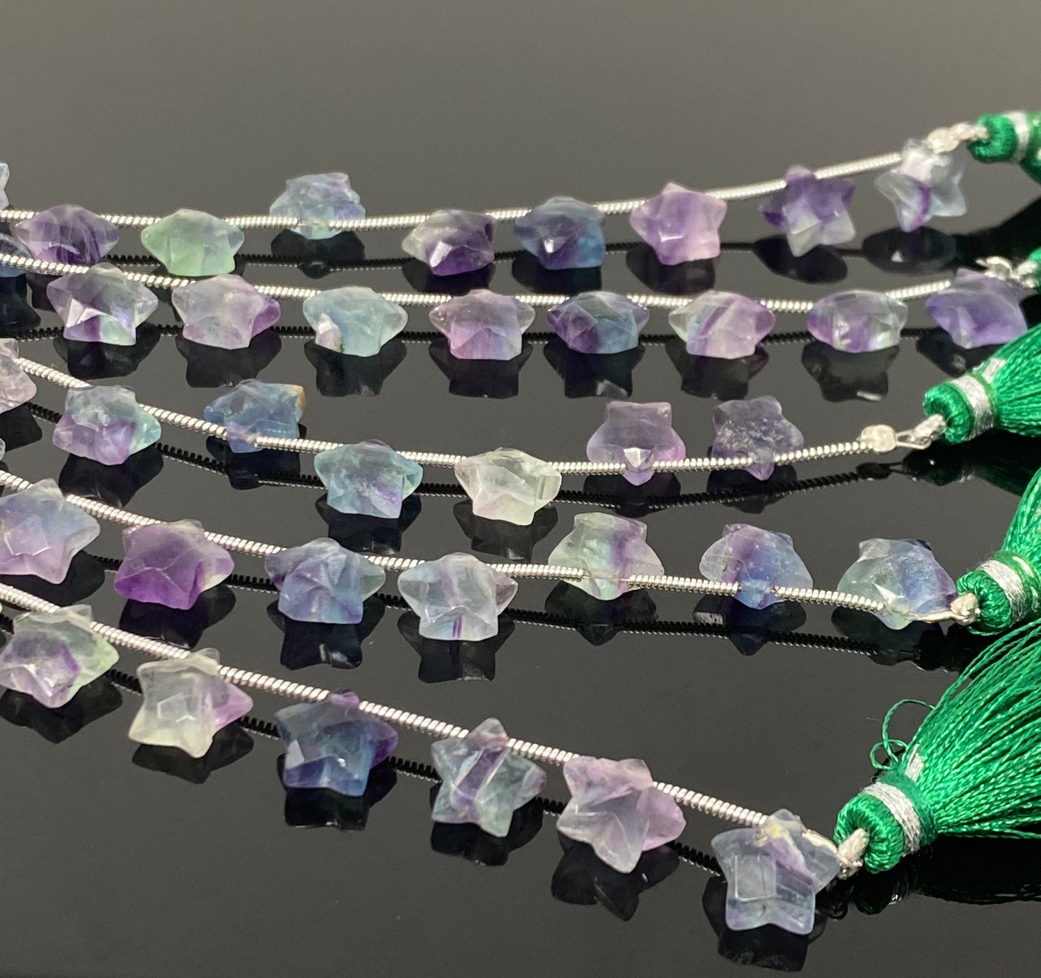 10mm Natural Multi Fluorite Gemstone Beads, Hand Carved Star Beads, Wholesale Bulk Beads, 5” Strand/ 10 Beads