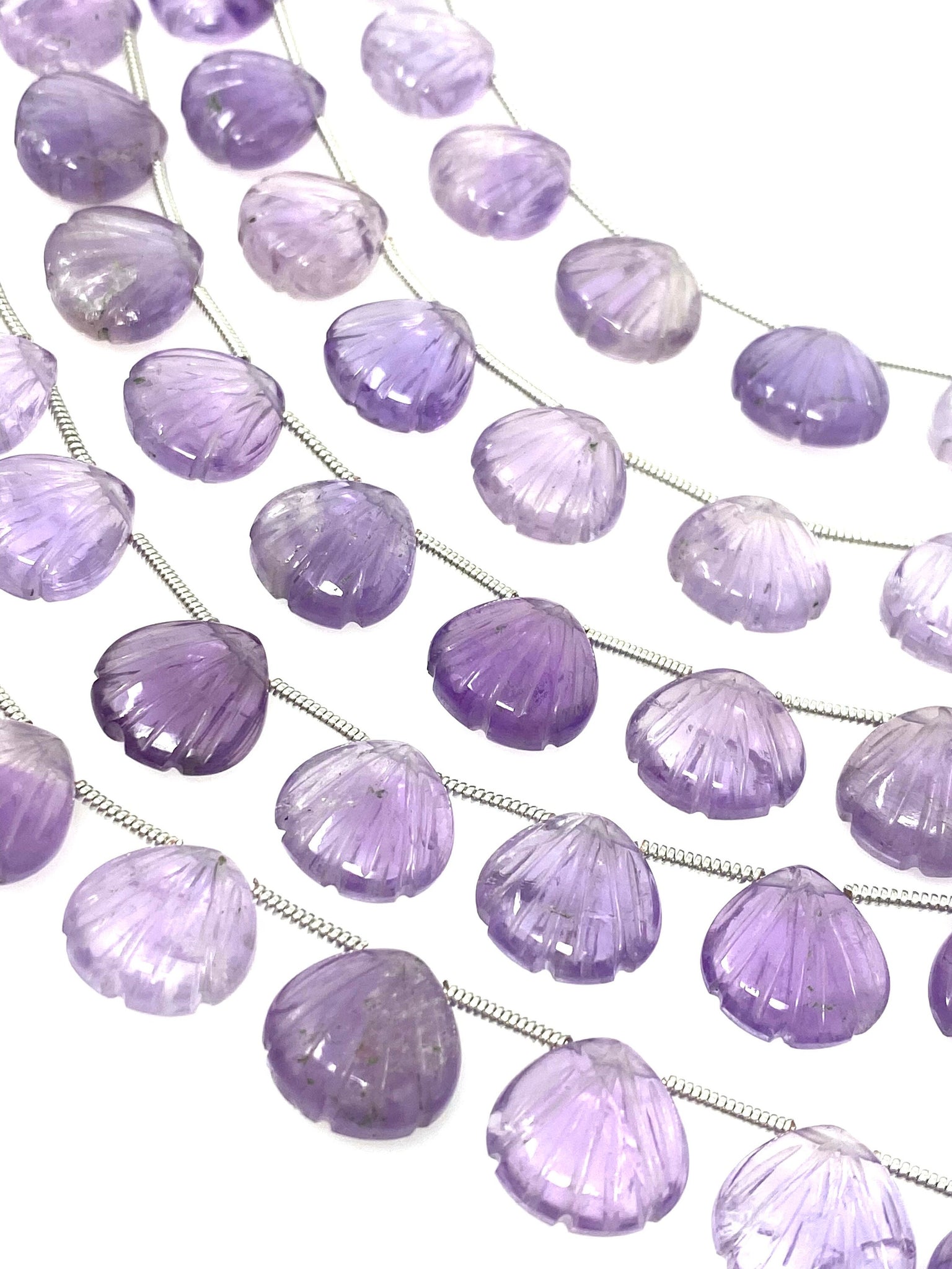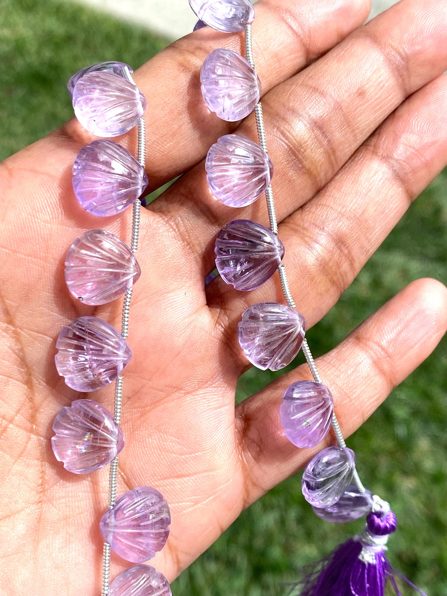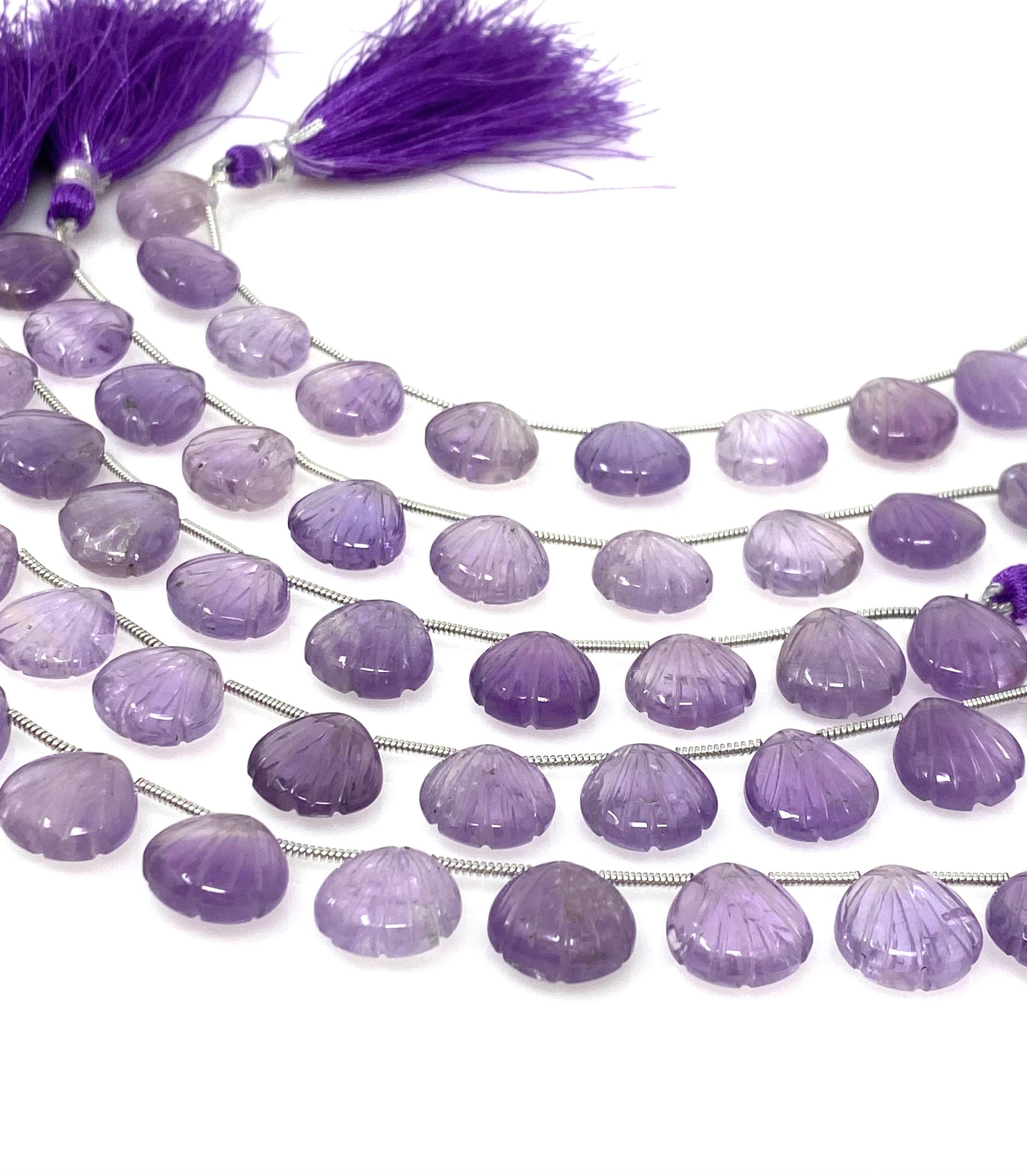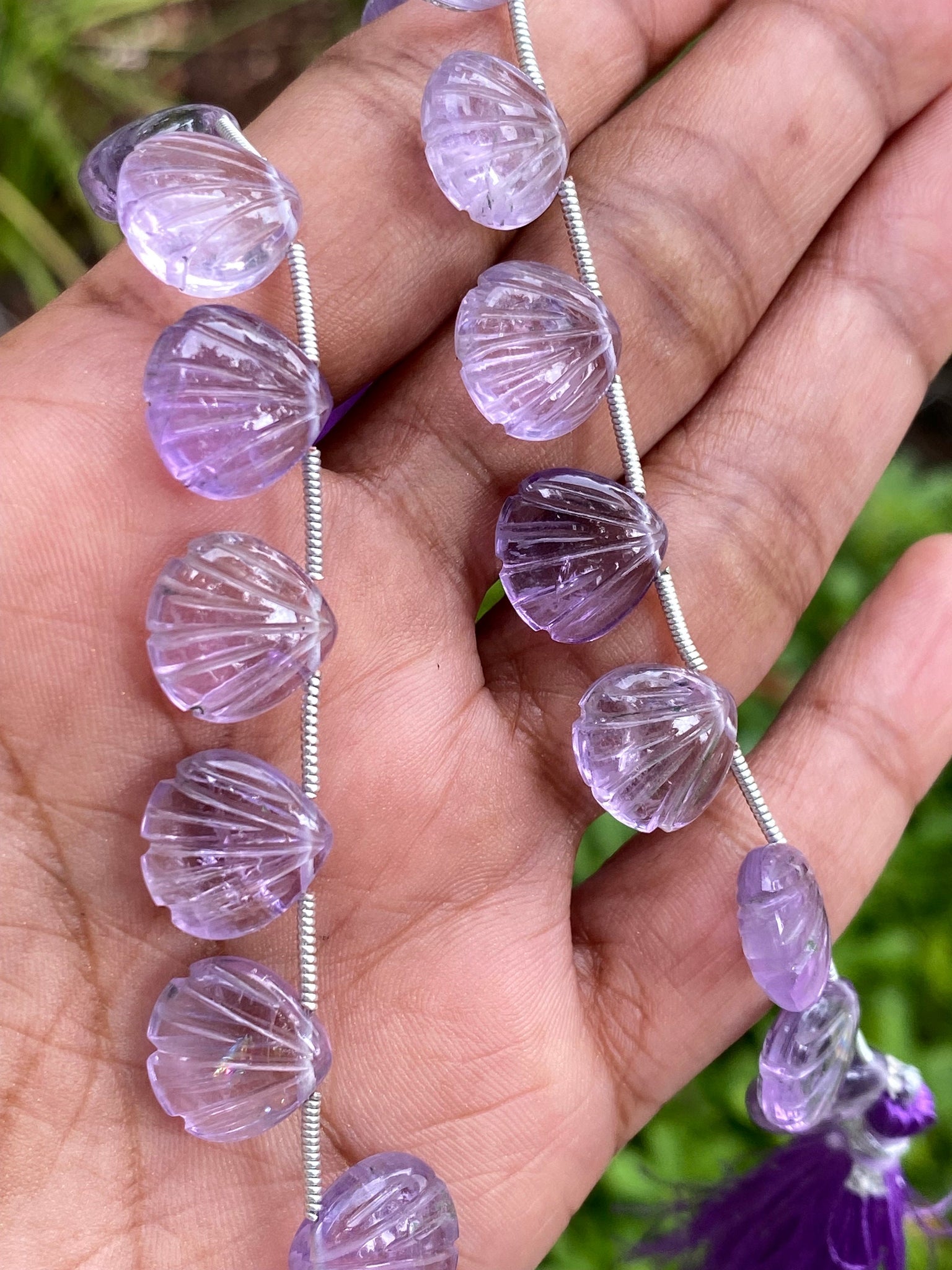 12mm Amethsyt Carved Gemstone Beads, Amethsyt Shell Shape Carved Briolette Beads for Jewelry Making, 10 Pcs