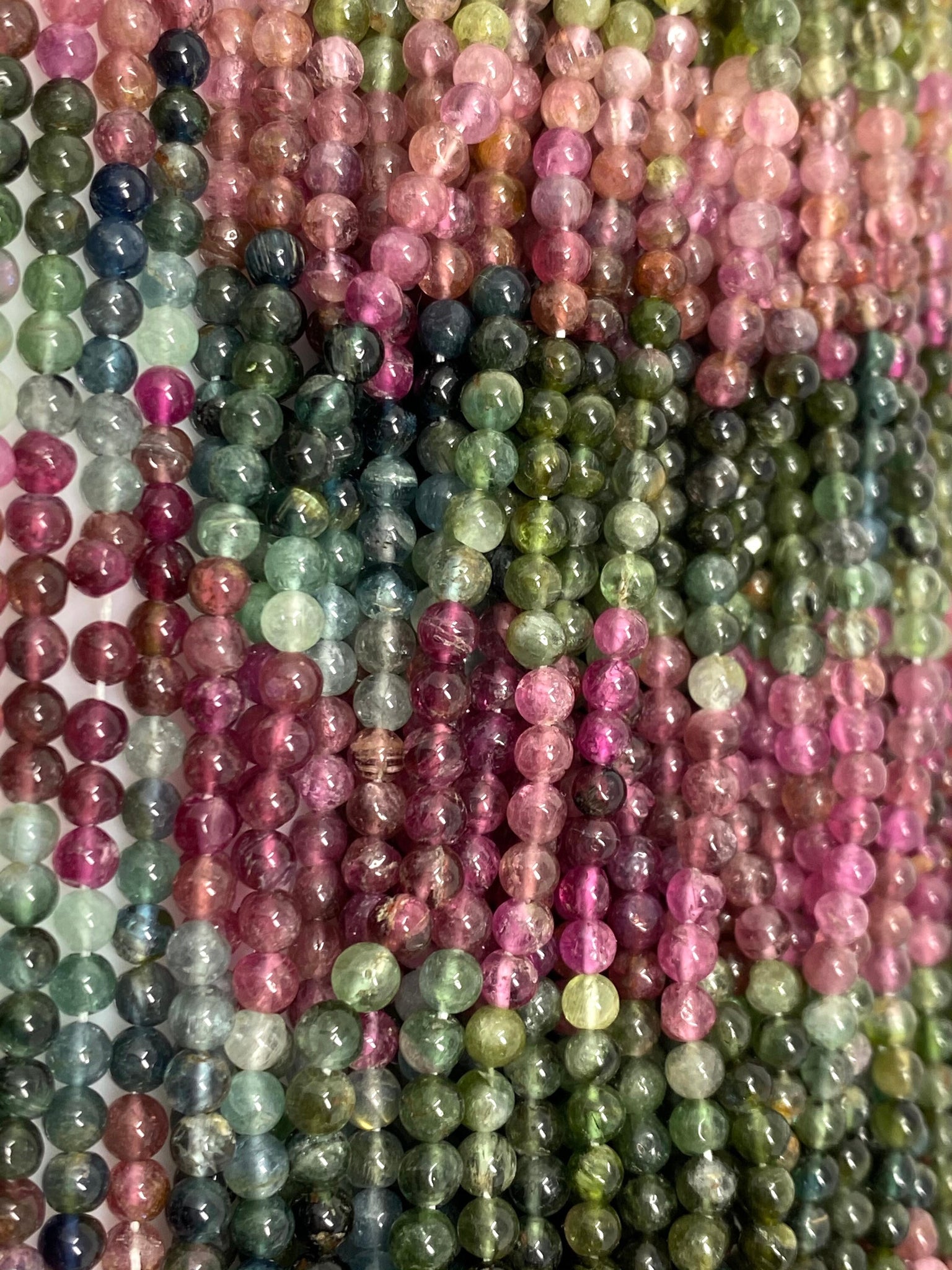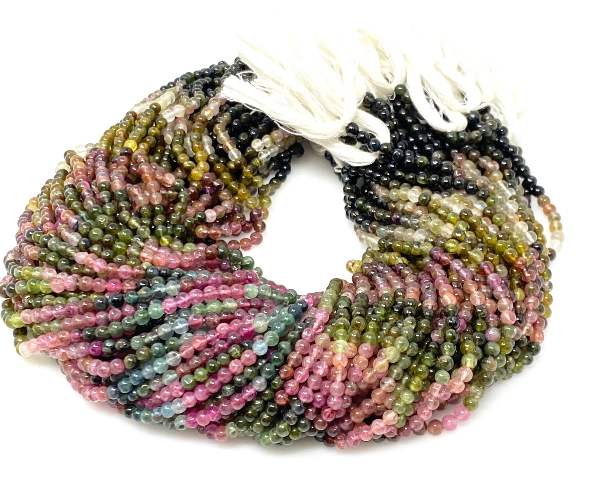 13" Natural Tourmaline Gemstone Beads, Multi Tourmaline Smooth Round Beads, Jewelry Supplies, Wholesale Bulk Beads, AA+ Grade, 3.75mm - 4mm