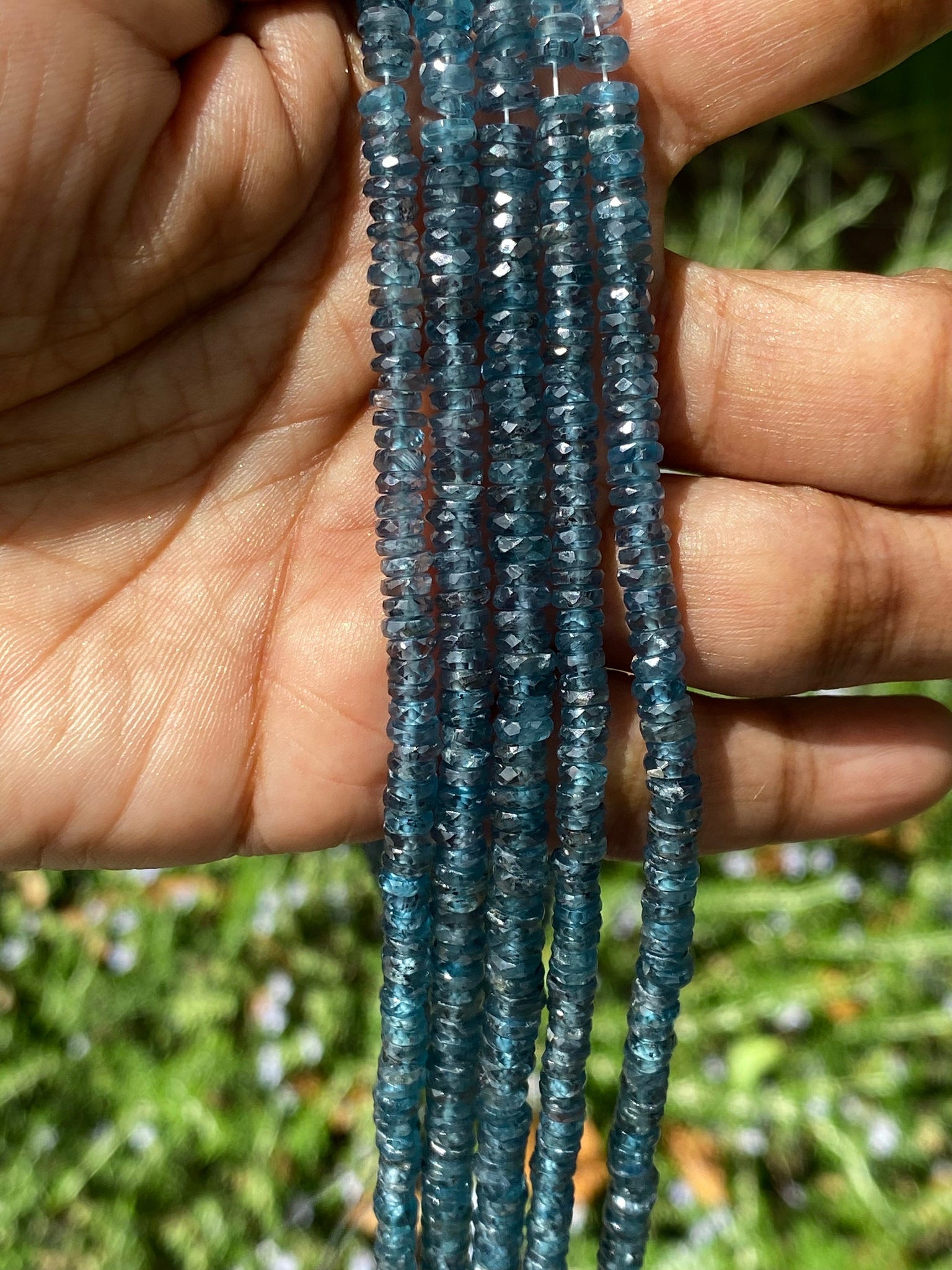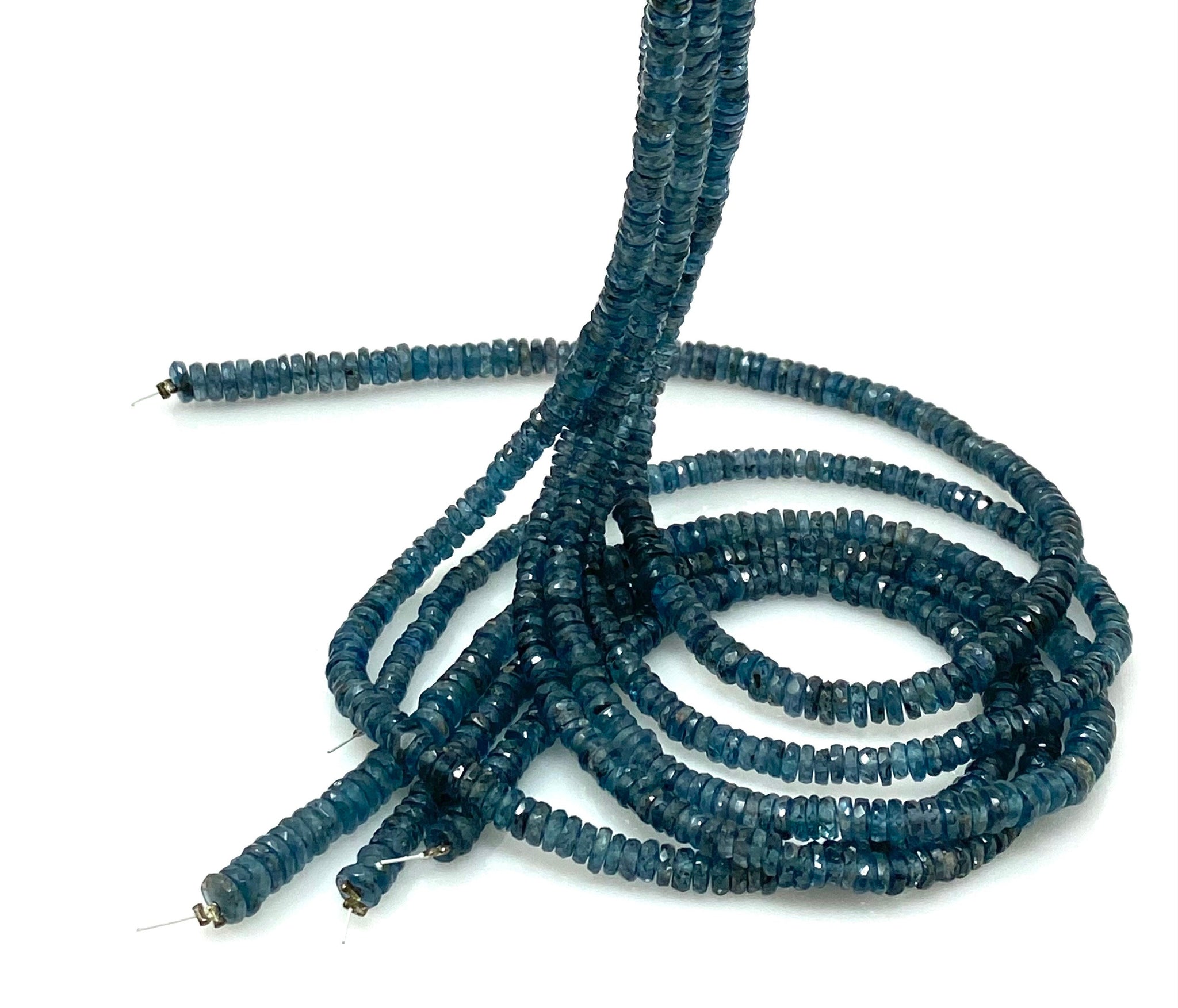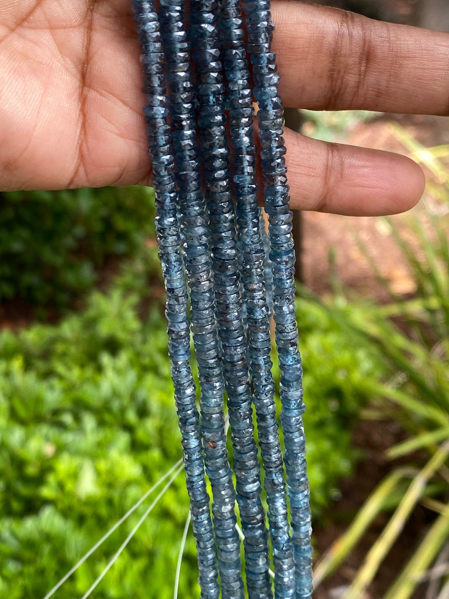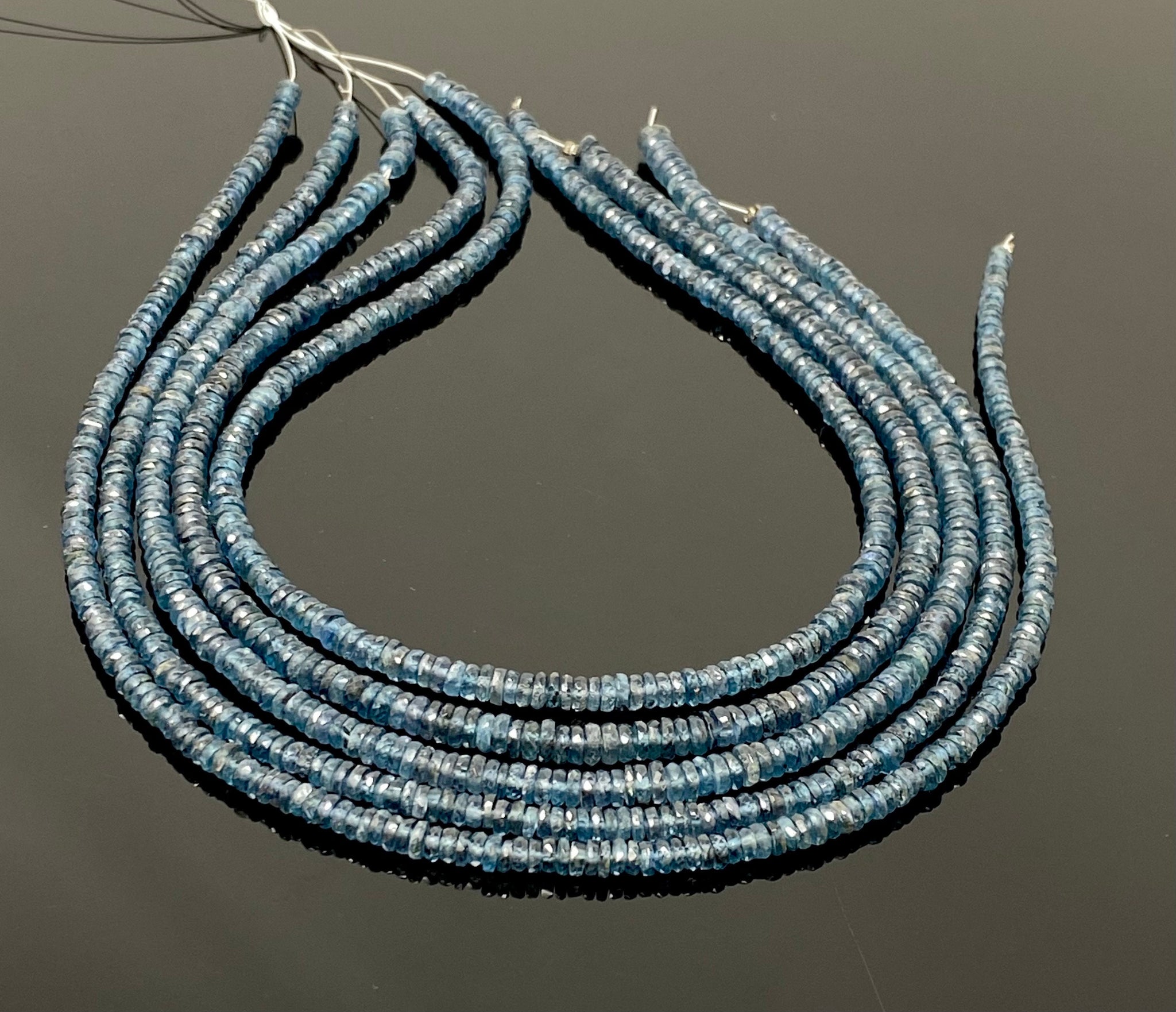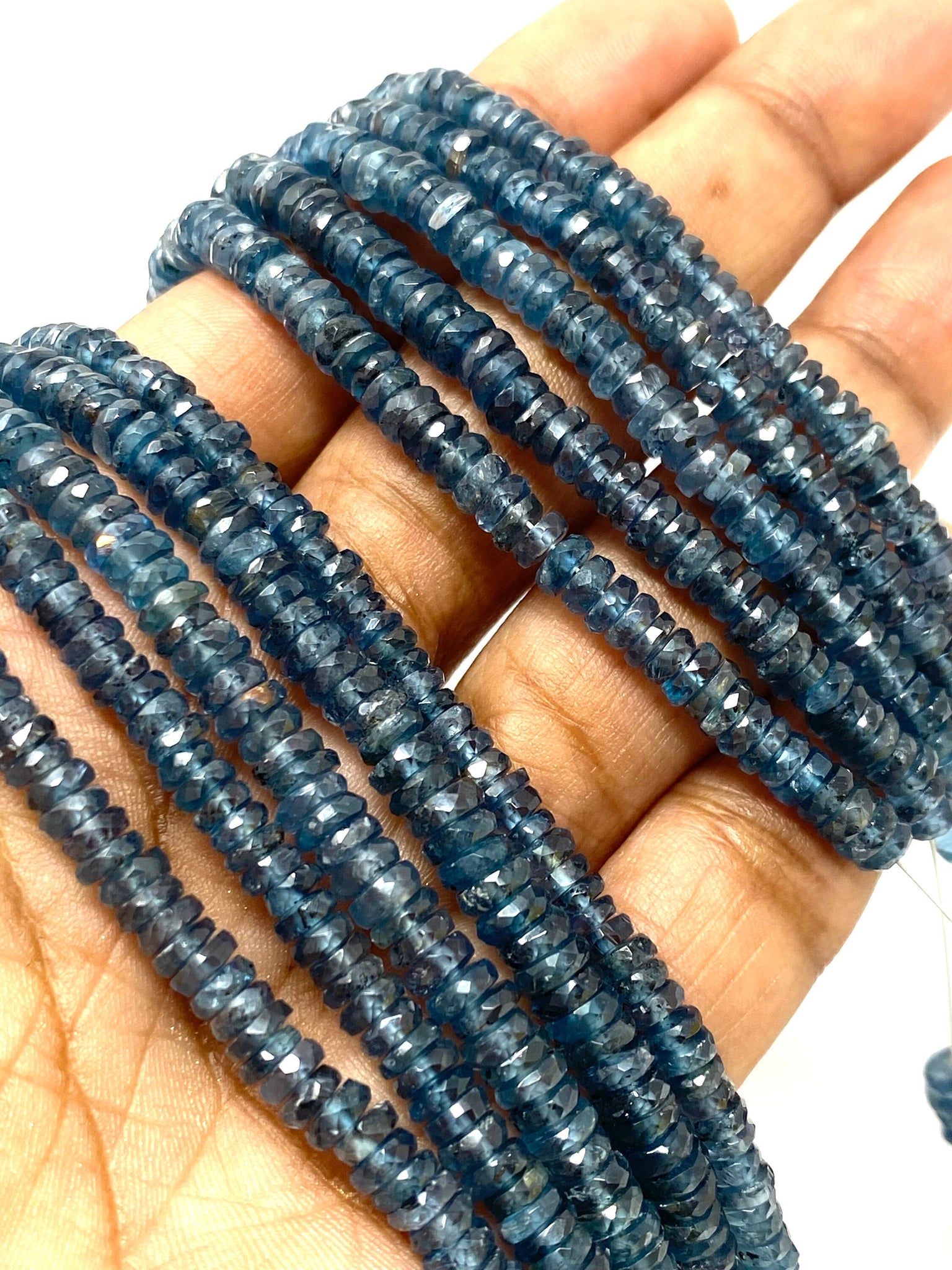 14” Rare Kyanite Gemstone Beads, Natural Indigo Kyanite Faceted Heishi Tyre Beads AAA Grade