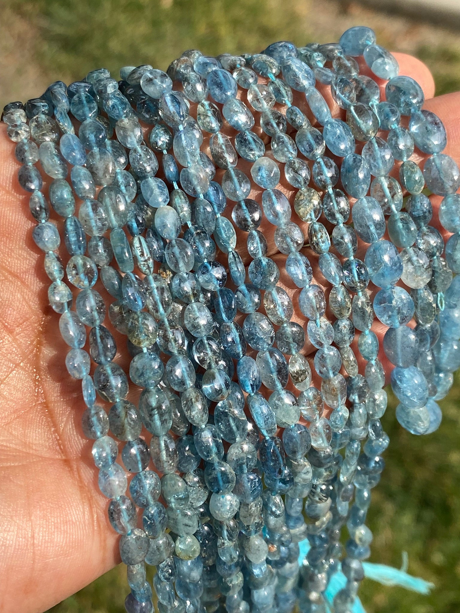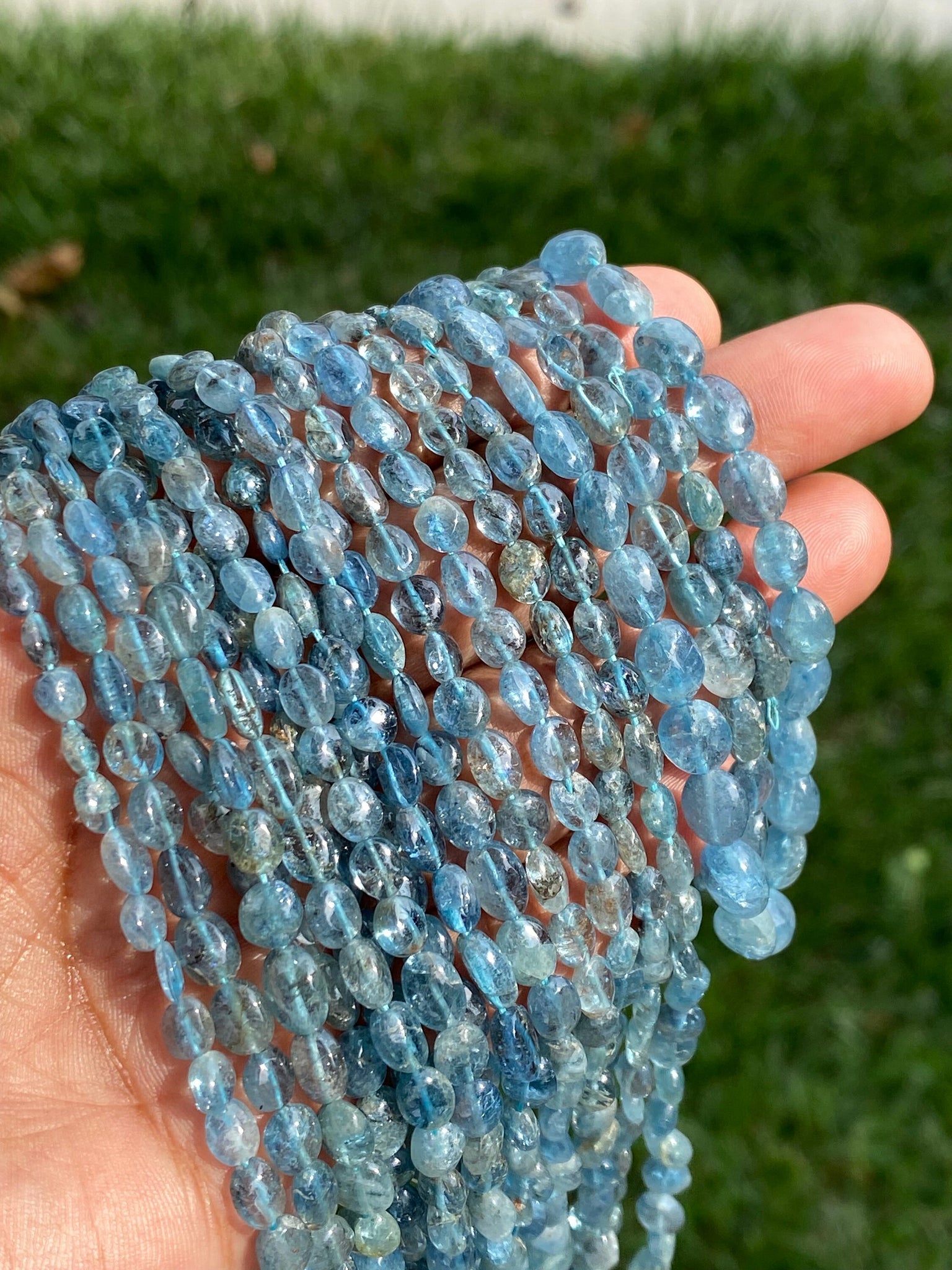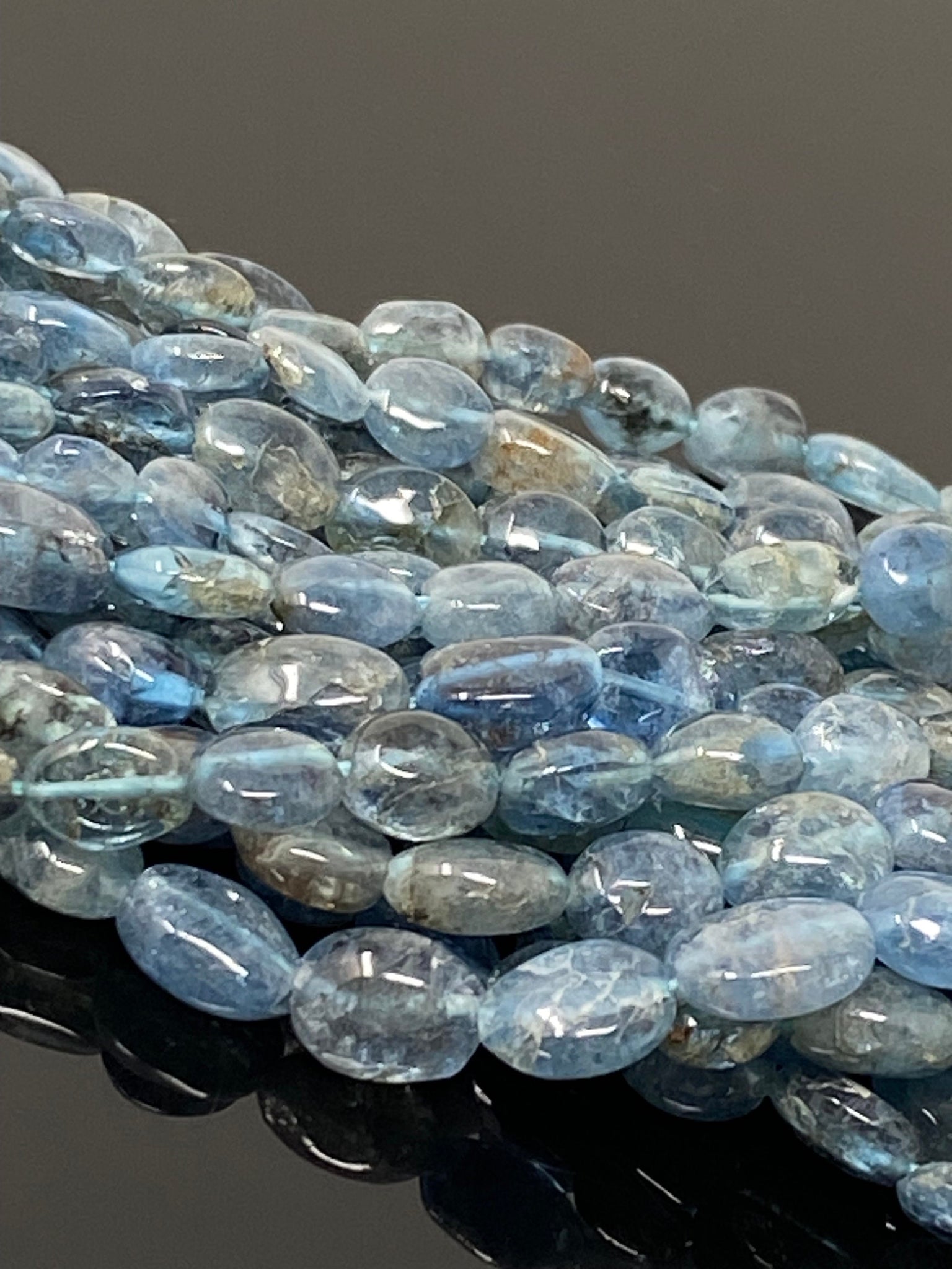 15” Rare Santa Maria Aquamarine Gemstone Beads, Aquamarine Oval Nugget Smooth Beads, Bulk Wholesale Beads