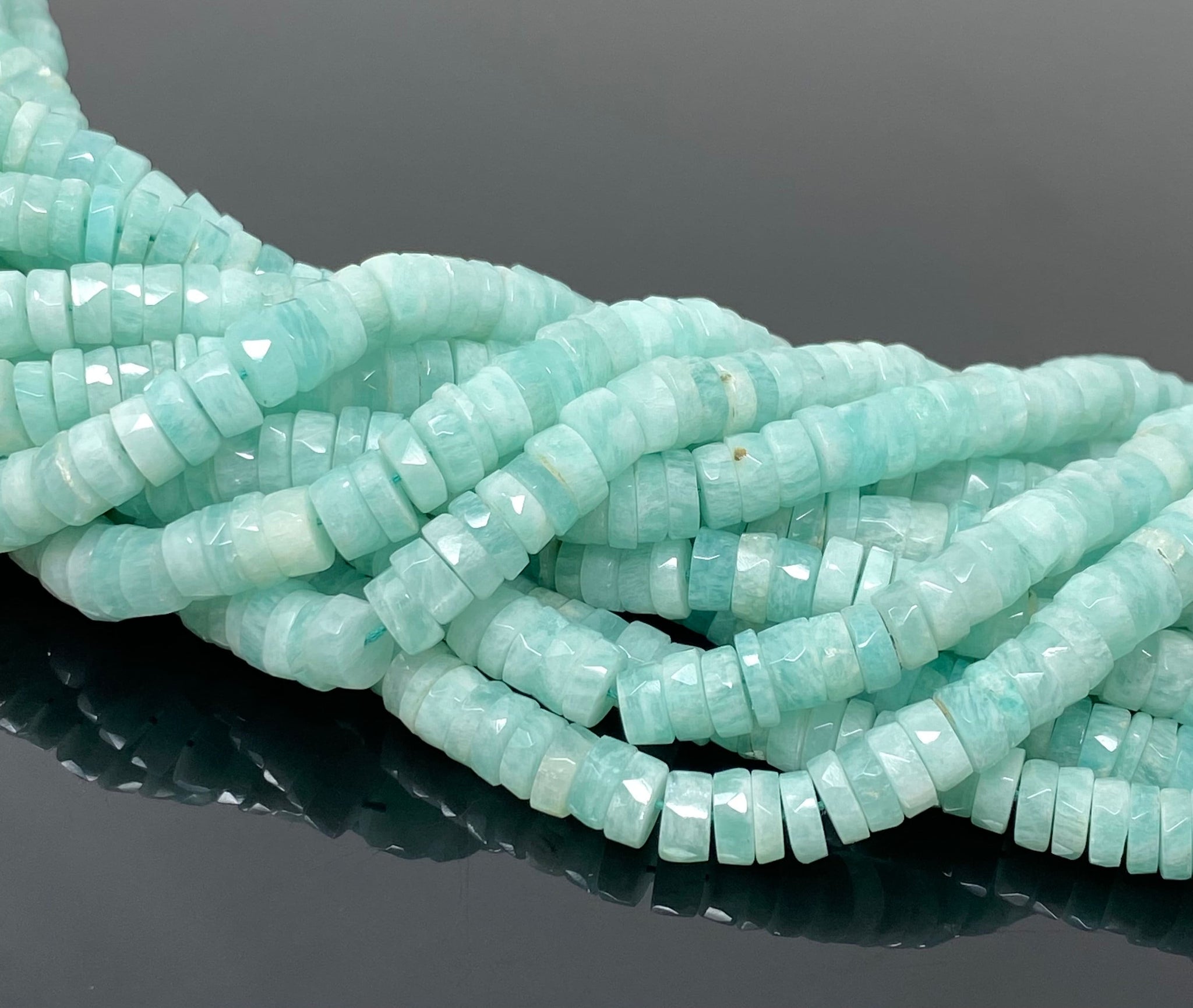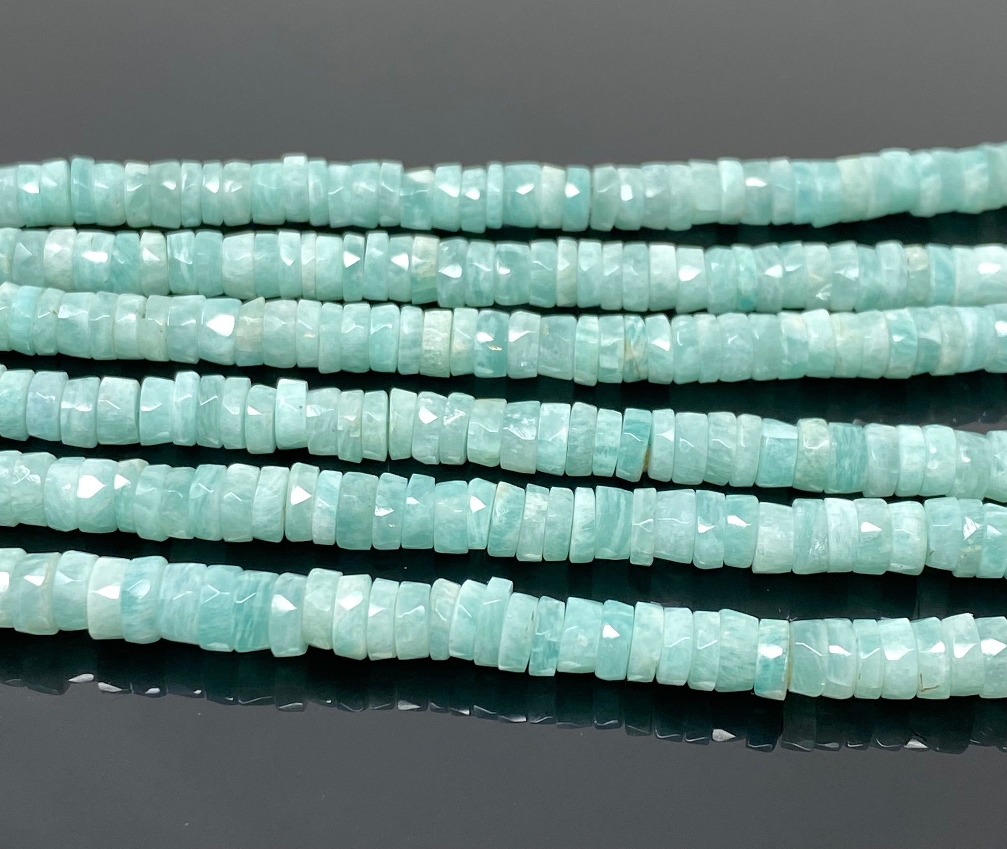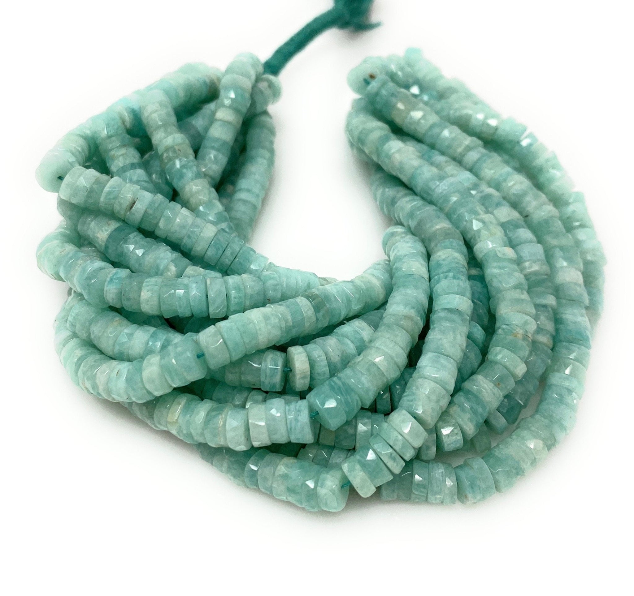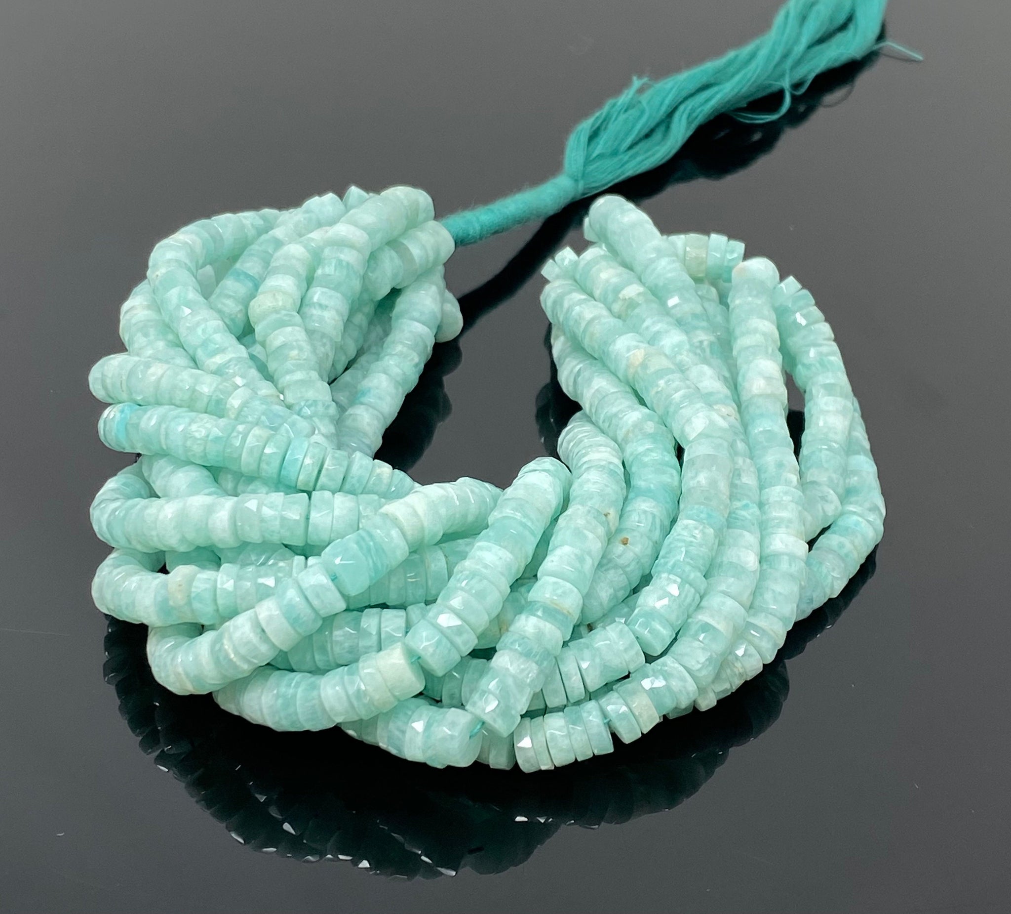 These Beautiful AAA Grade Natural Amazonite Faceted Heishi Beads are excellent for making Necklaces, Bracelets, Earrings , Anklets or any other Creative Jewelry Design.