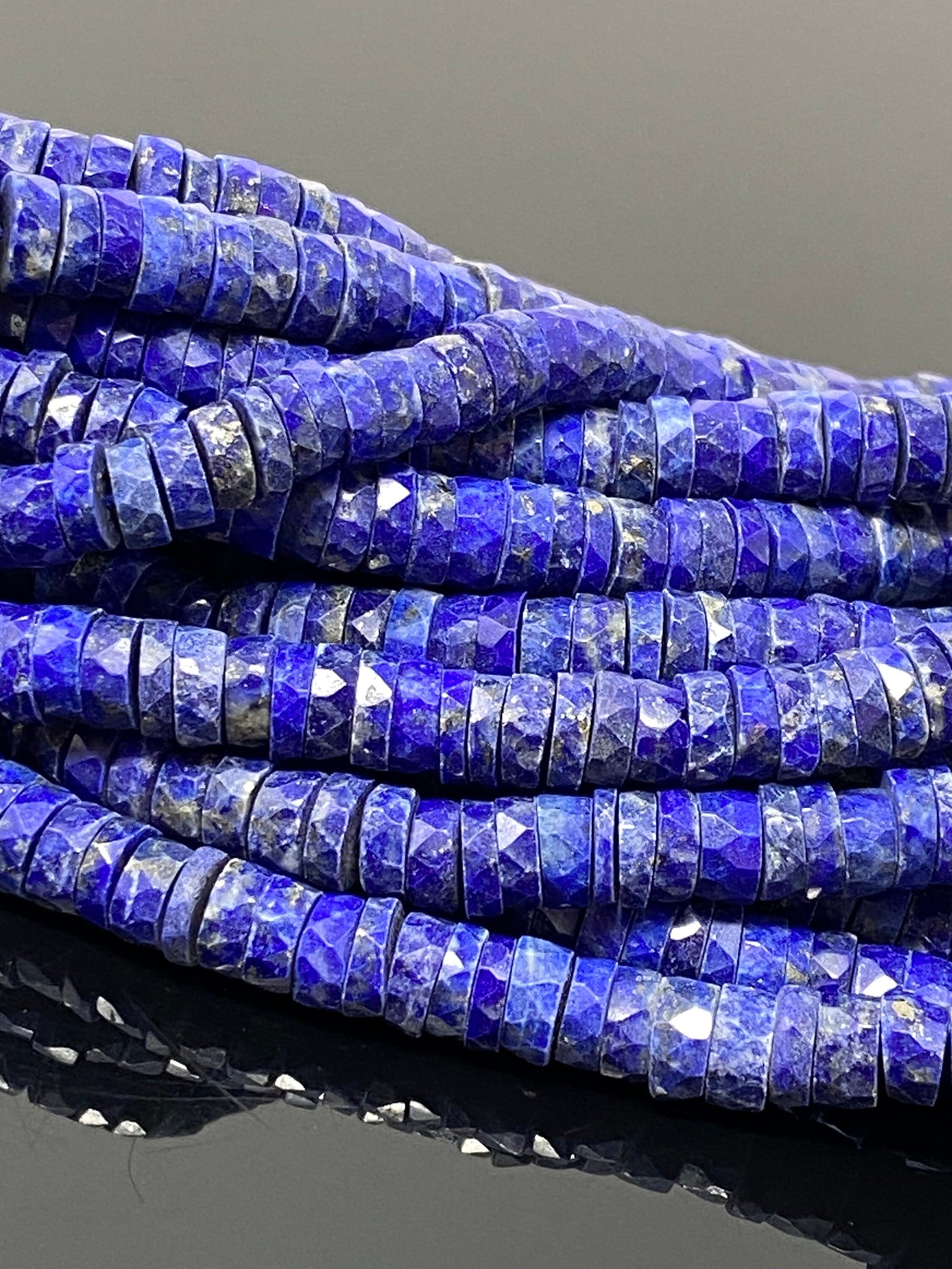 These Beautiful AAA Grade Faceted Lapis Lazuli Heishi Beads are excellent for making Bracelets, Necklaces, earrings, Anklets or any other creative Jewelry Design.