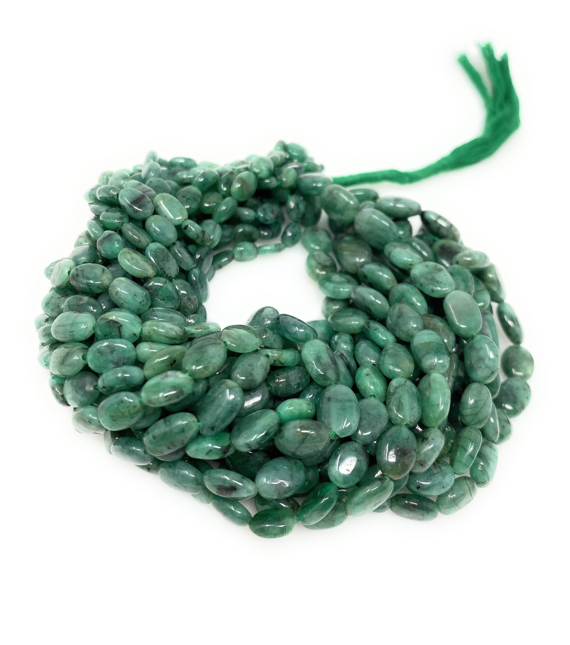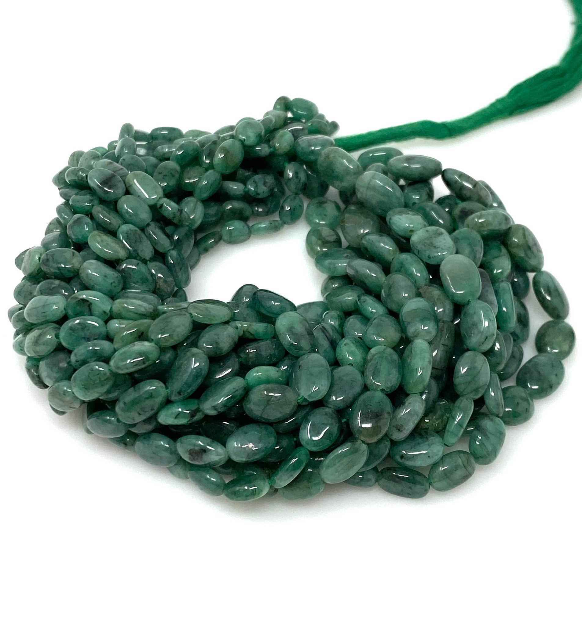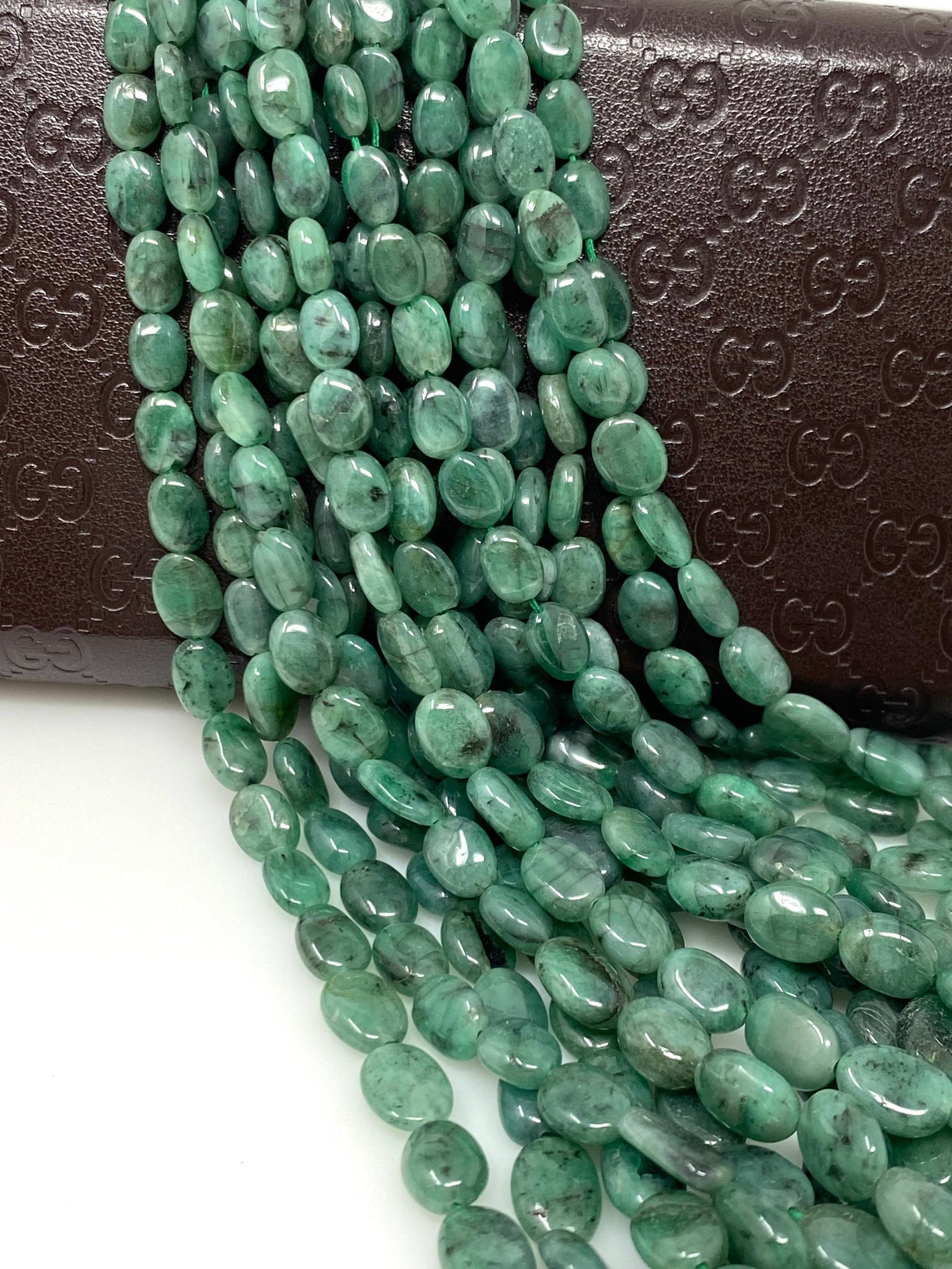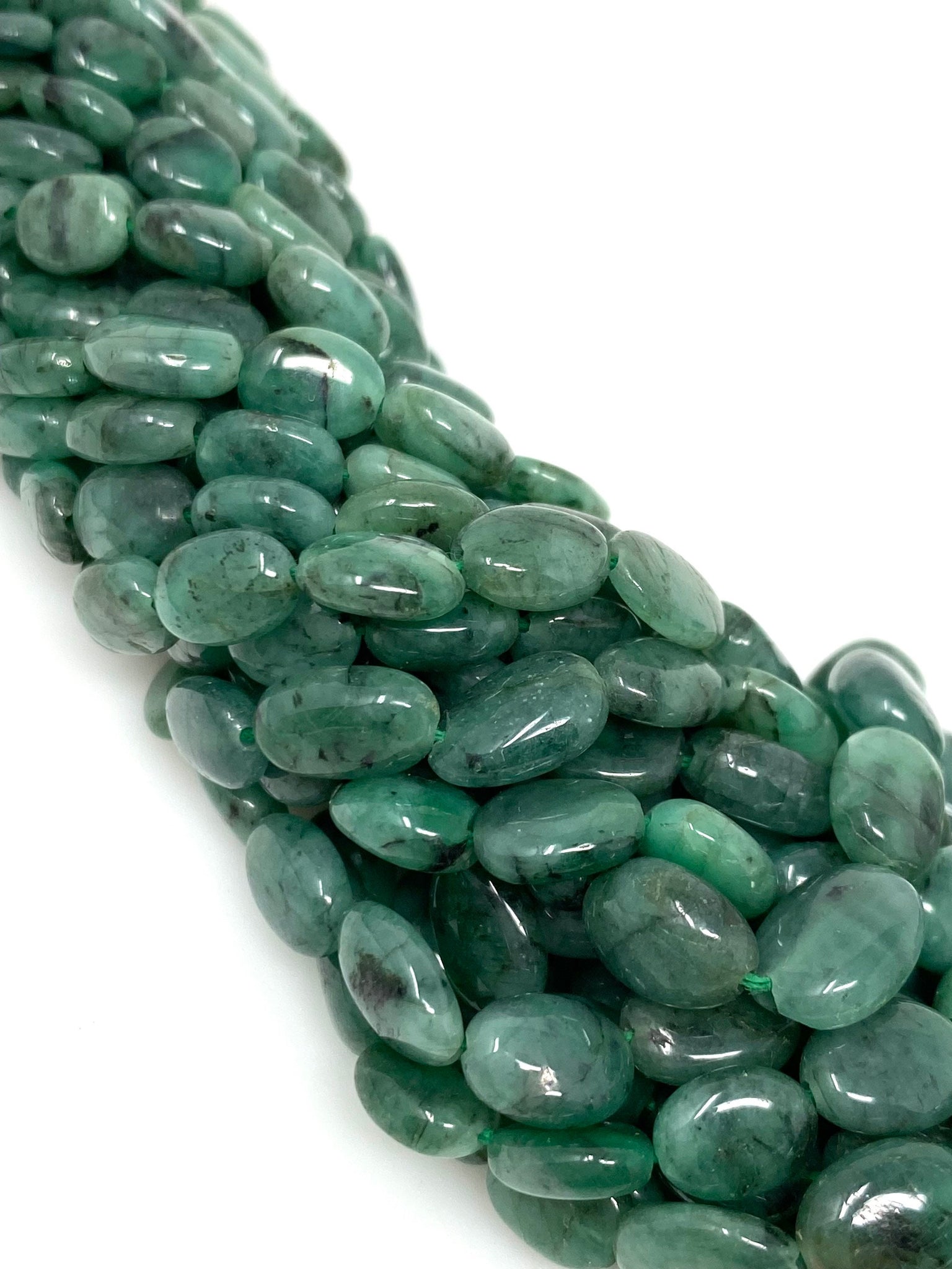 16" Natural Emerald Gemstone Beads, Smooth Emerald Oval Beads for Jewelry Making, May Birthstone Jewelry Supplies