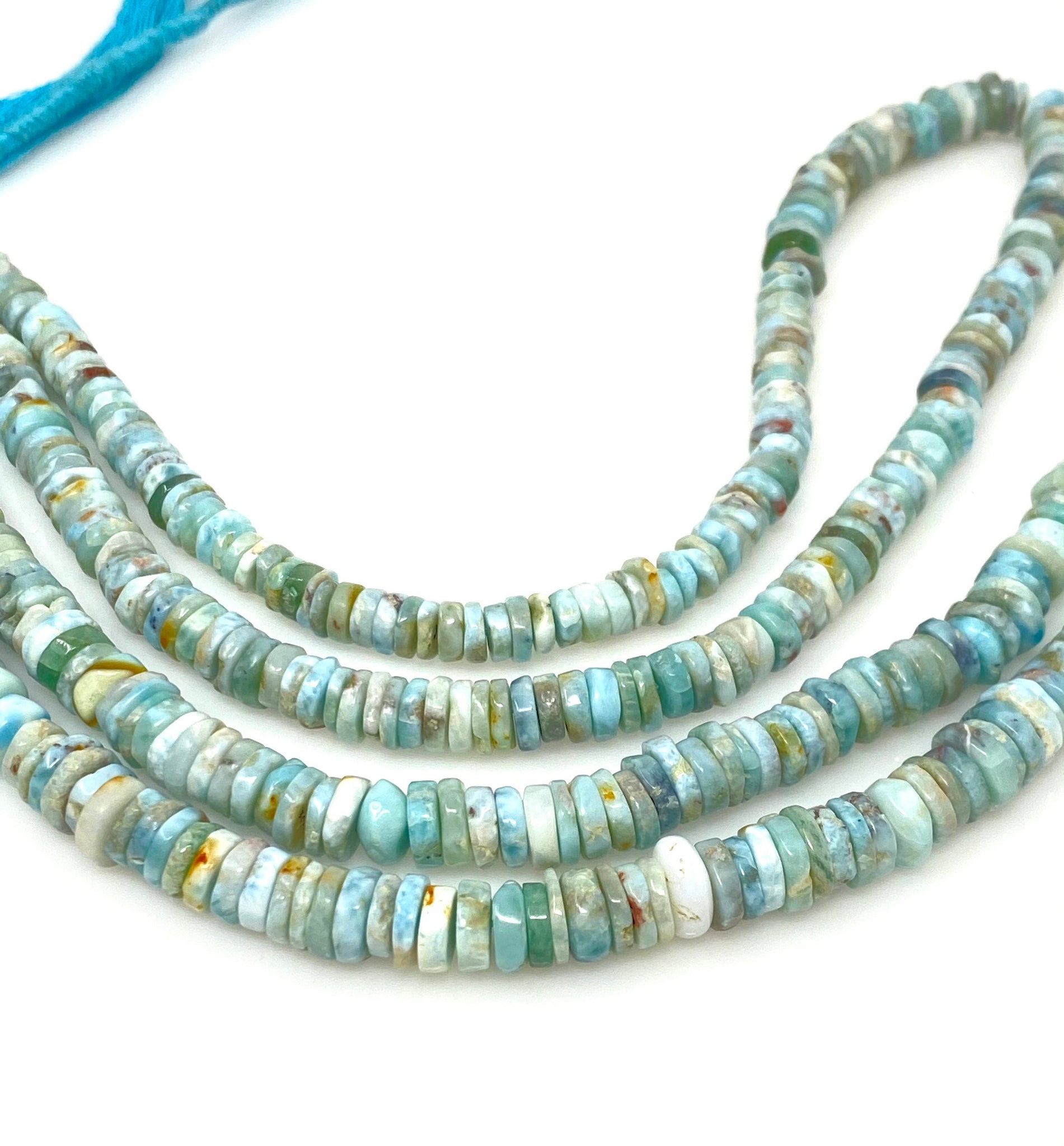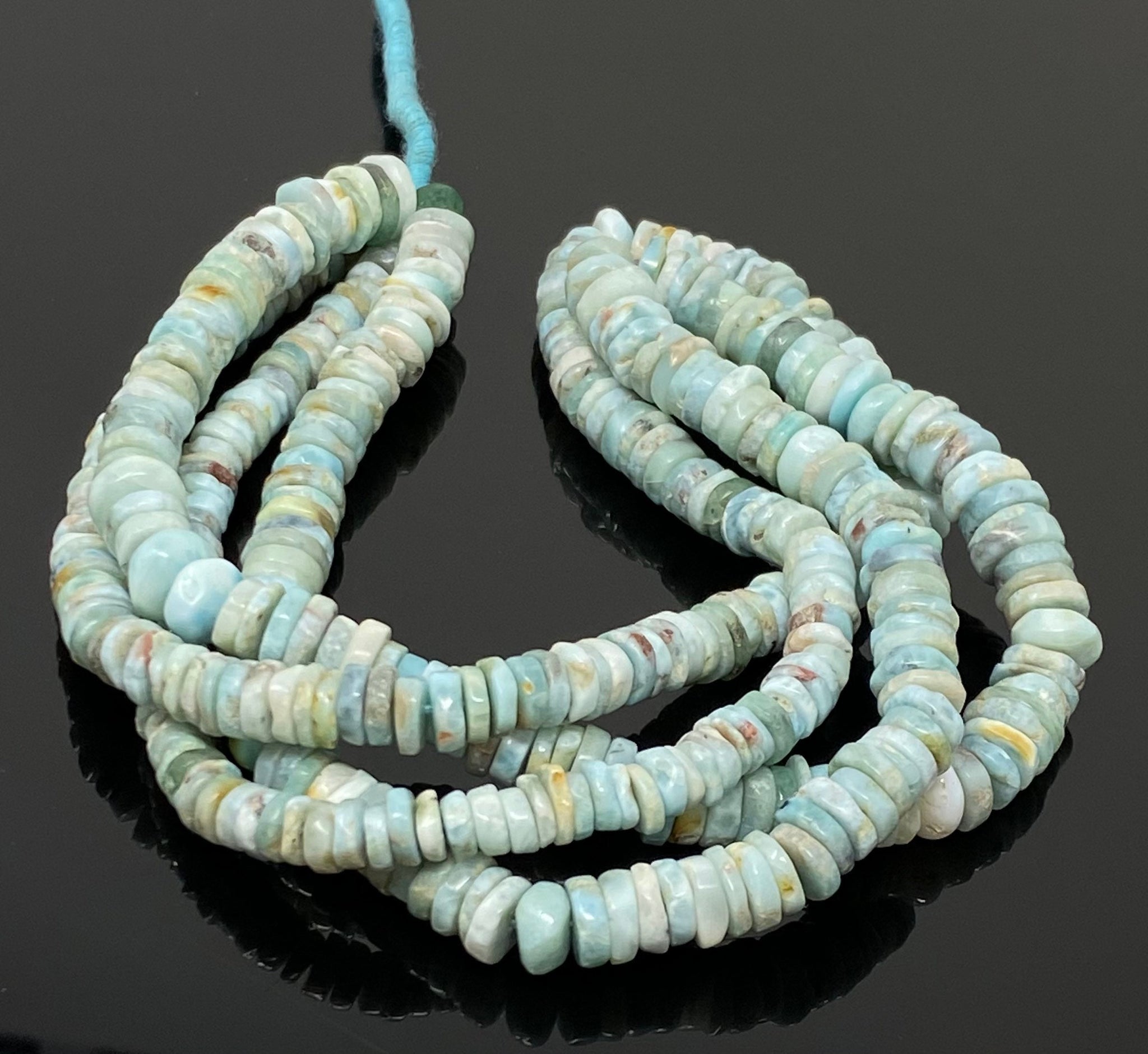 16” Natural Larimar Heishi Beads, Larimar Gemstone Beads, Bulk Wholesale Beads, Tyre Beads AA Grade