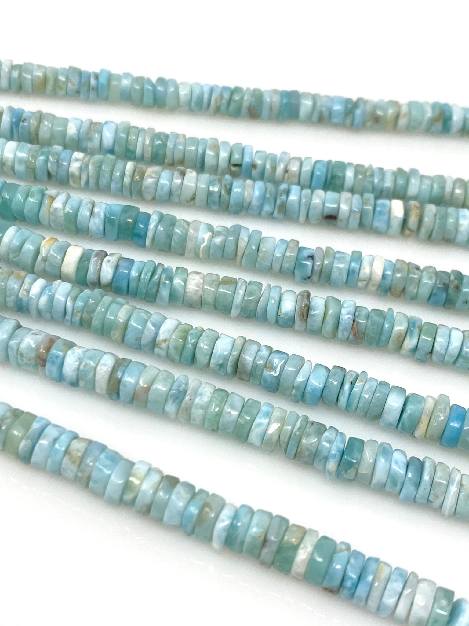 16” Natural Larimar Heishi Beads, Larimar Gemstone Beads, Bulk Wholesale Beads, Tyre Beads AAA Grade
