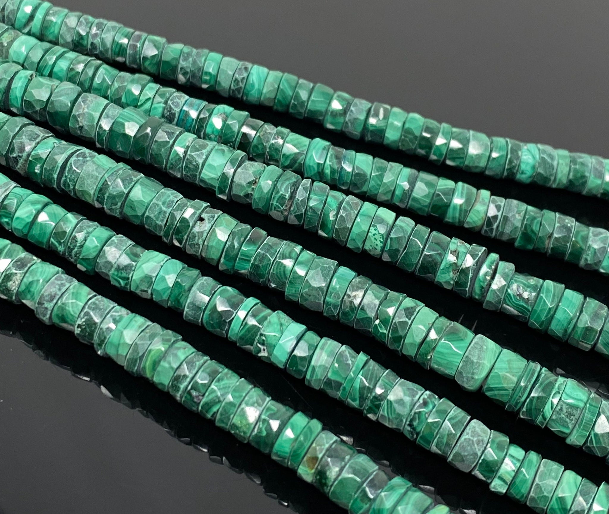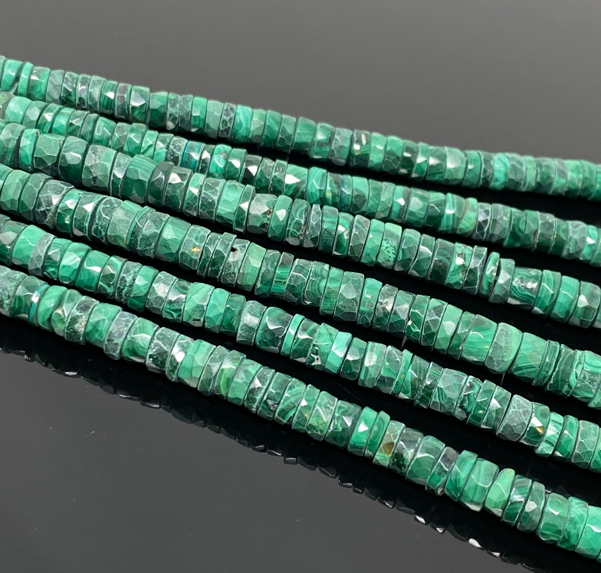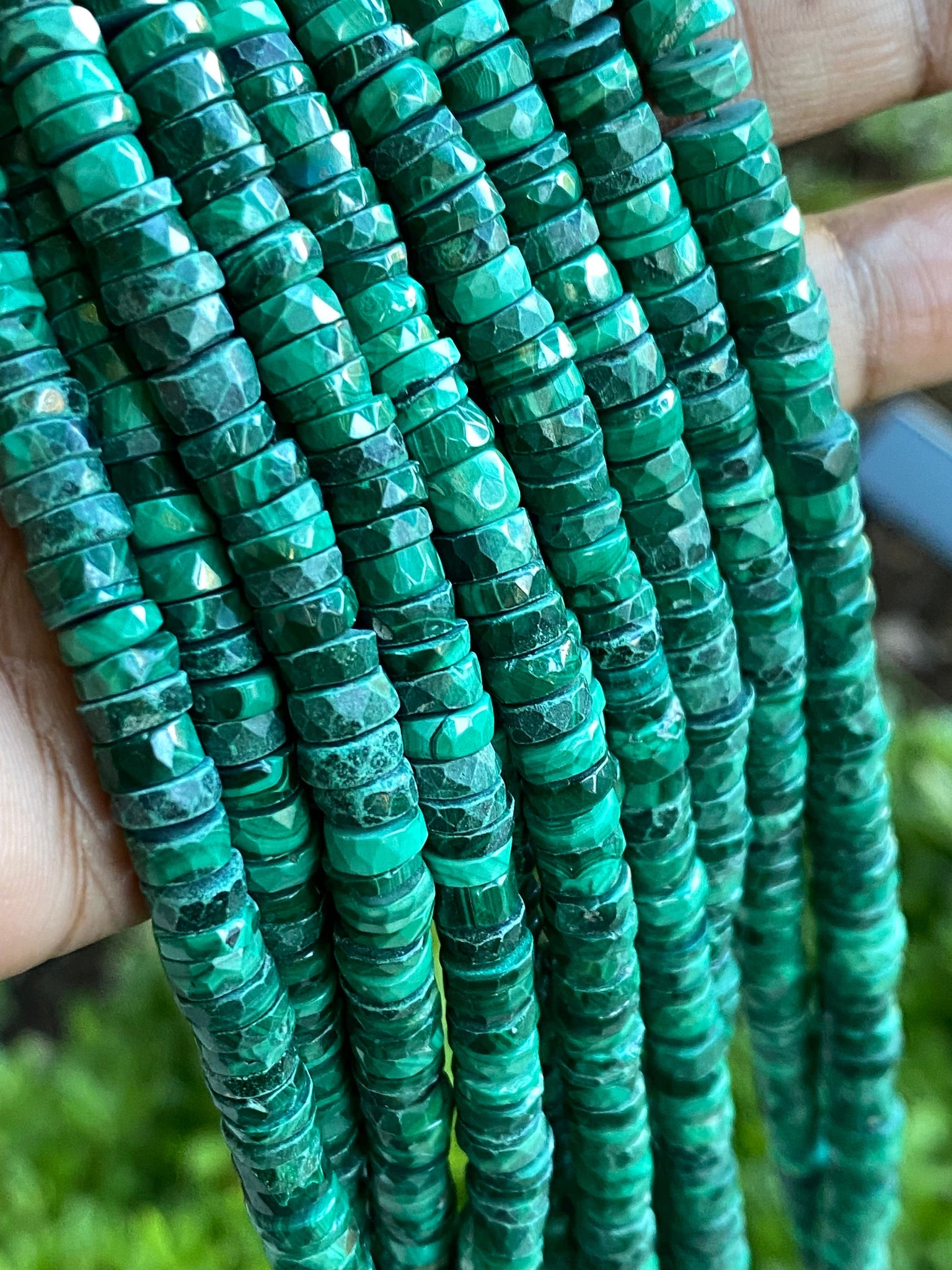 These Beautiful Natural Malachite Faceted Heishi Beads are an excellent choice for making exclusive pieces of Jewelry.