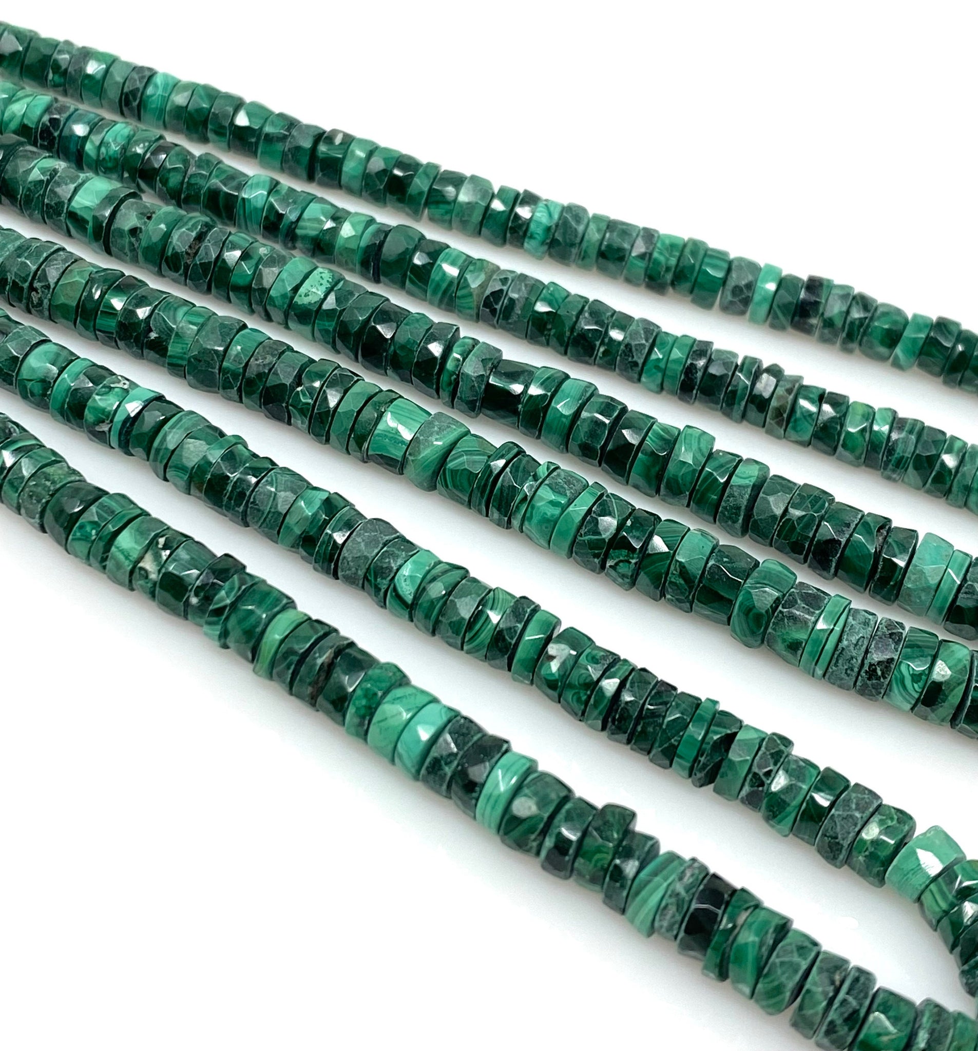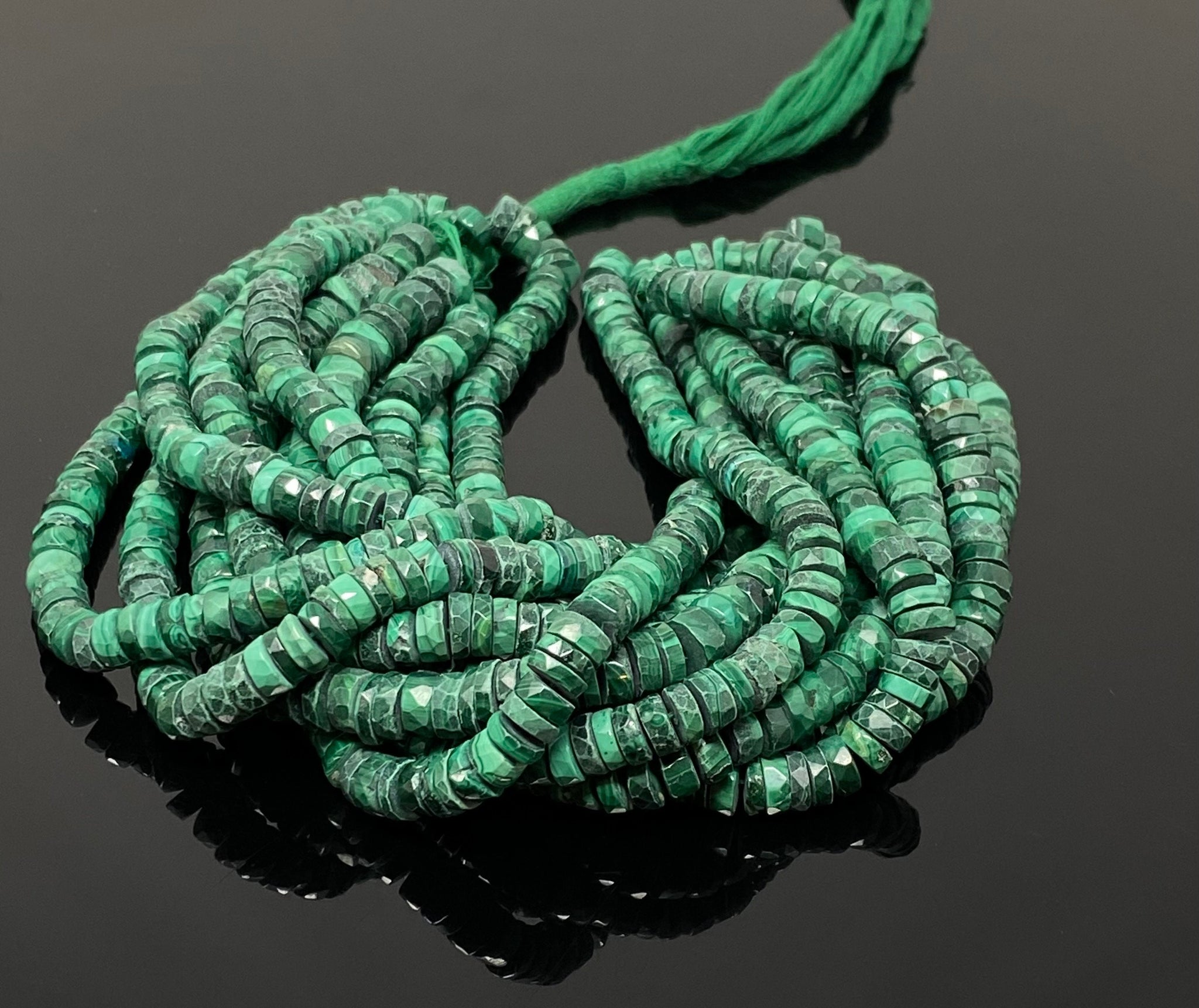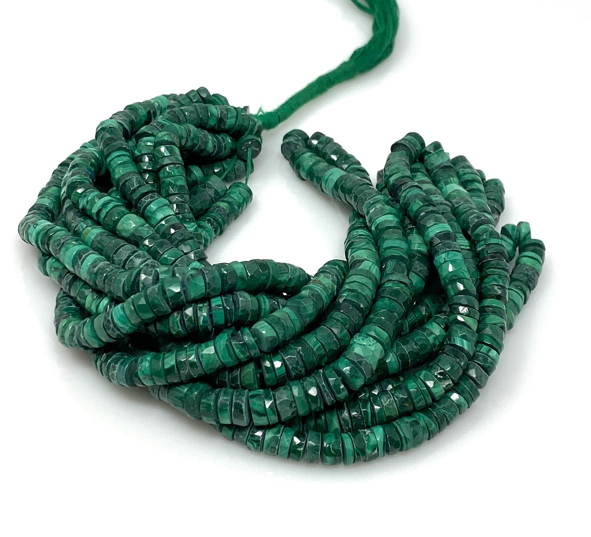 These Beautiful Natural Malachite Faceted Heishi Beads are an excellent choice for making exclusive pieces of Jewelry.