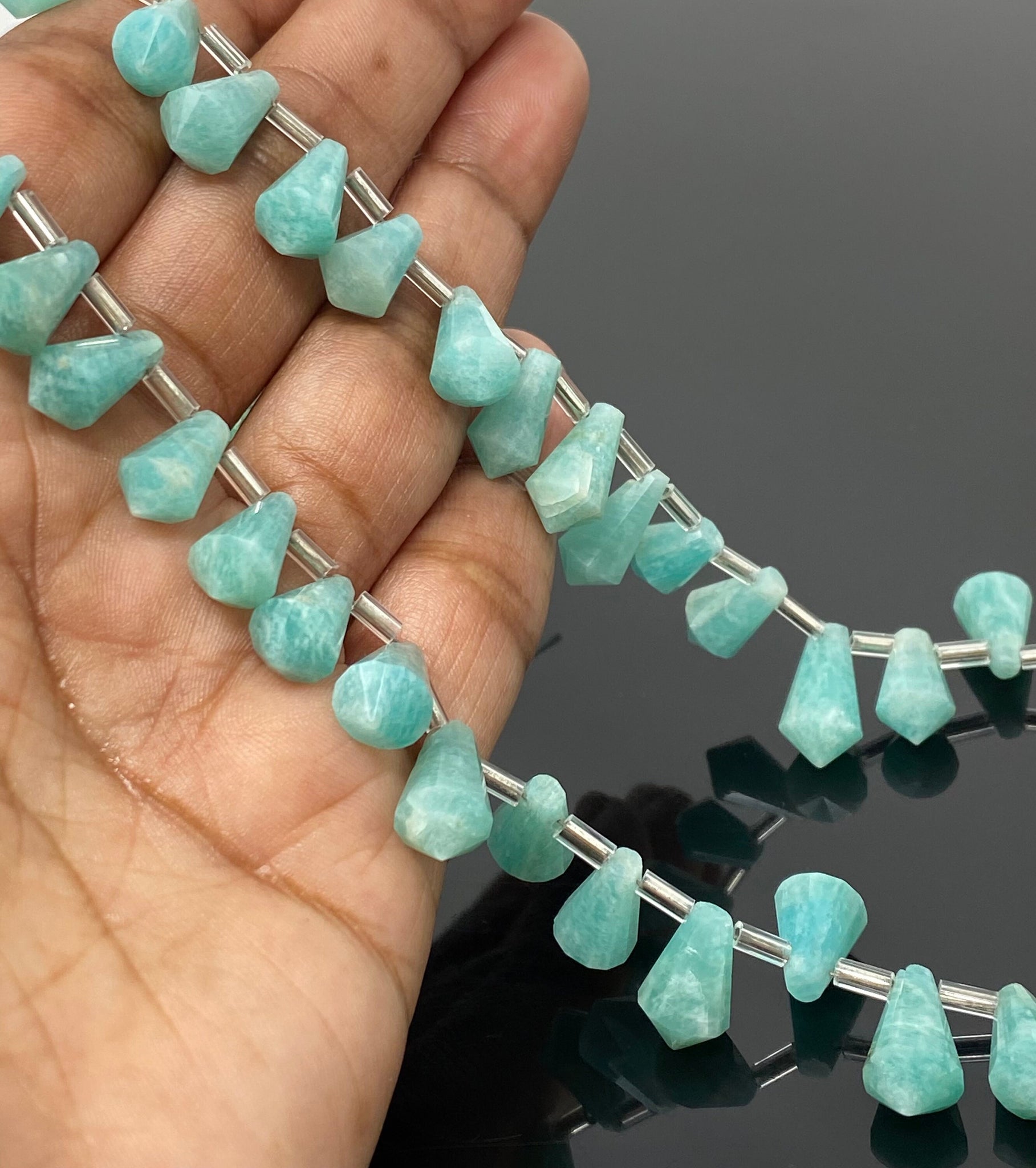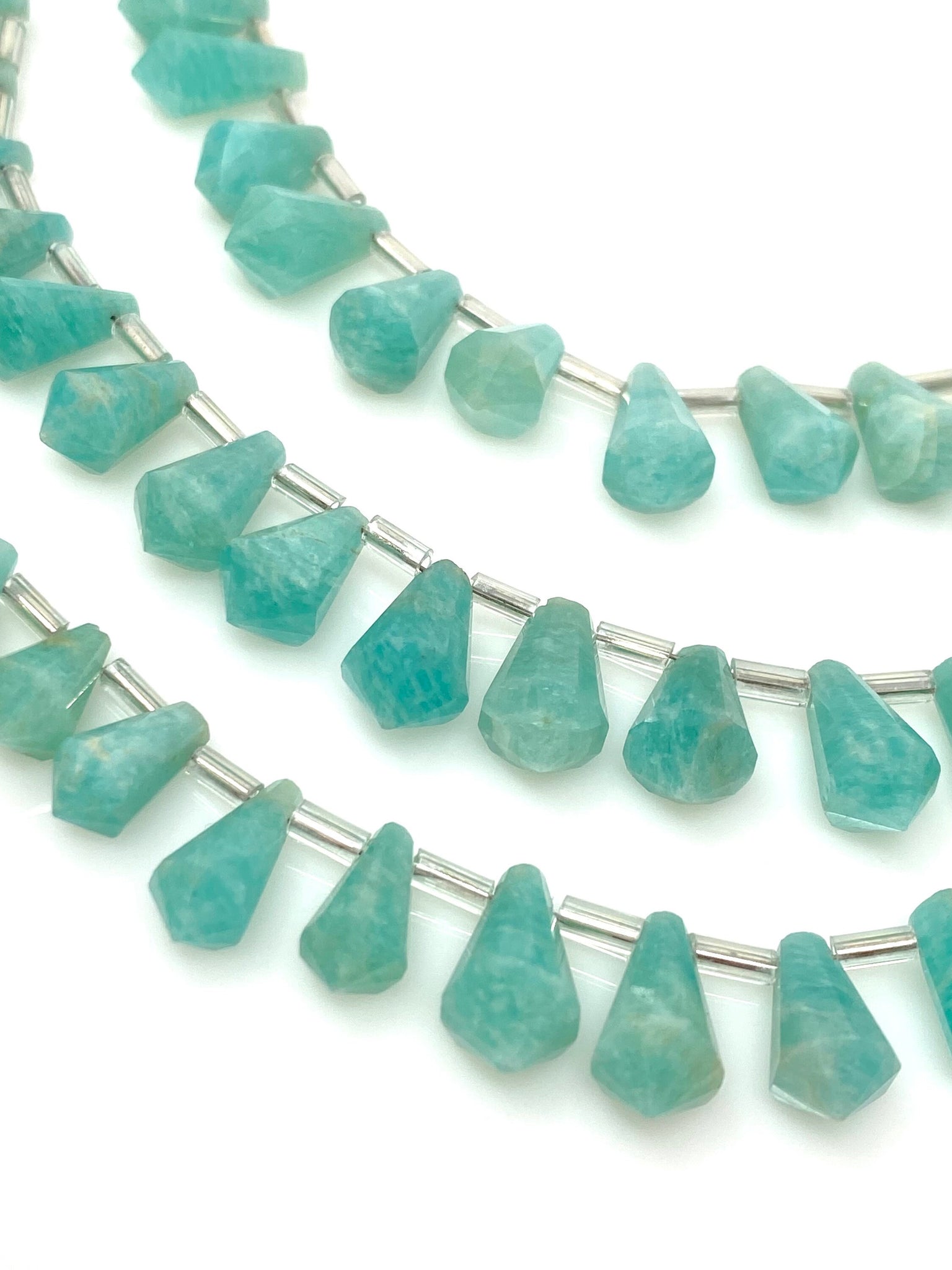 19 pcs Amazonite Gemstone Fancy Drop Faceted Beads, Jewelry Supplies forJewelry Making, Wholesale Bulk Beads, 9x5mm - 14x8.5mm