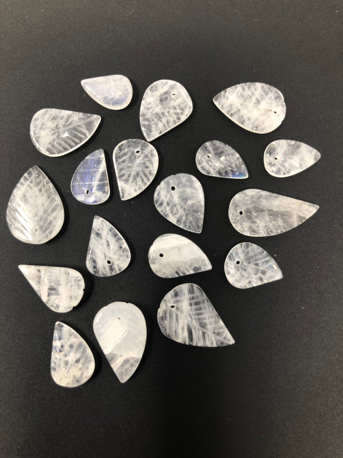 19 PIECES of Moonstone Carved Leaf Beads Top Front Drilled Jewelry Supplies for DIY Jewelry Making at Wholesale Price.