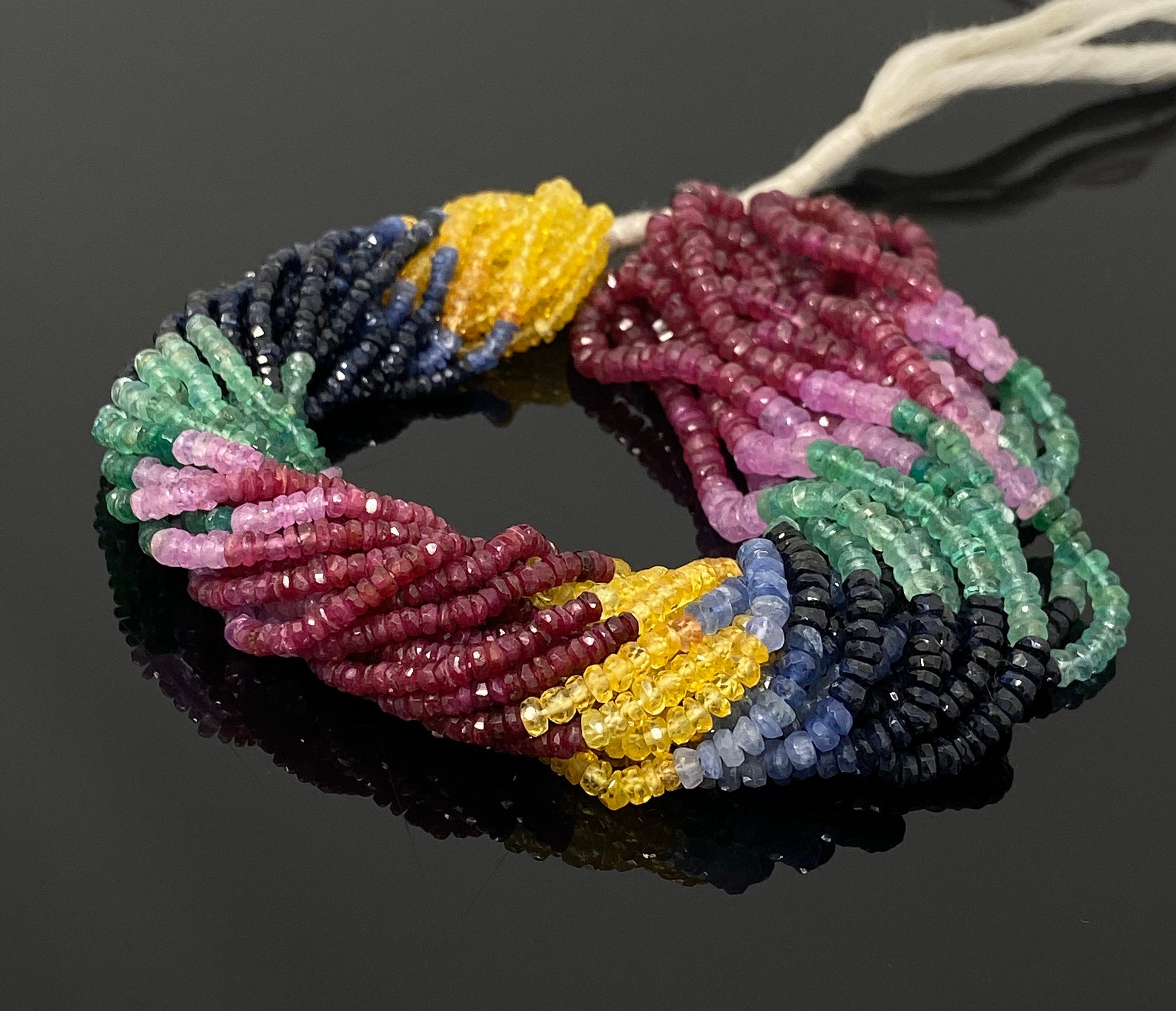 These Gorgeous Faceted Natural AAA+ Grade Multi Precious Sapphire, Ruby, Yellow Songea Sapphire and Emerald Gemstone Beads are an excellent choice for Stringing and making exclusive Bracelets or Necklaces .