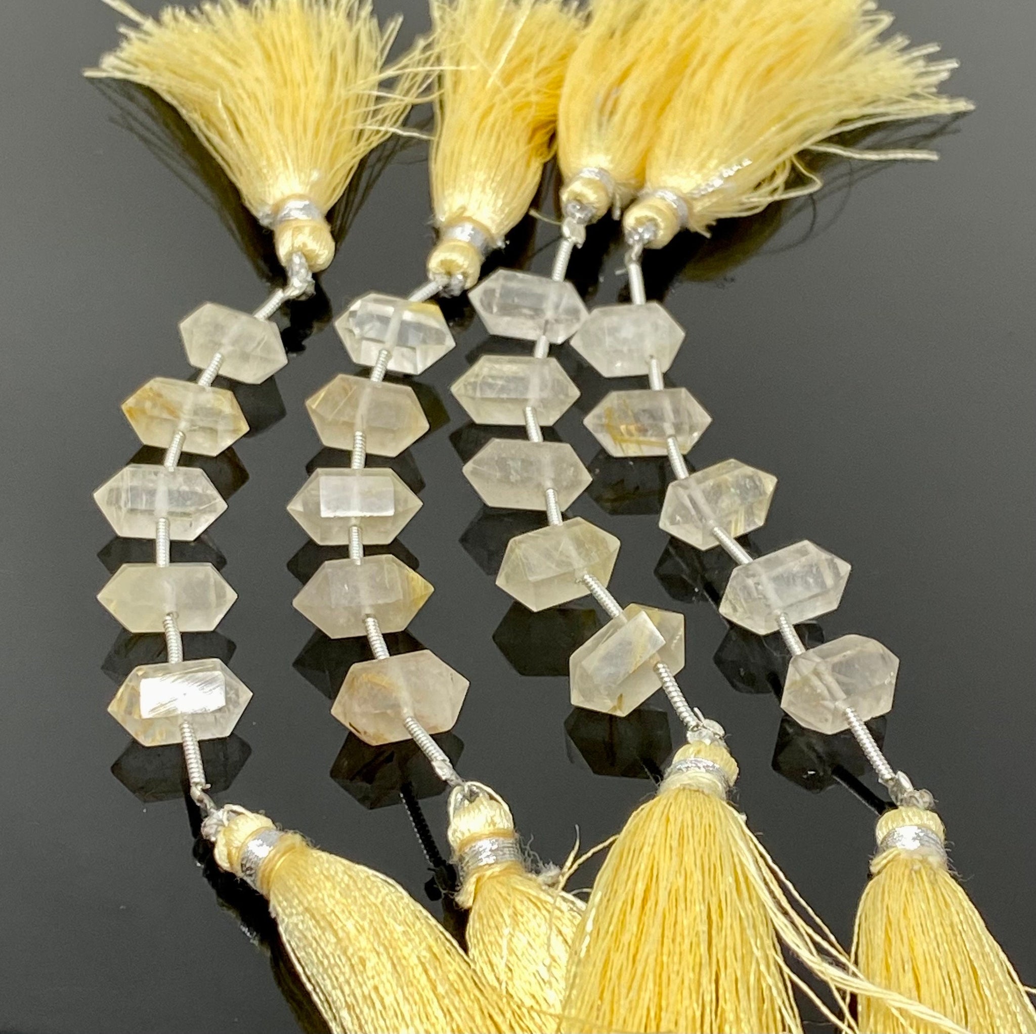 These Beautiful AAA Grade Double Terminated Yellow Rutile Quartz Pointed Beads are excellent choice for Wire wrapping and making exclusive pieces of jewelry.