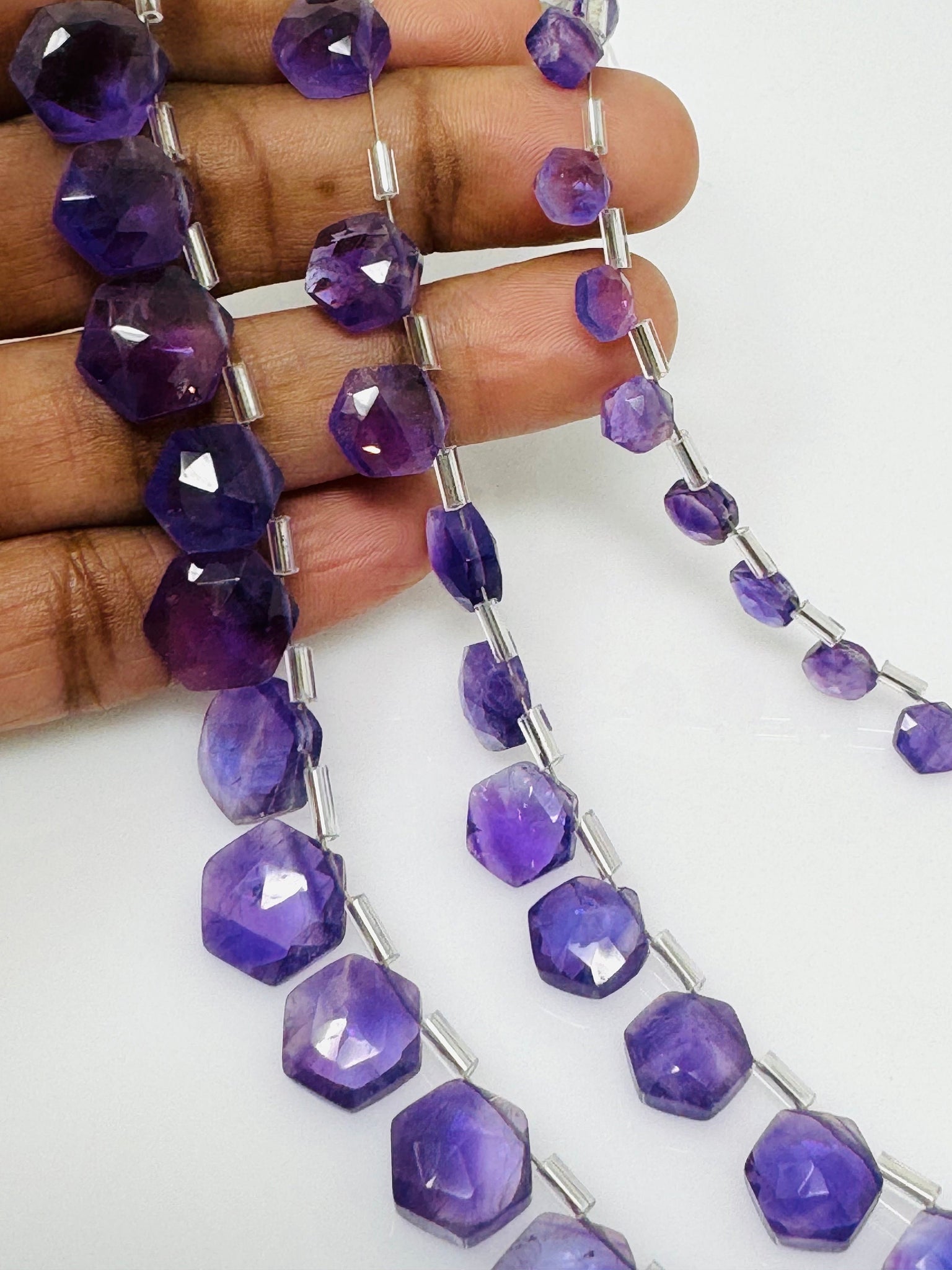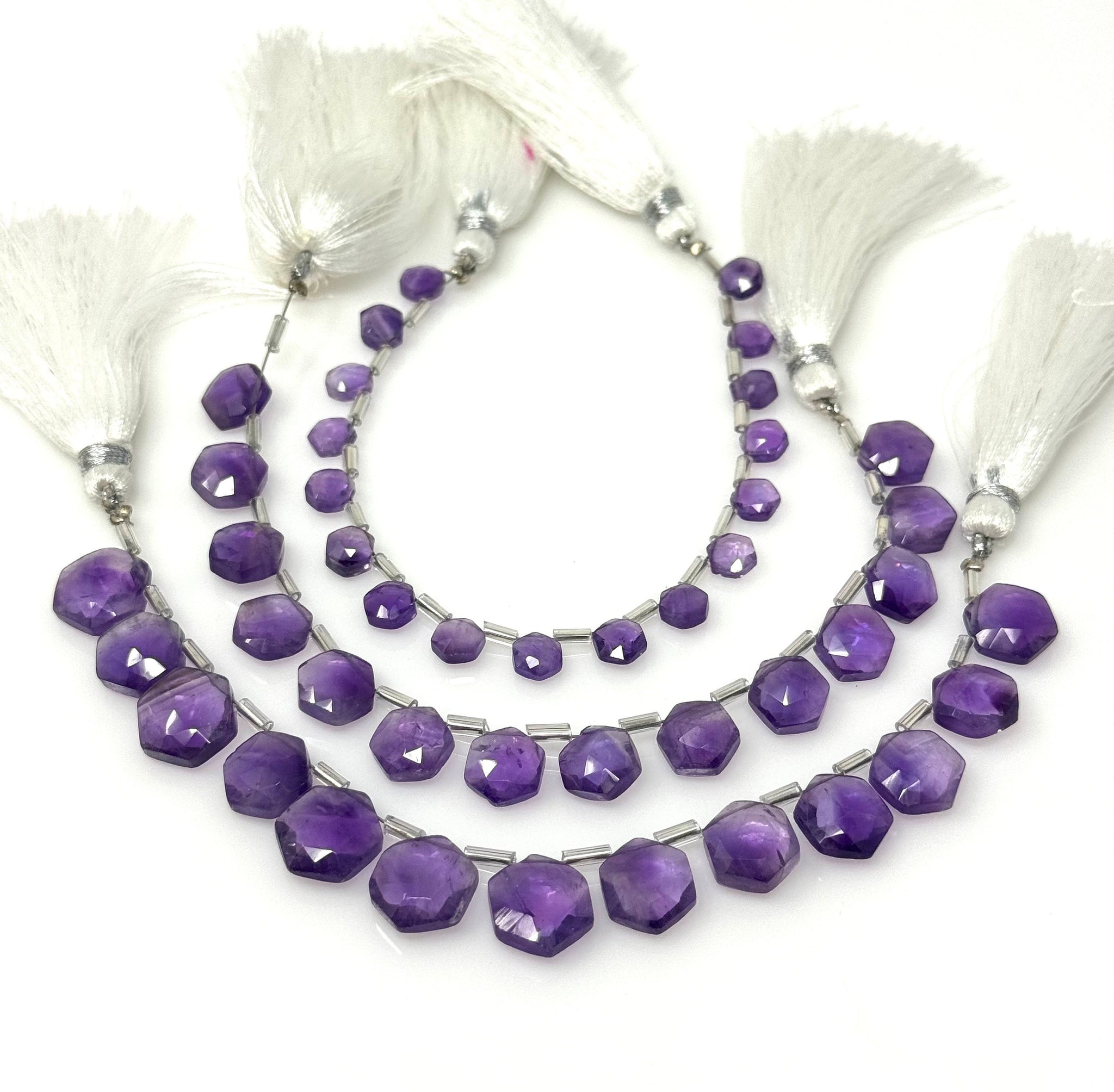 6” Amethsyt Gemstone Beads, African Amethsyt Faceted Hexagon Shape Briolette Beads for Jewelry Making