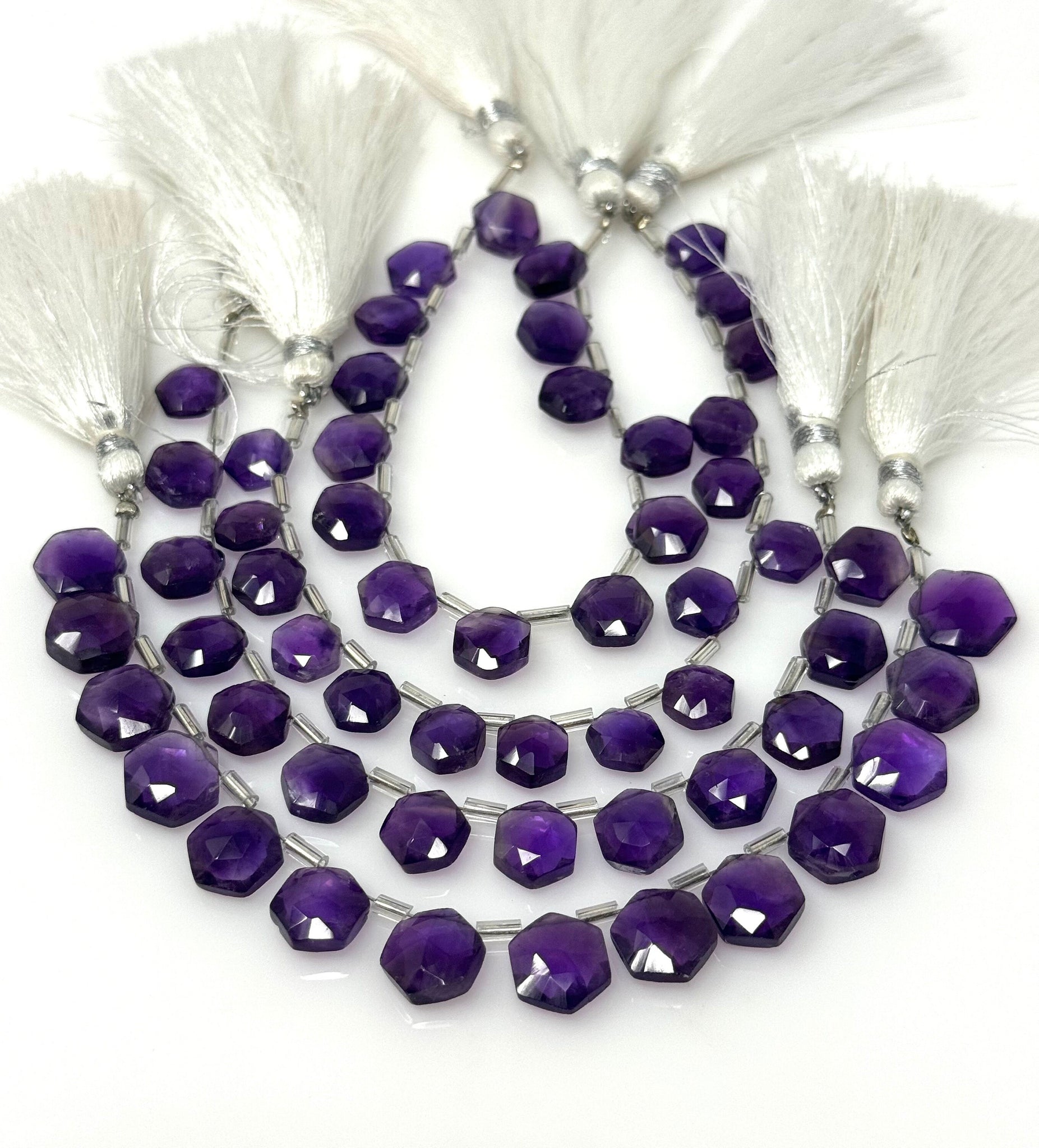 6” Strand African Amethsyt Gemstone Beads, Amethsyt Faceted Hexagon Shape Briolette Beads forJewelry Making