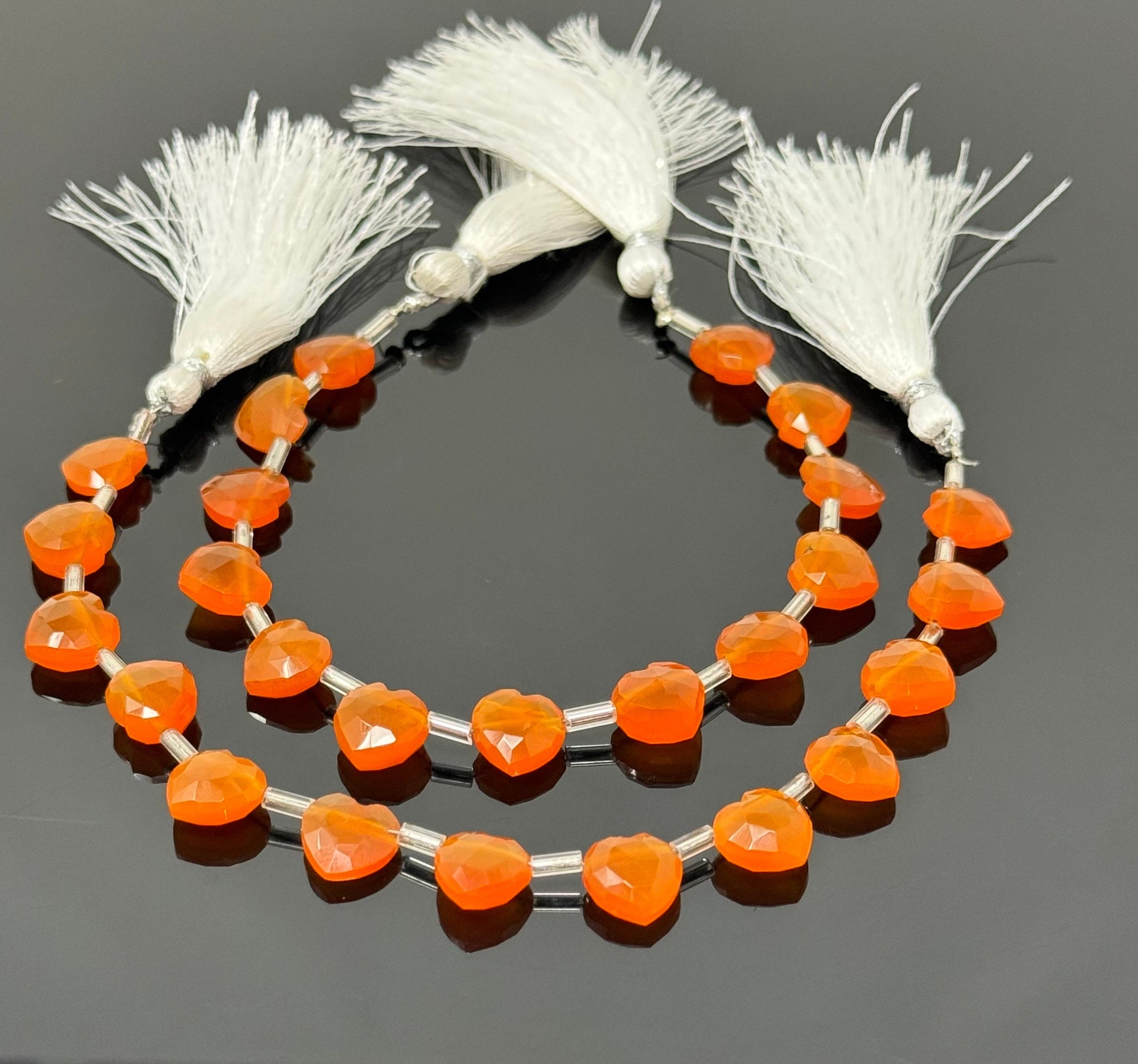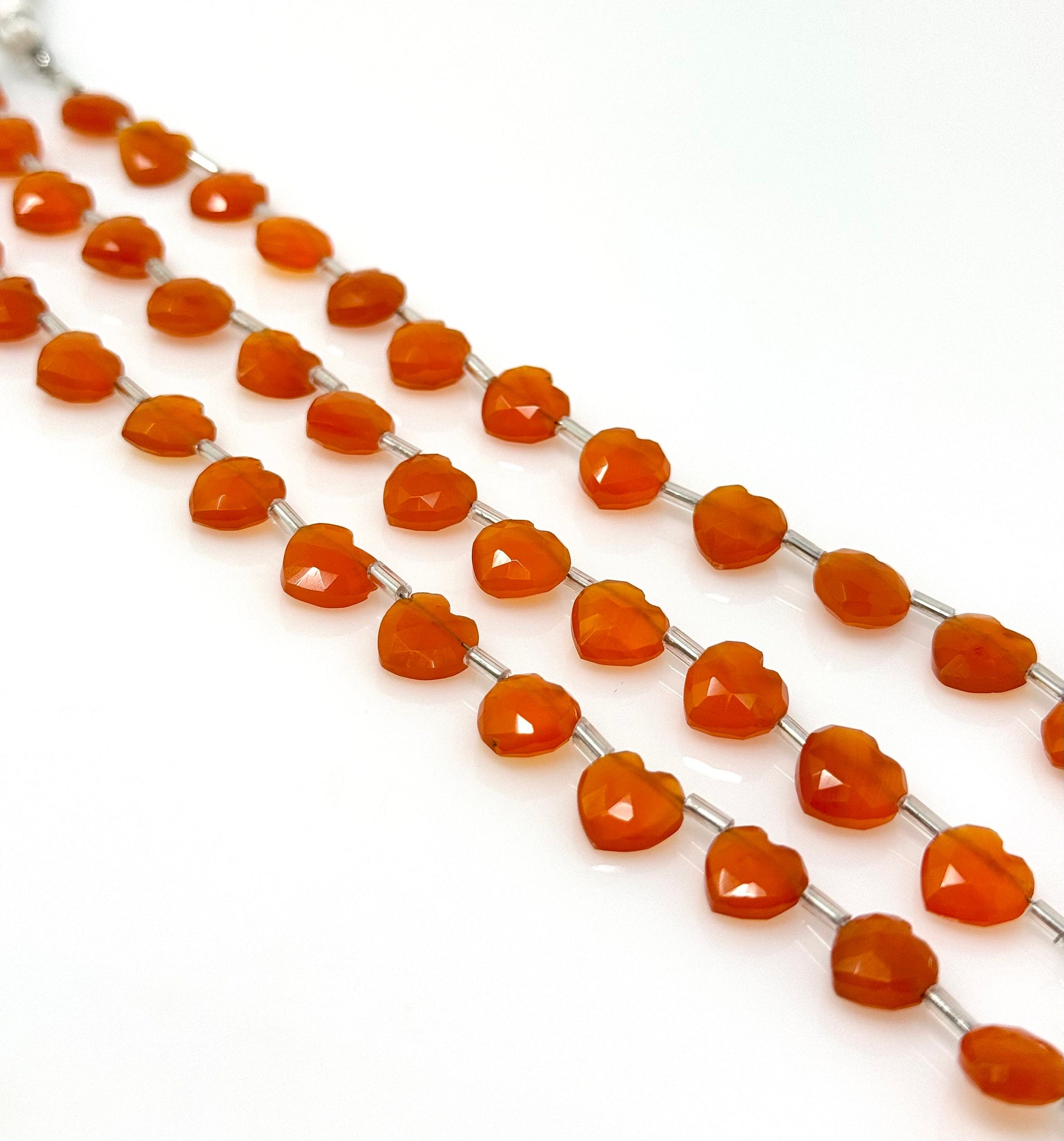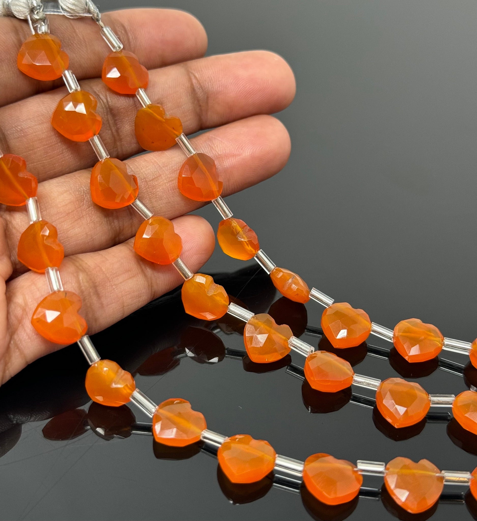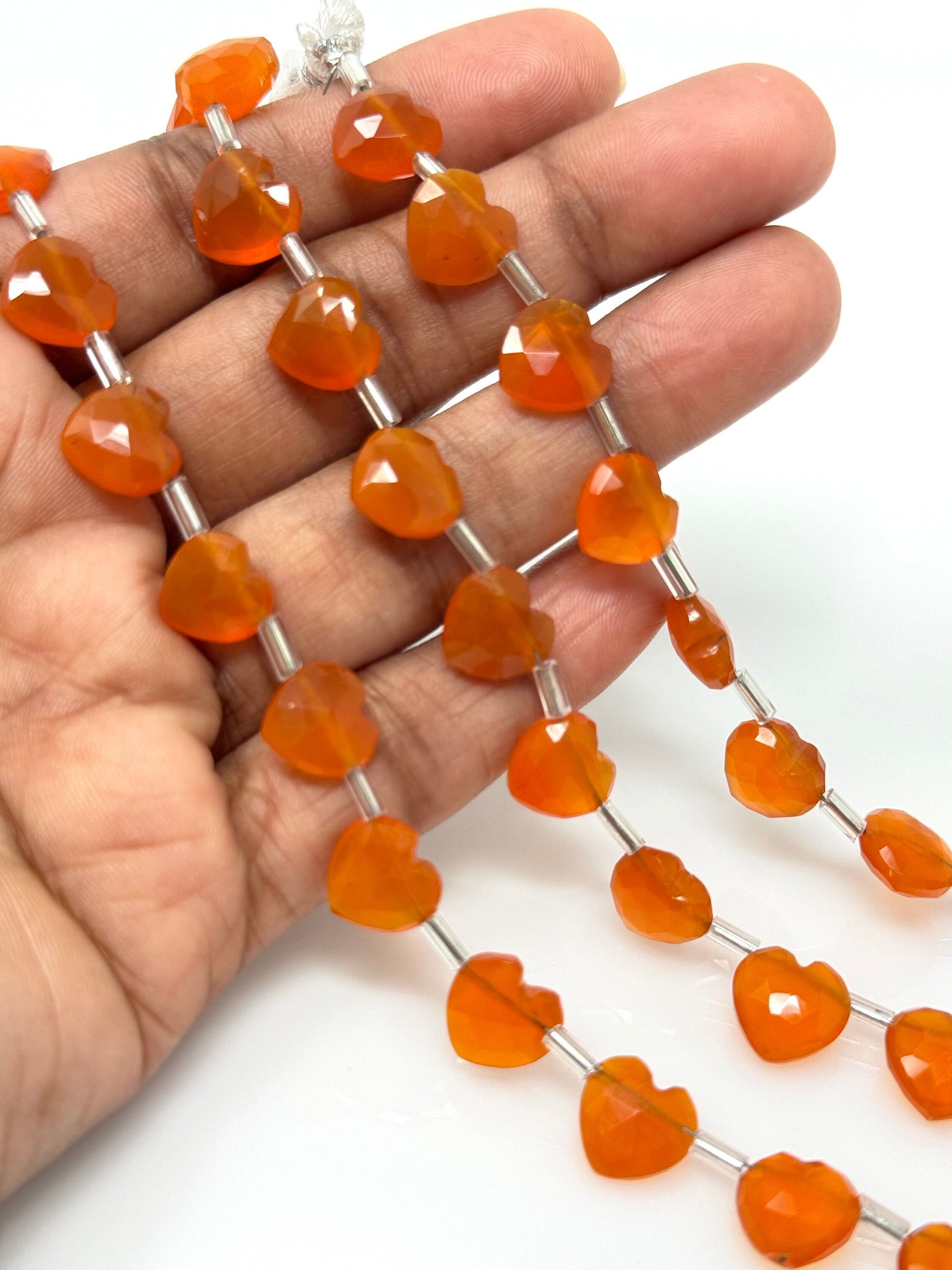 7” Carnelian Gemstone Beads, Carnelian Faceted Heart Shape Beads, Bulk Wholesale Beads, 9mm - 10mm