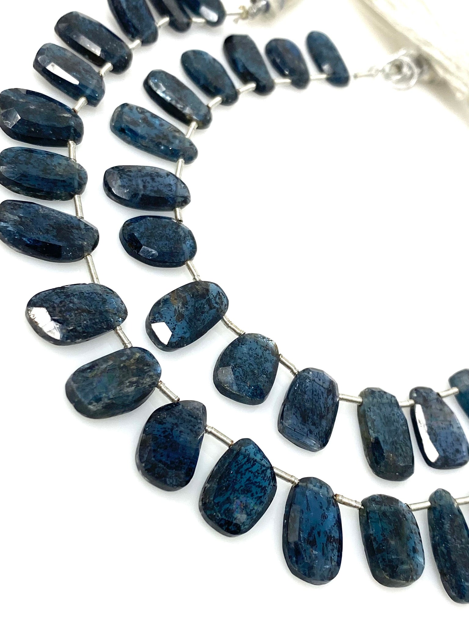 7” Rare Indigo Moss Kyanite Gemstone Beads, Natural Kyanite Fancy Shape Slice Beads, AAA Grade, 10x6mm - 16x9mm