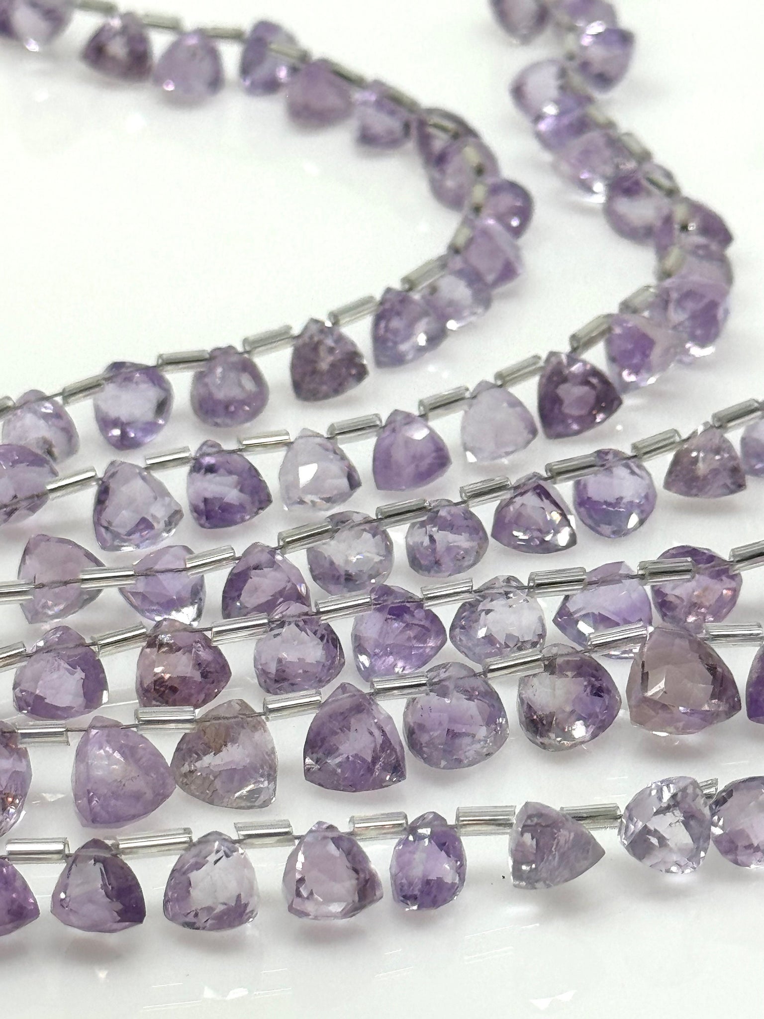 7.5" Amethyst Trillion Shape Briolette Gemstone Beads, Wholesale Bulk Beads, Light Purple/ Lilac Amethyst Fancy Shape Beads, 8mm - 9mm