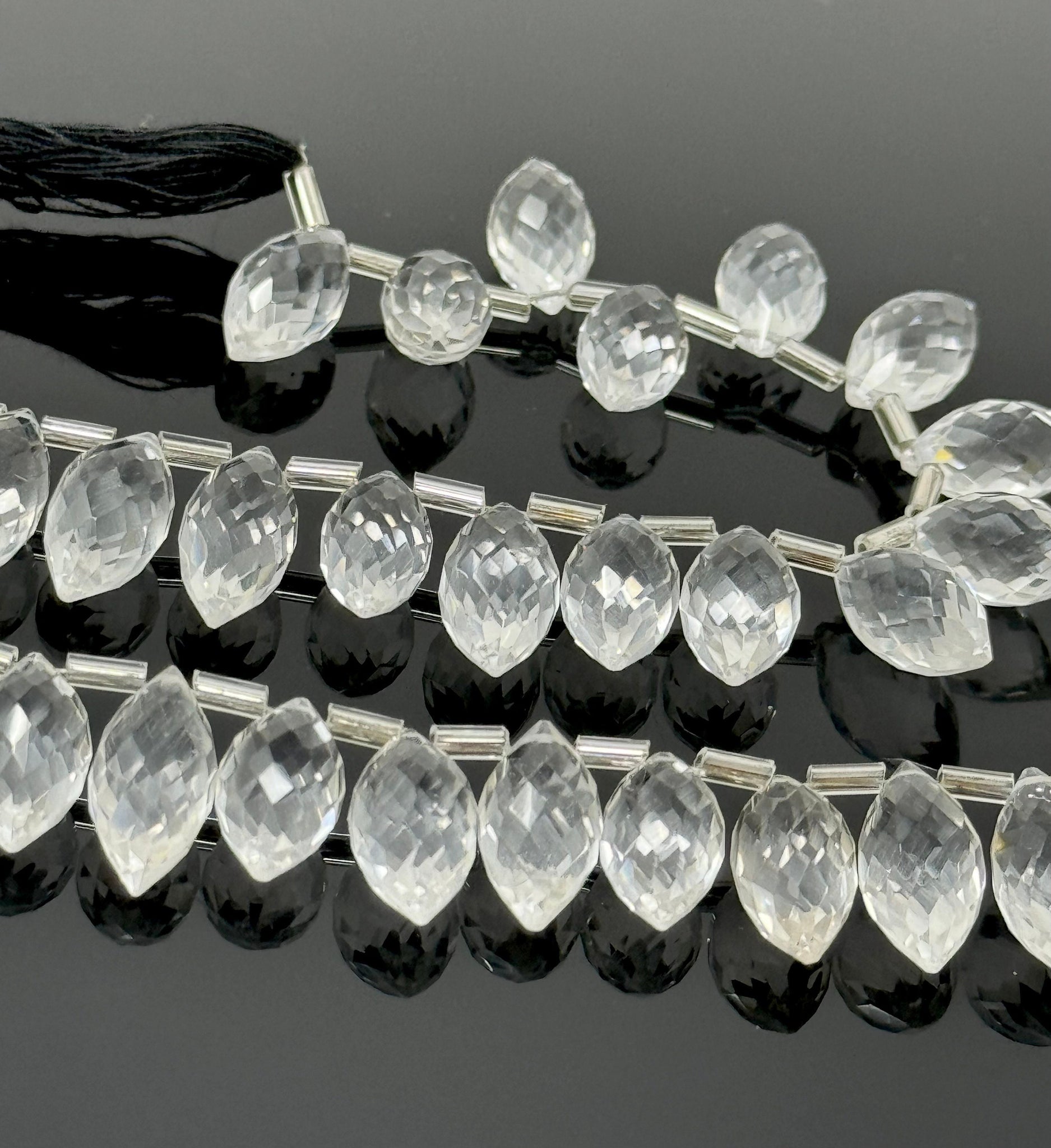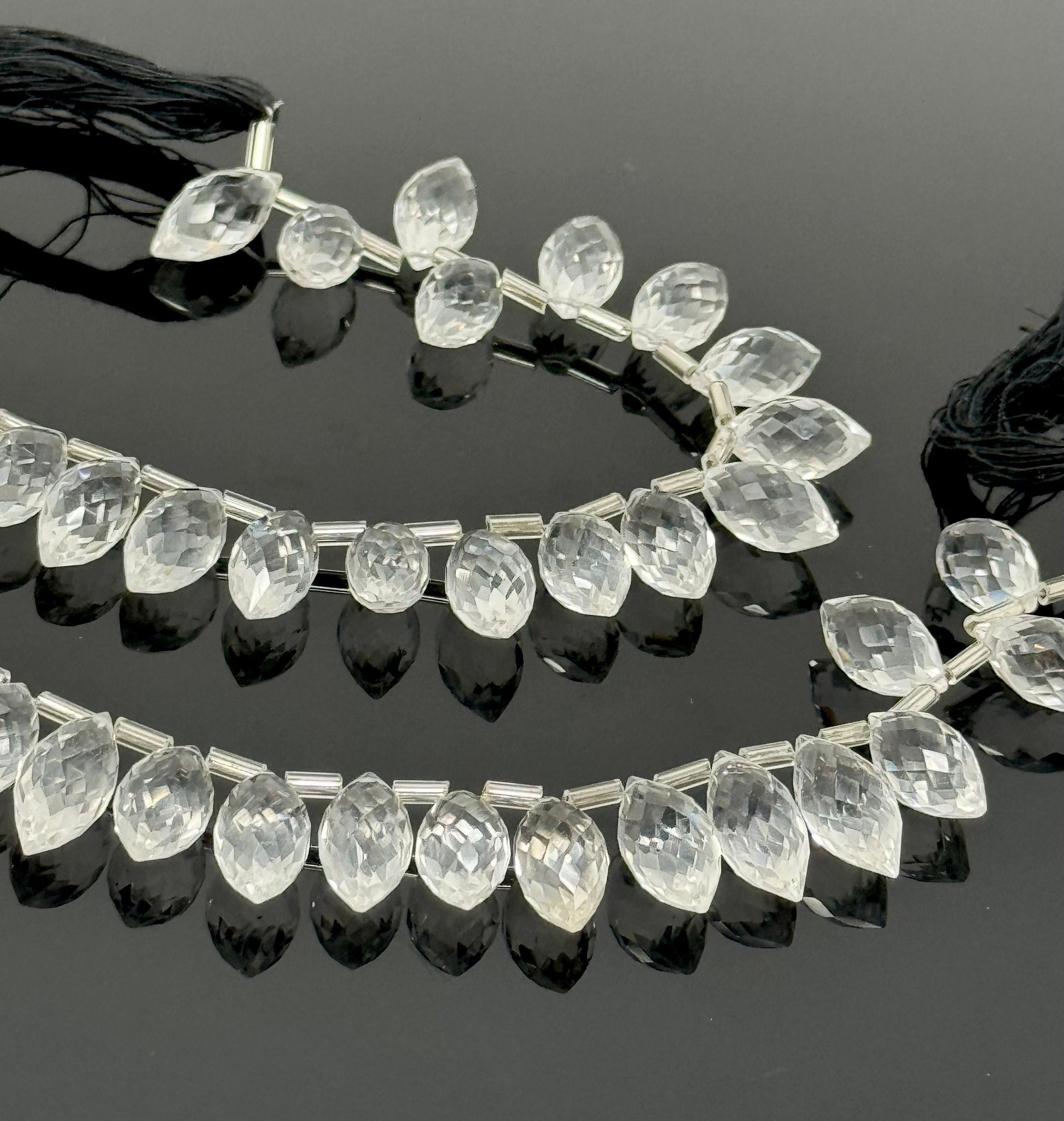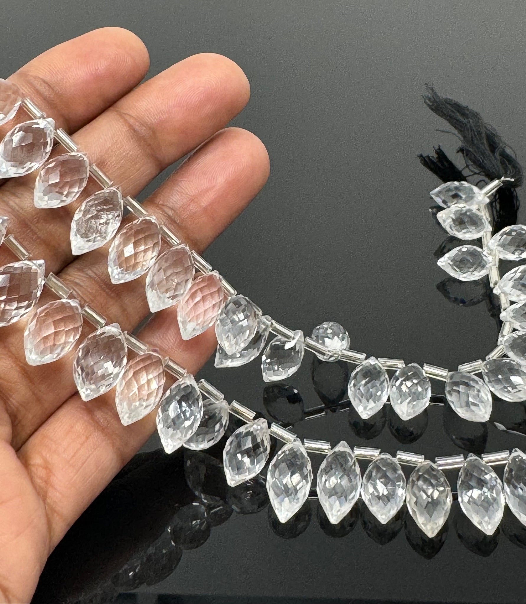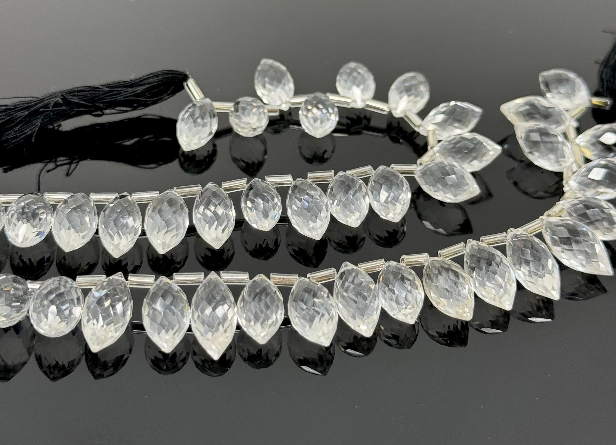 8" Clear Crystal Quartz Faceted Marquise Beads, Clear Crystal Quartz Gemstone Beads, 13x7mm - 15x8.5mm