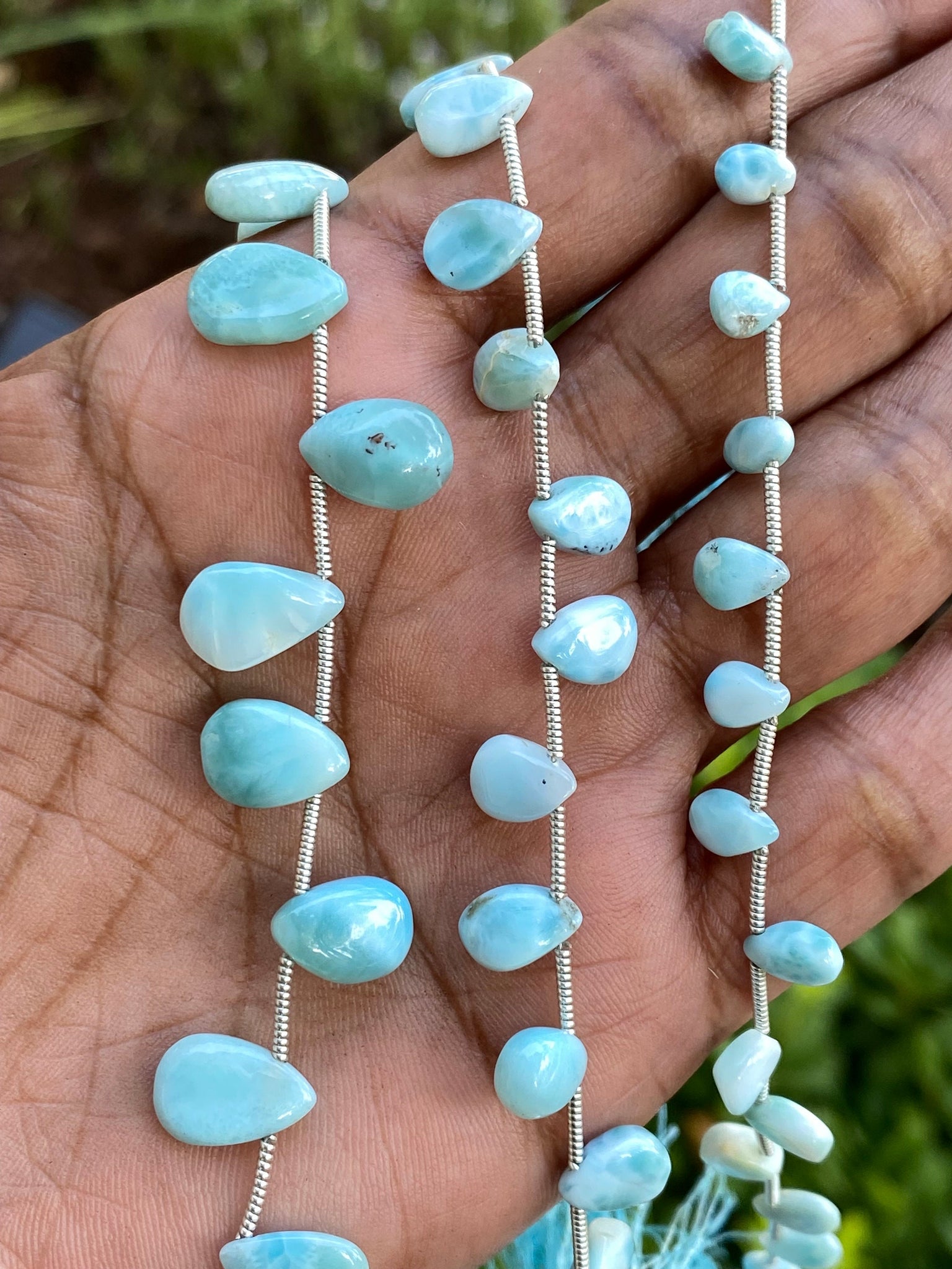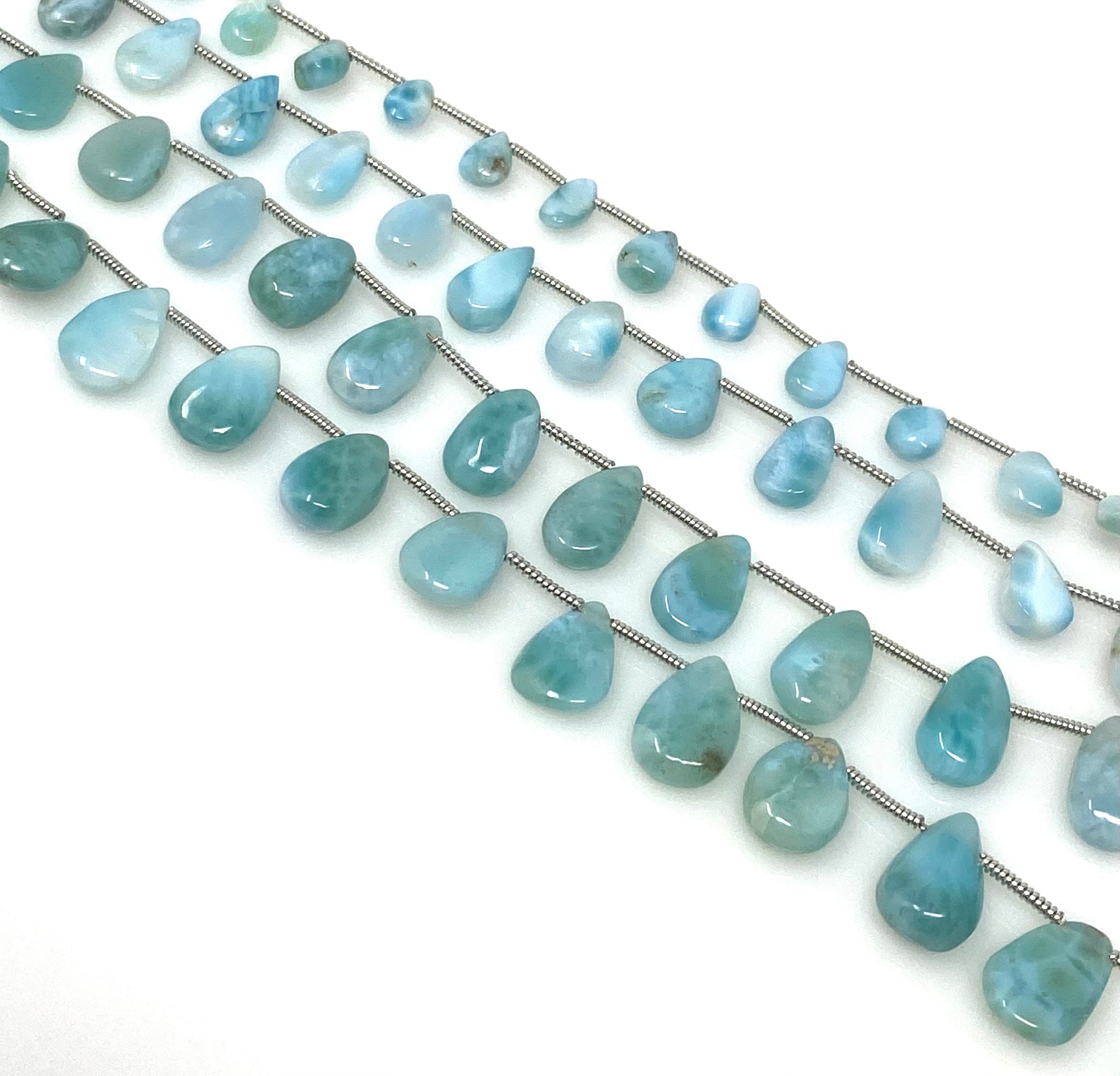 8” Natural Larimar Beads Gemstone Beads, Larimar Pear Shape Smooth Beads, Bulk Wholesale Beads for DIY Jewelry Making