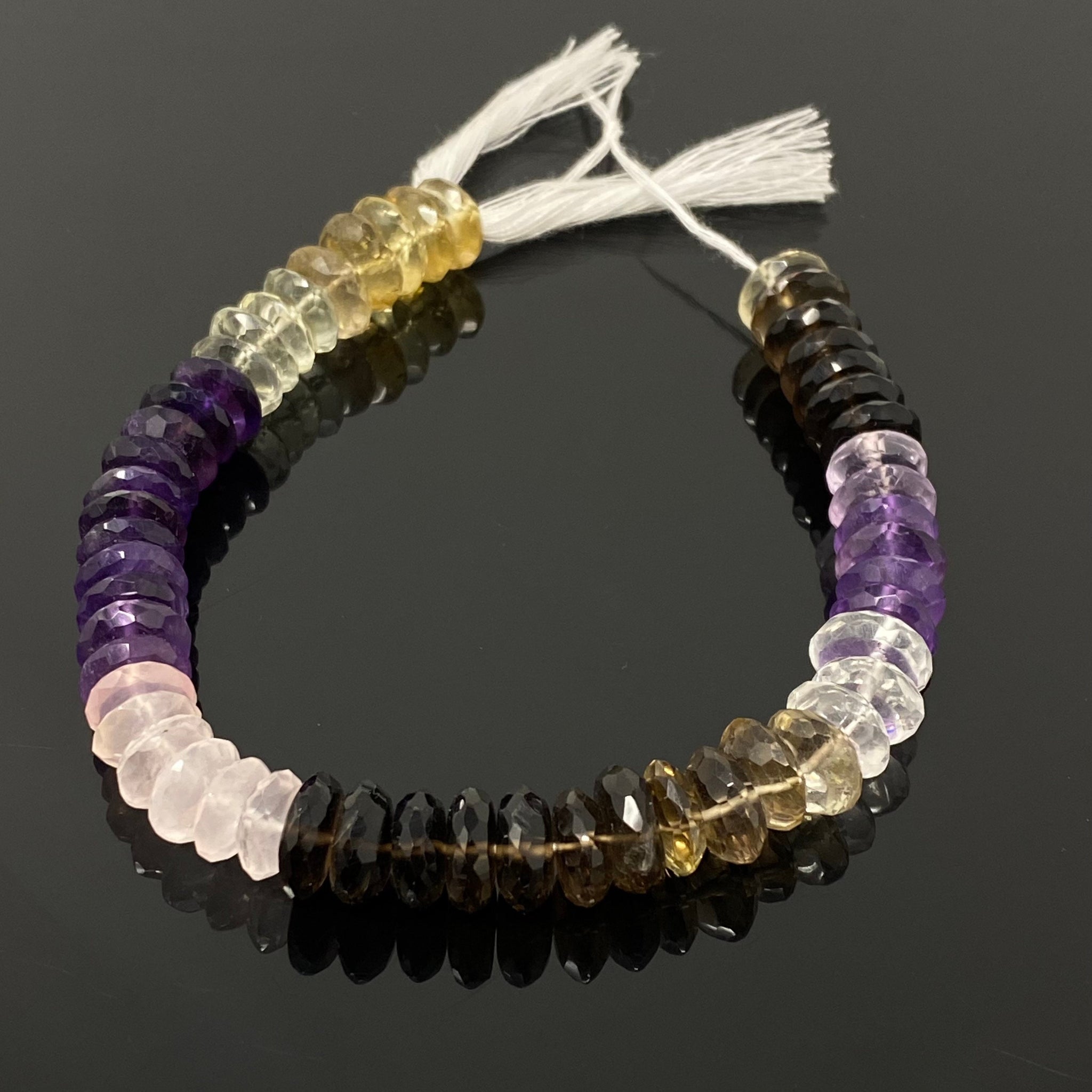 8" Natural Multi Stone German Cut Gemstone Beads - Rose Quartz/ Amethyst/ Citrine / Smokey Quartz/ Green Amethyst , 9mm- 10mm