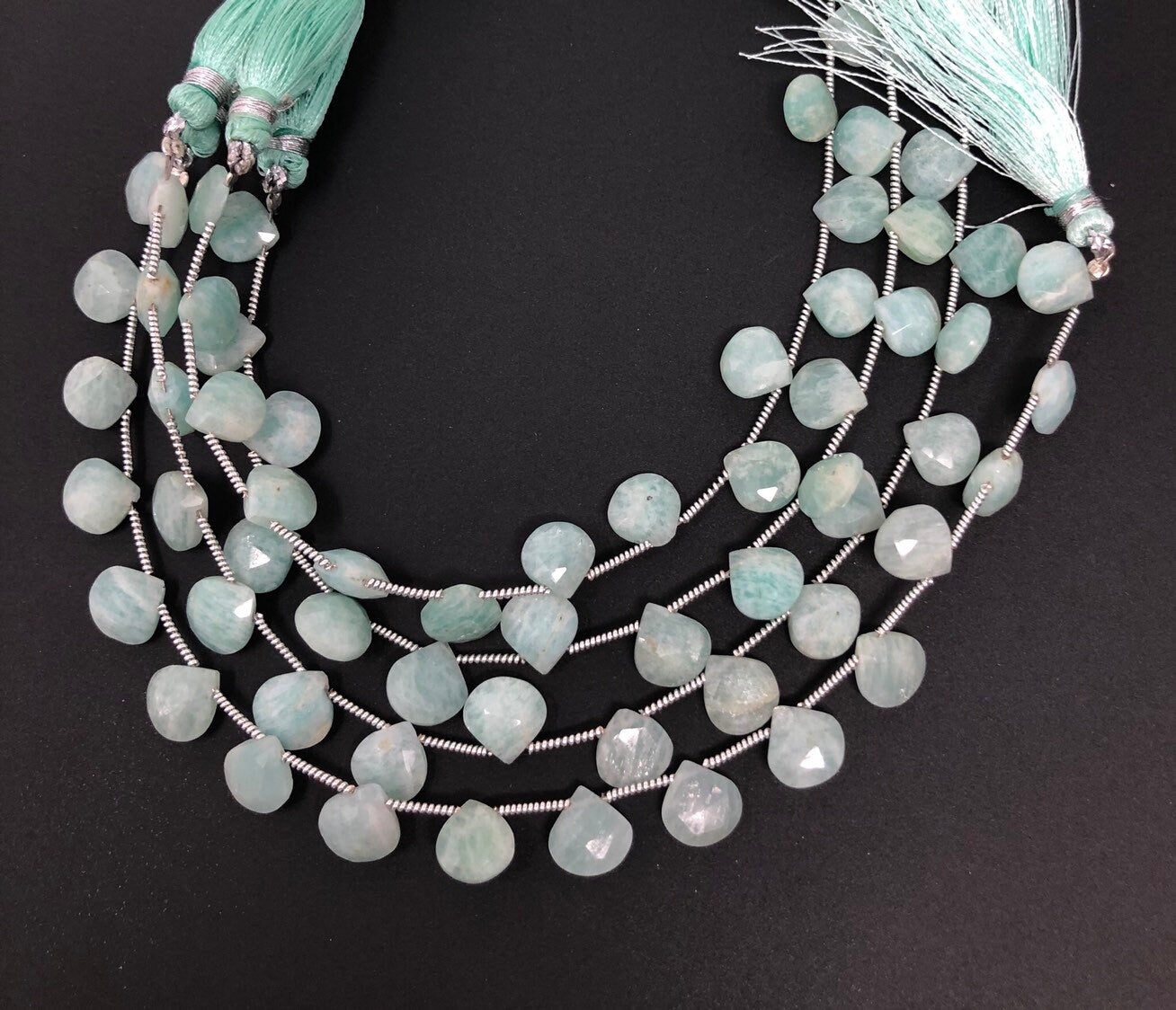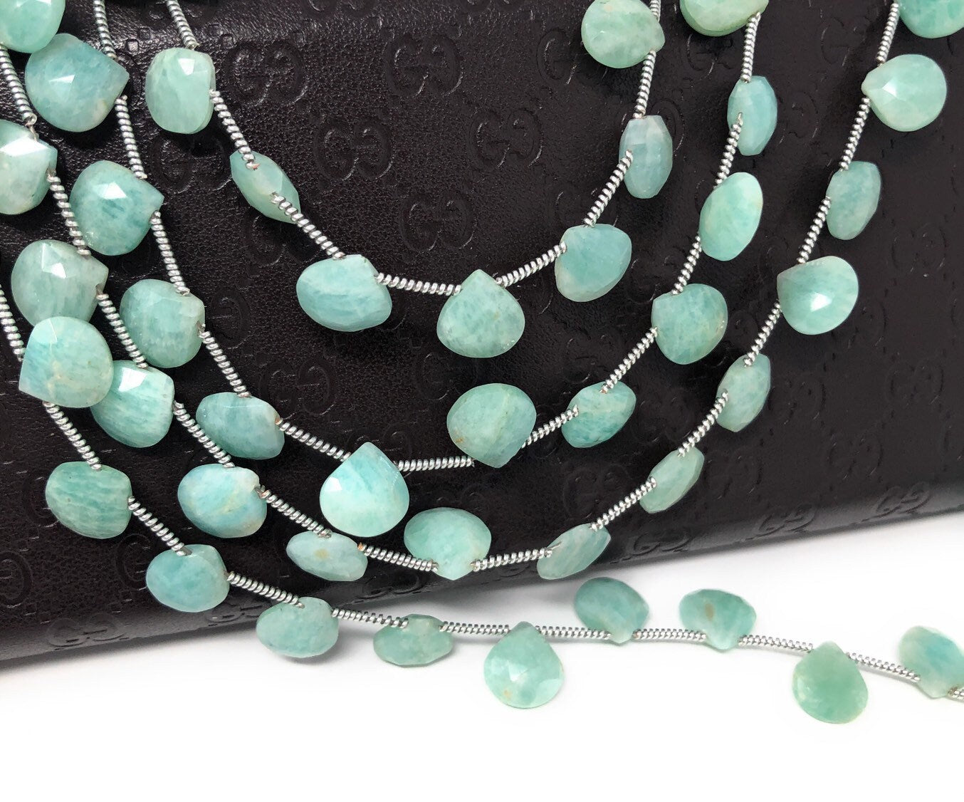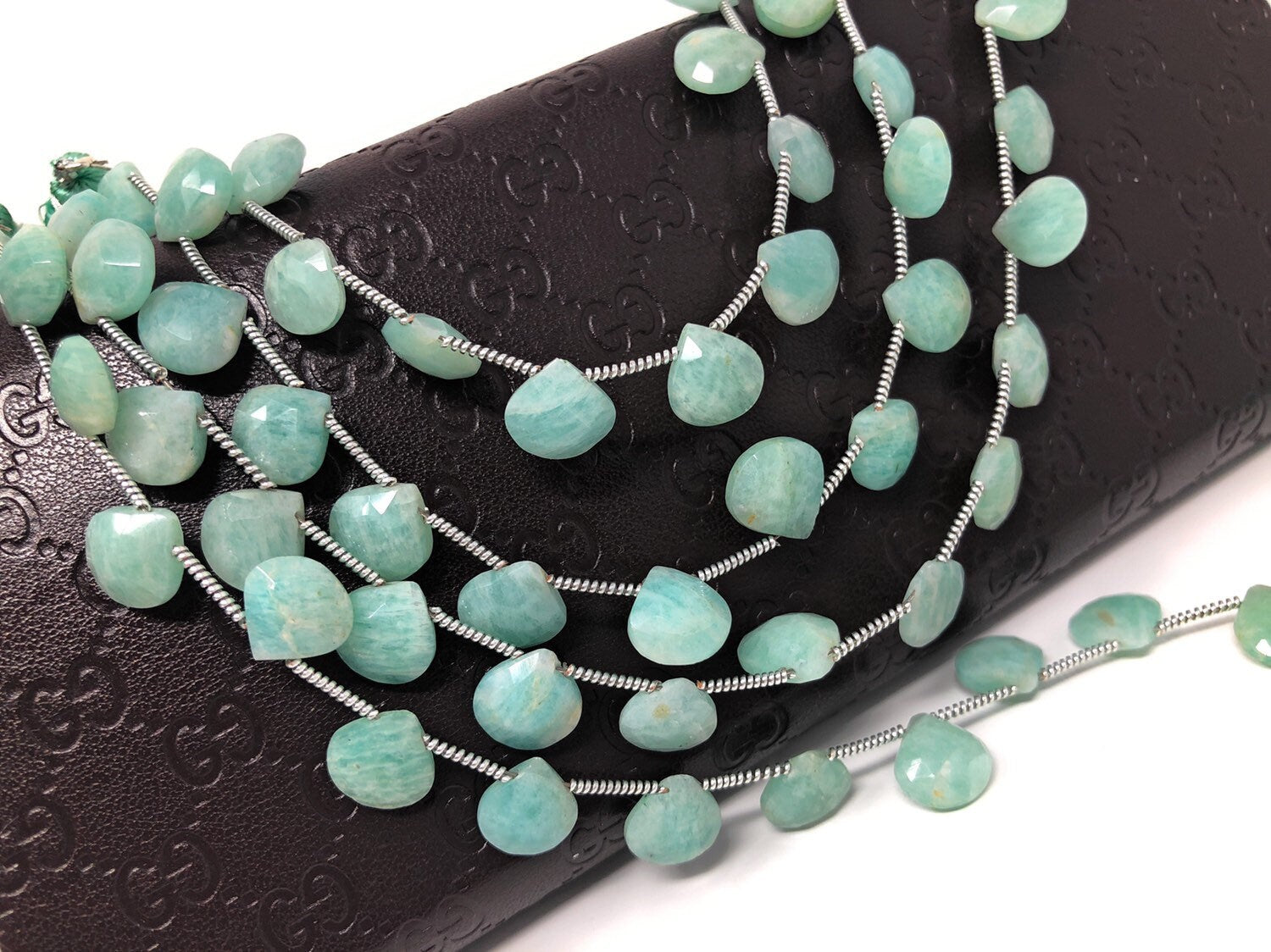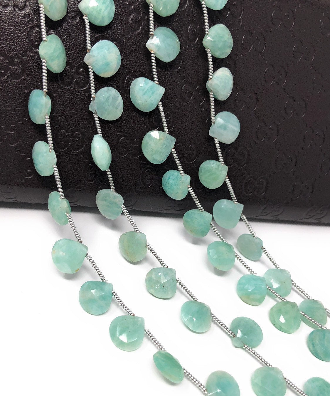 Natural Amazonite Heart Shape Side Drilled Faceted Beads Jewelry Supplies for Jewelry Making at Wholesale Price