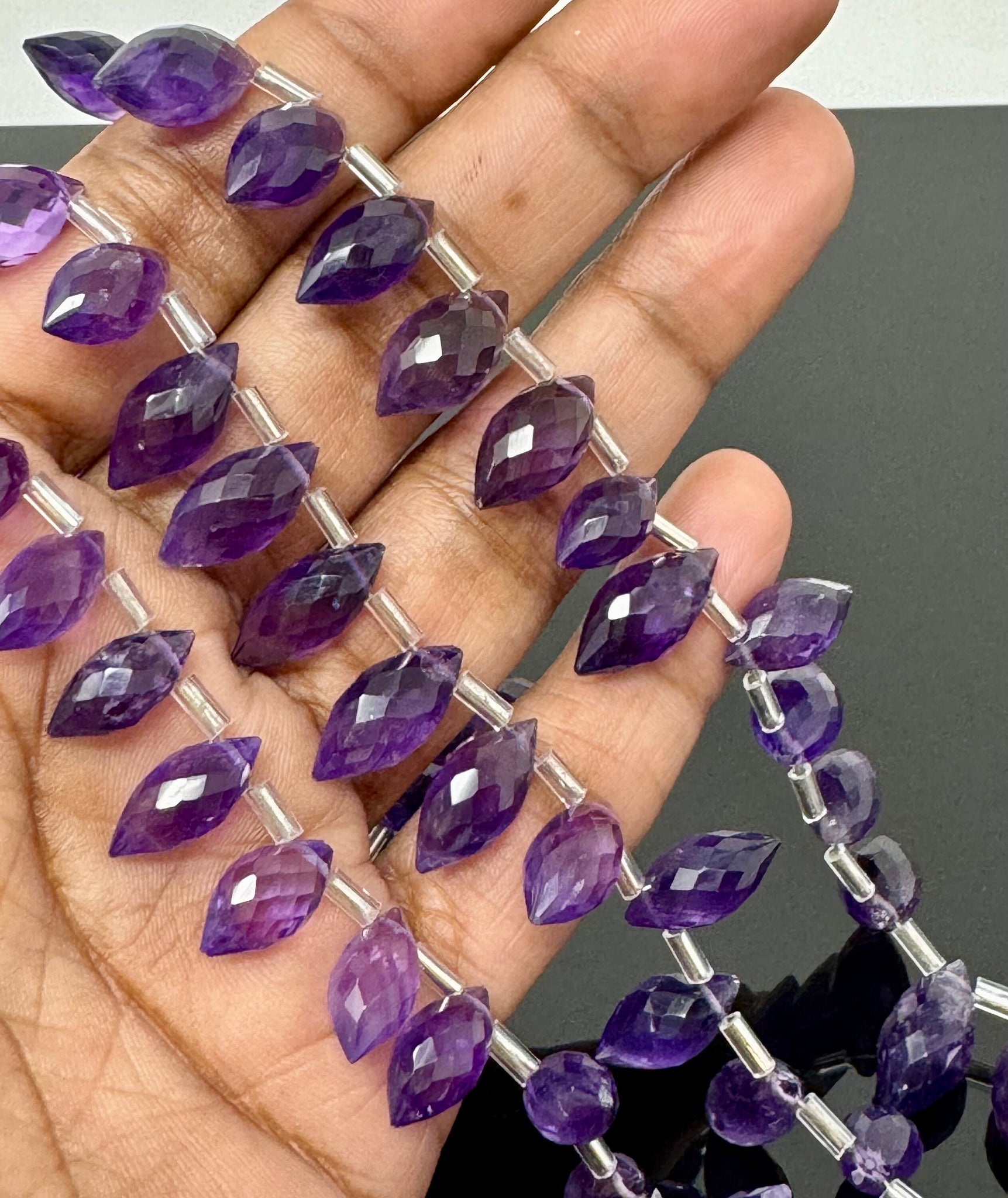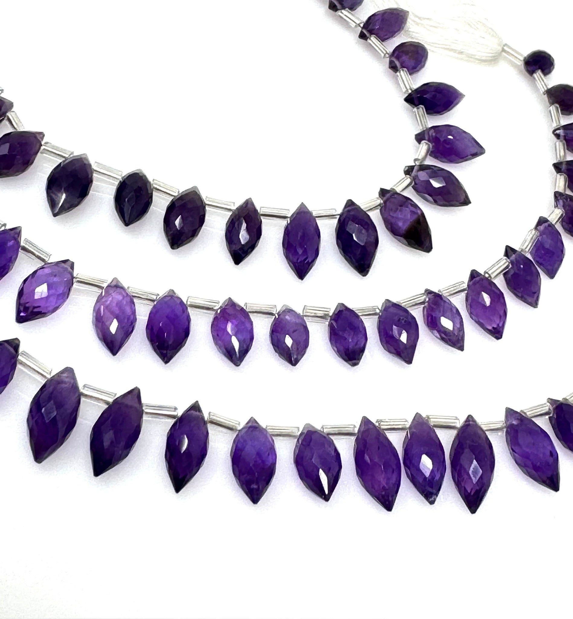 Amethyst Marquise Faceted Briolette Beads, Amethyst Gemstone Beads, Jewelry Supplies for Jewelry Making, Bulk Wholesale Beads, 8" Strand